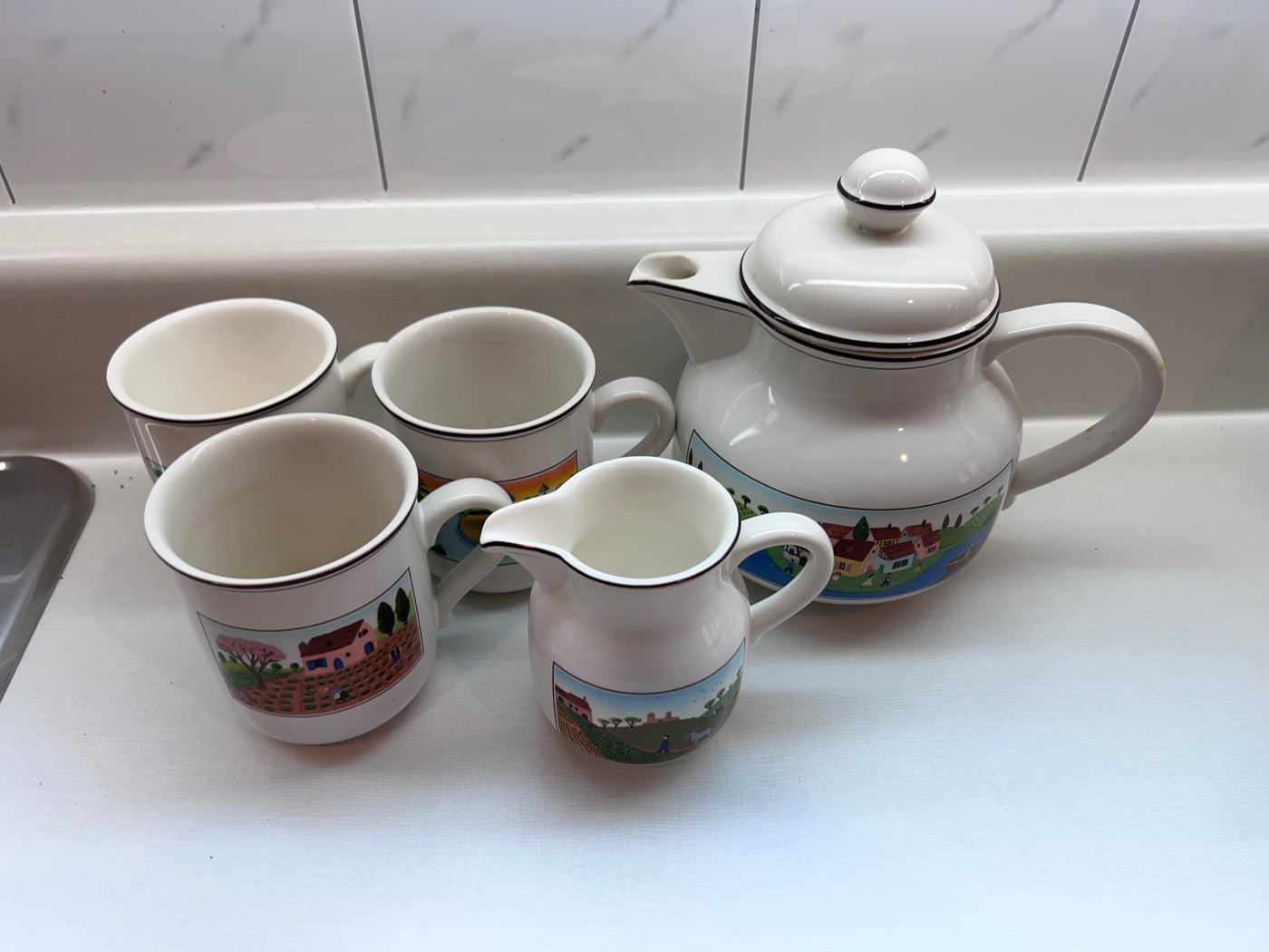 Villeroy & Boch Design Naif- Tea Pot, Creamer, 3 Mugs