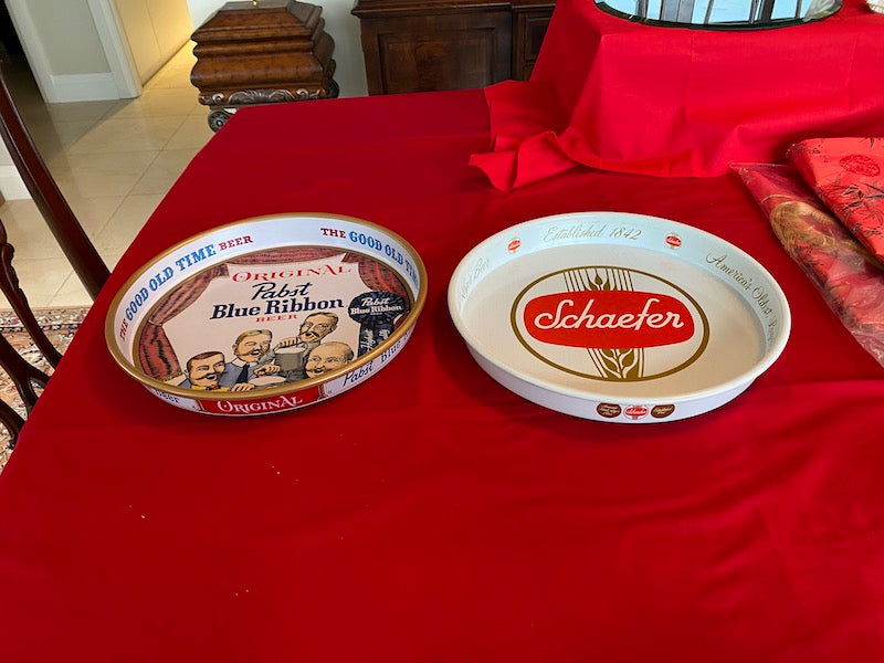 Vintage Pabst Blue Ribbon & Schaefer Platters.