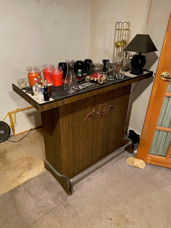 Vintage Bar. Glass top. No stools includes.