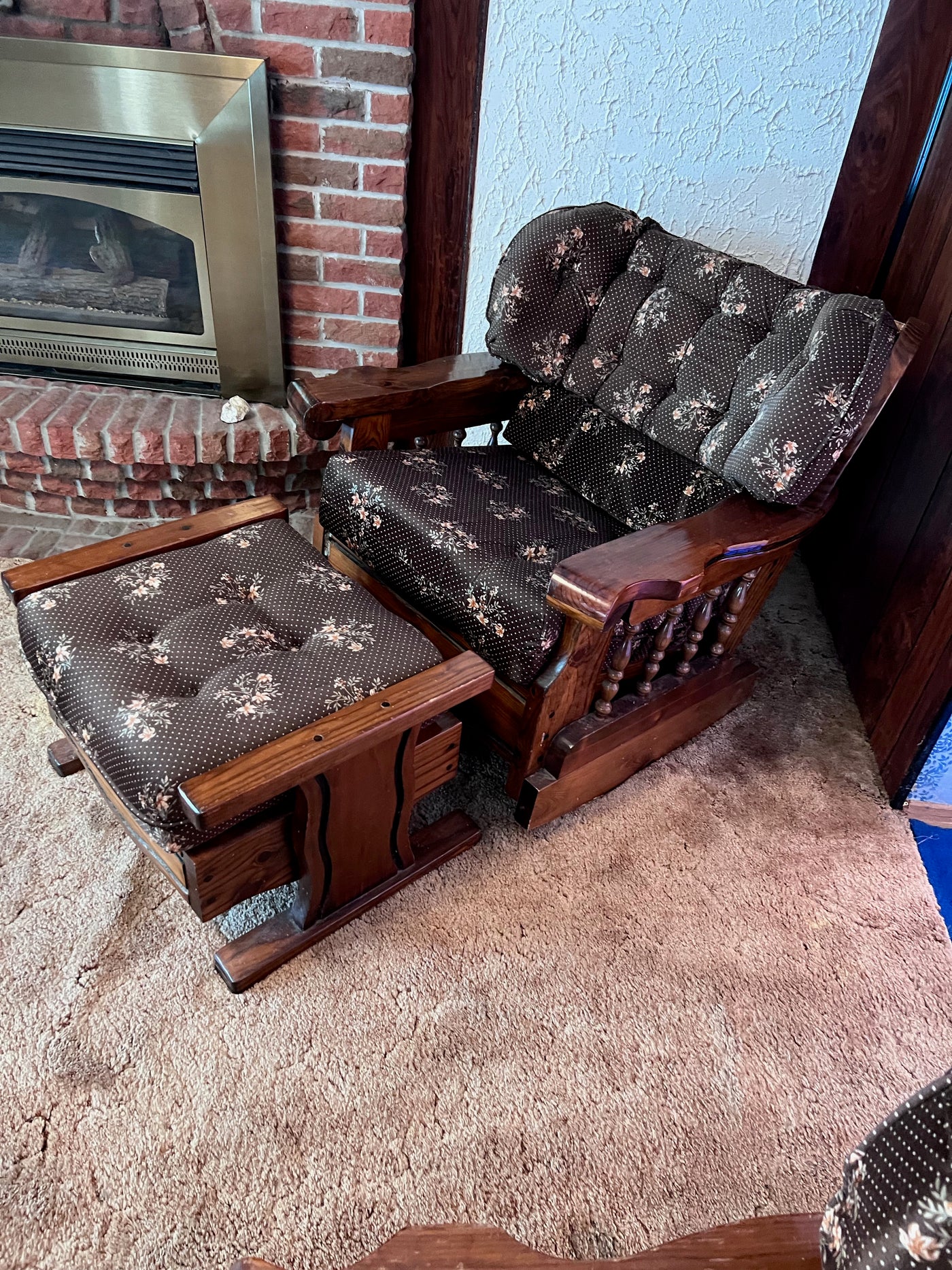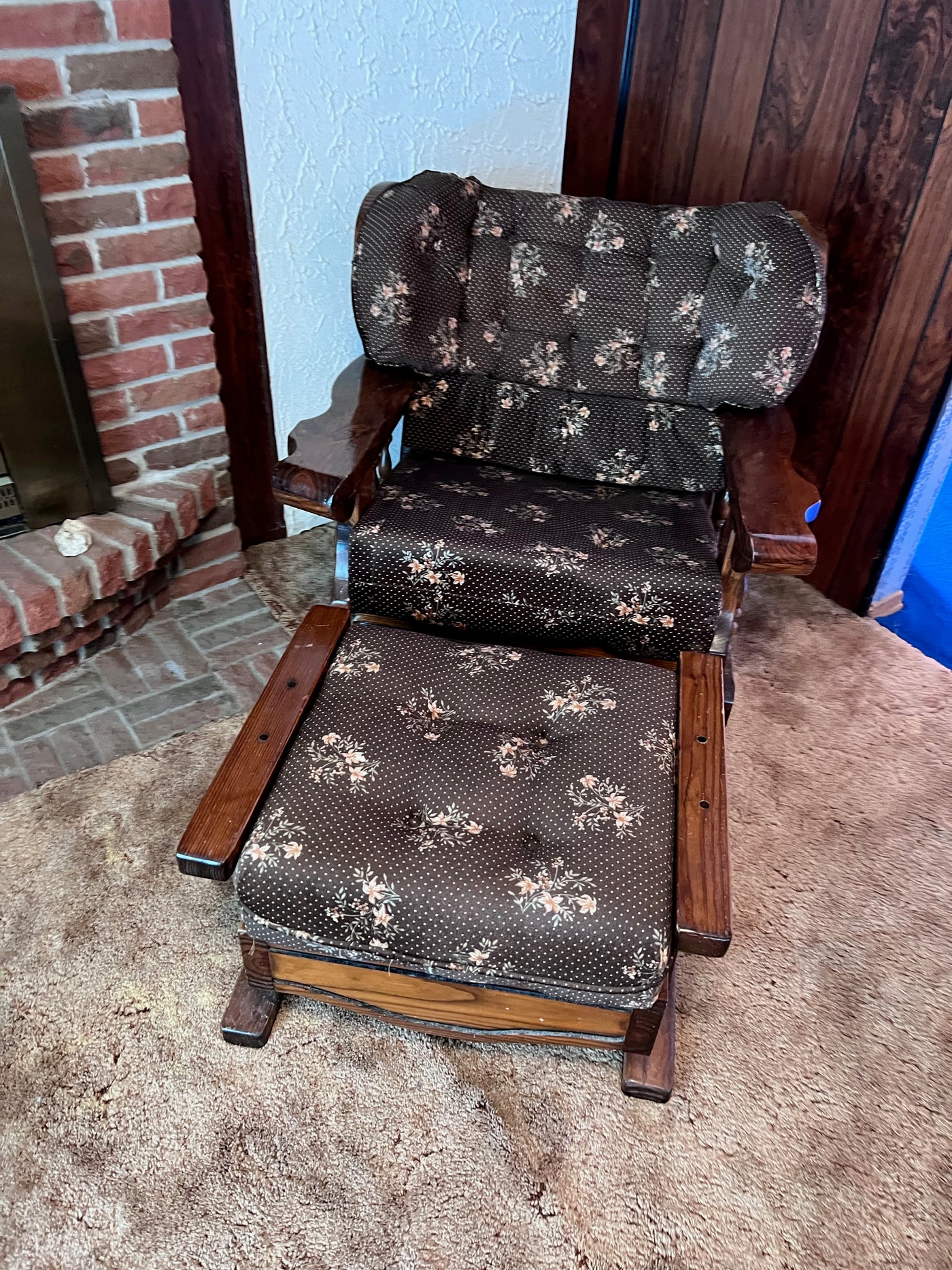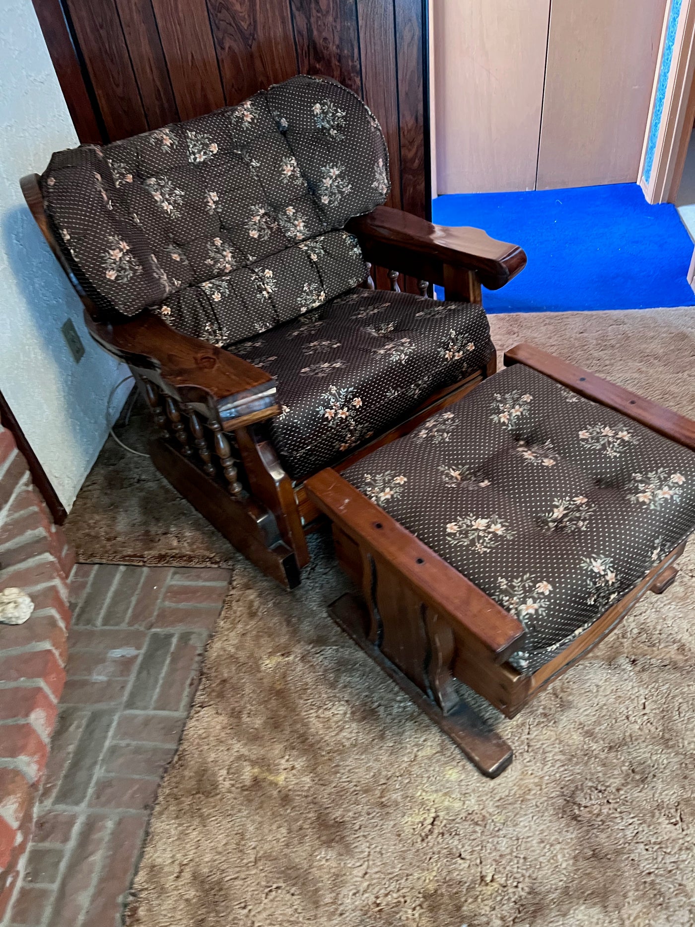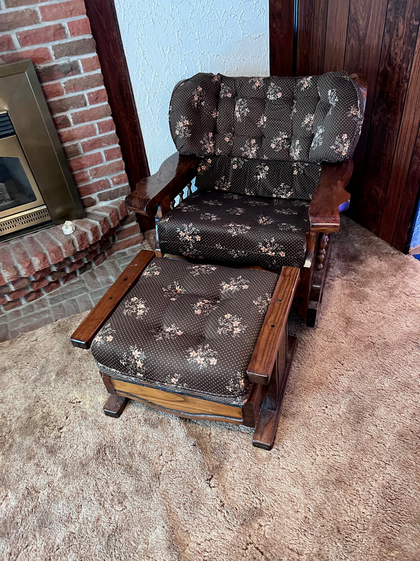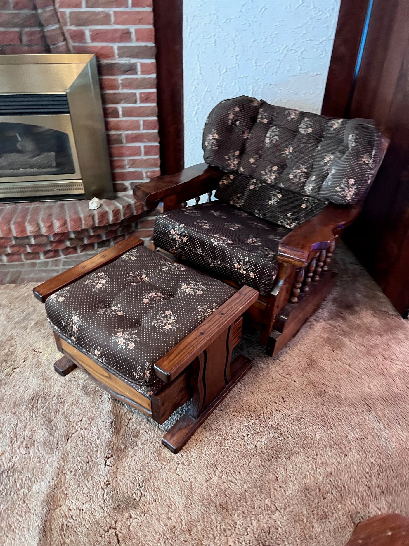 Vintage Solid Wood Frame Rocker + Ottoman.