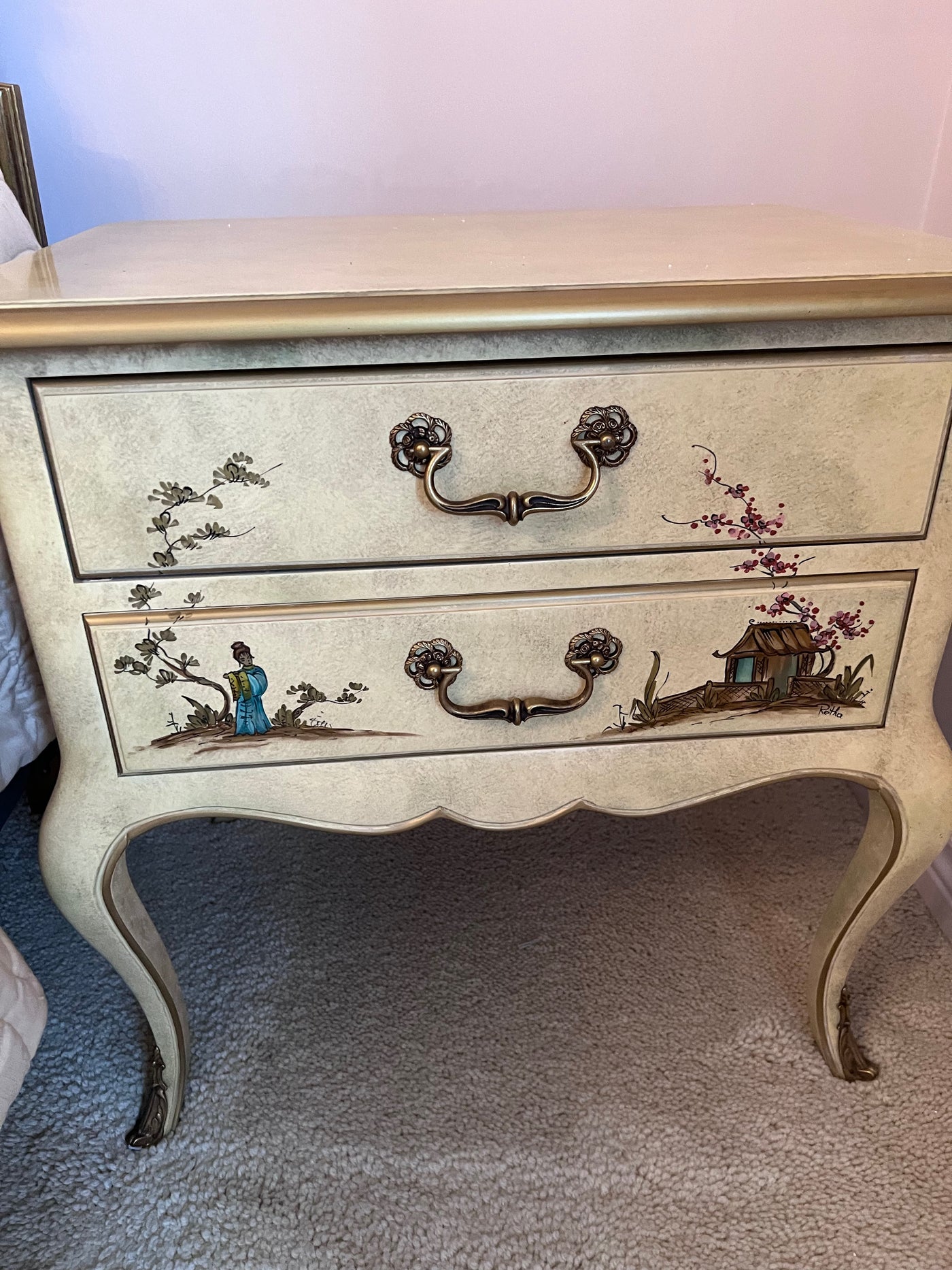 Vintage Union National Fine Furniture Chinoiserie Nightstand # 2.
