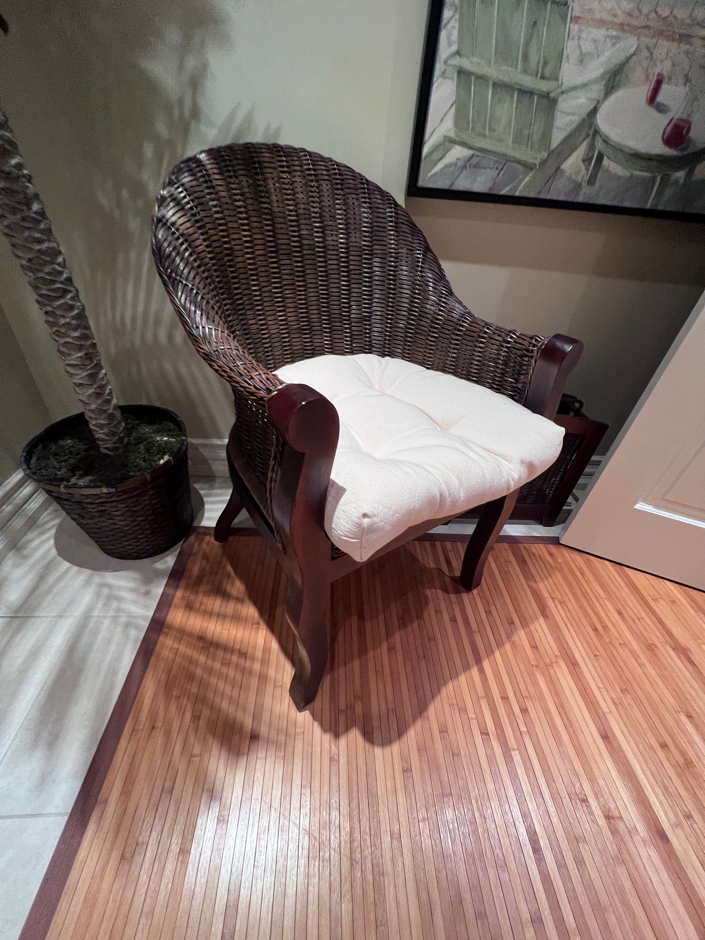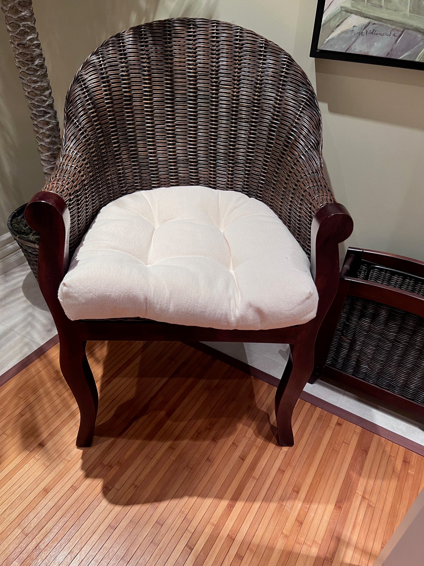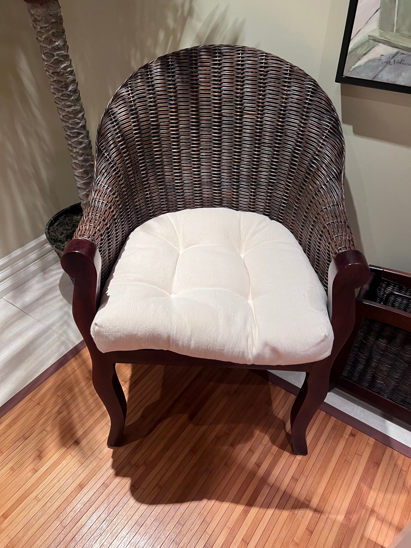 Wicker Style Accent Chair with Cushion.