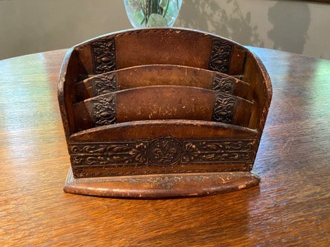 Antique Leather Letter Holder.