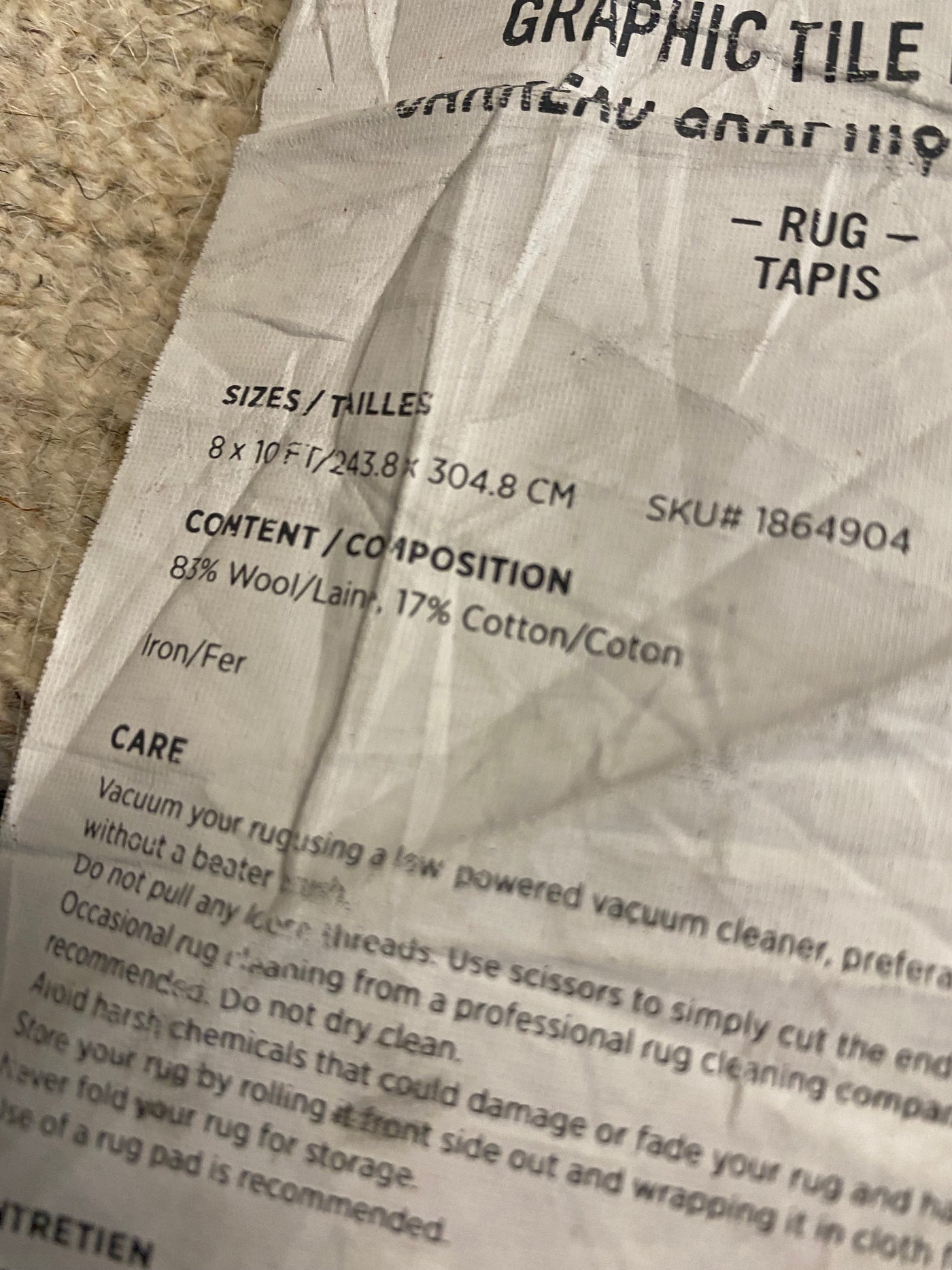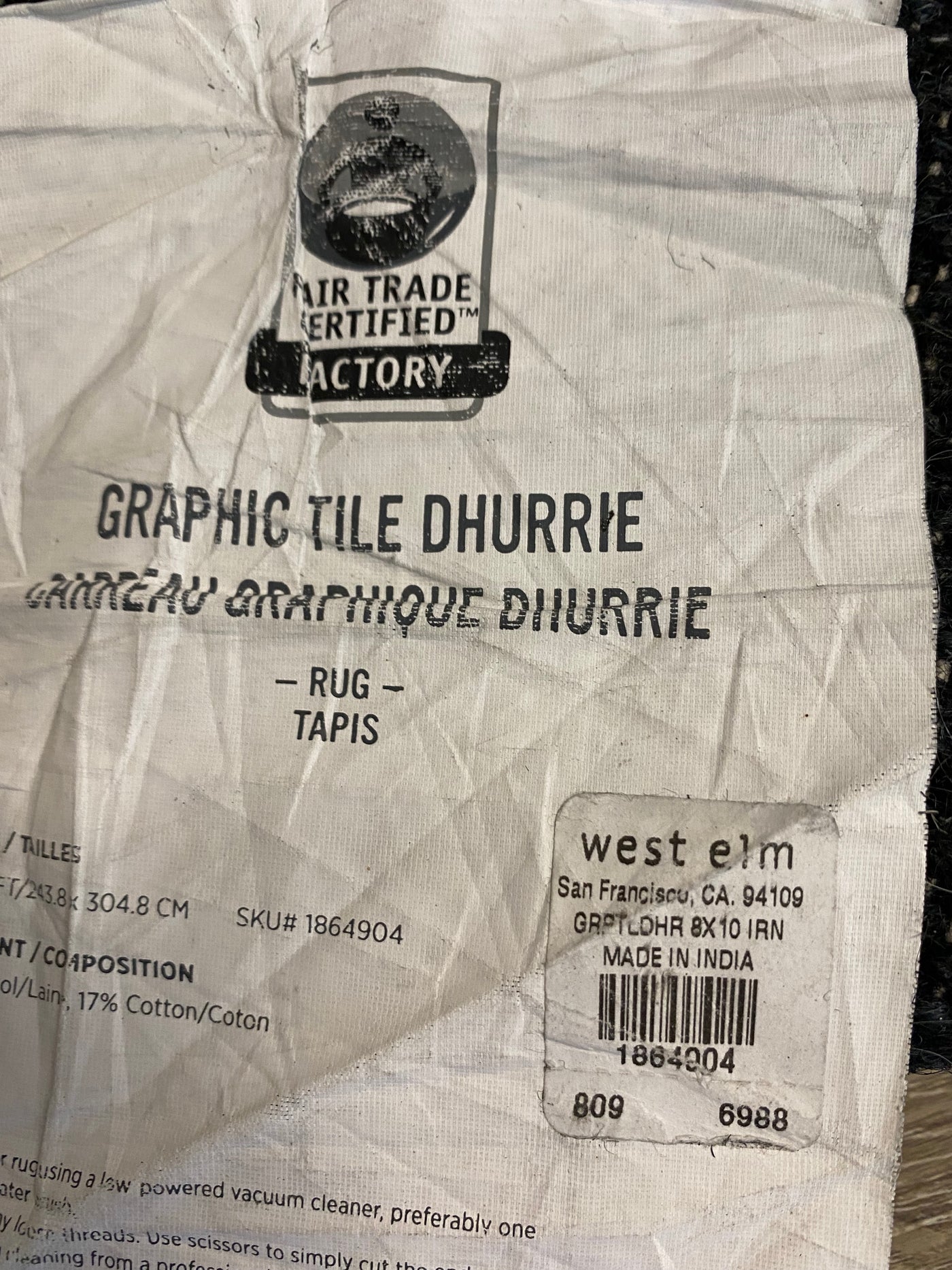 West Elm Handcrafted Wool/Cotton Graphic Tile Rug- 8x10 # 2.