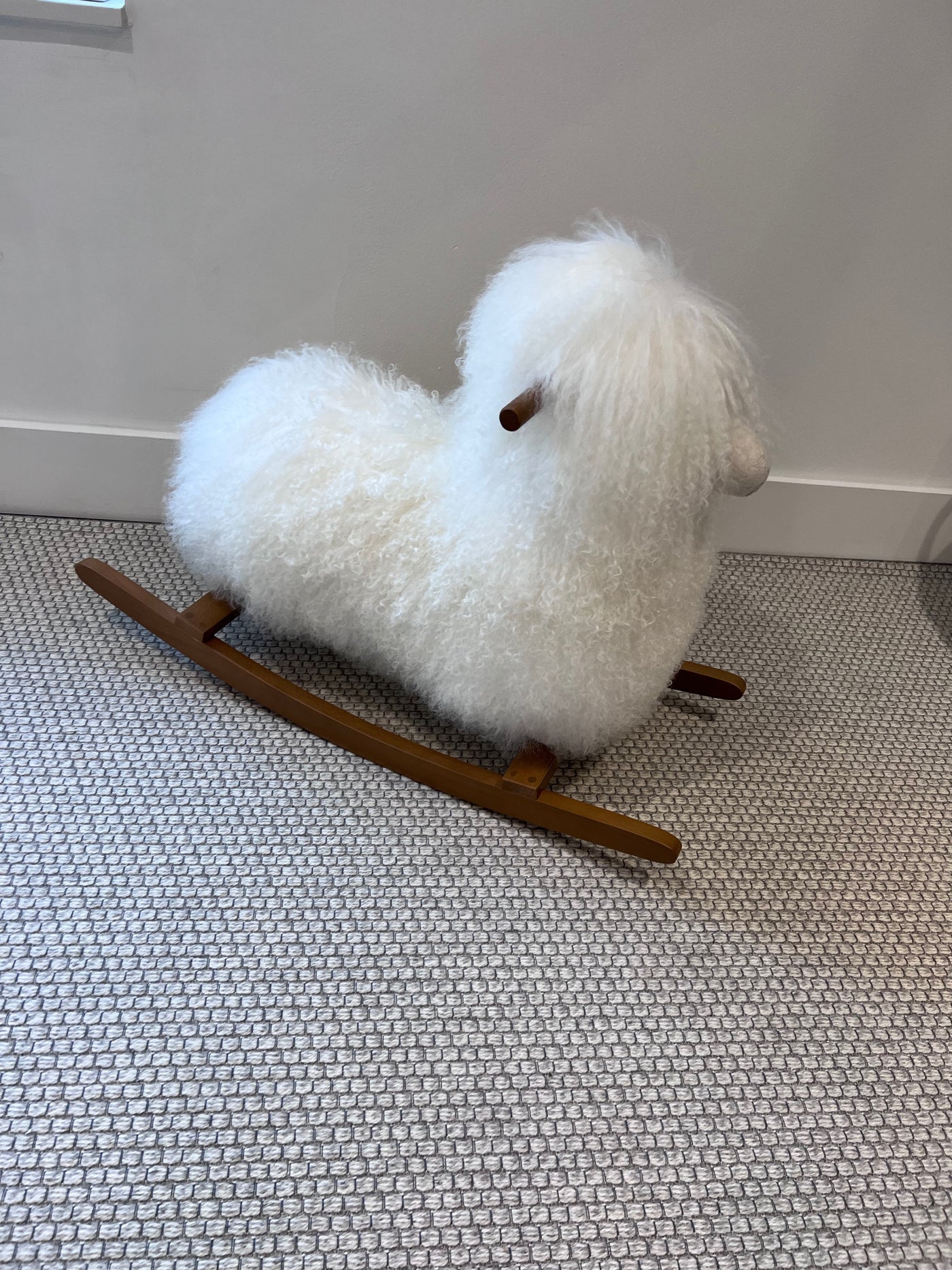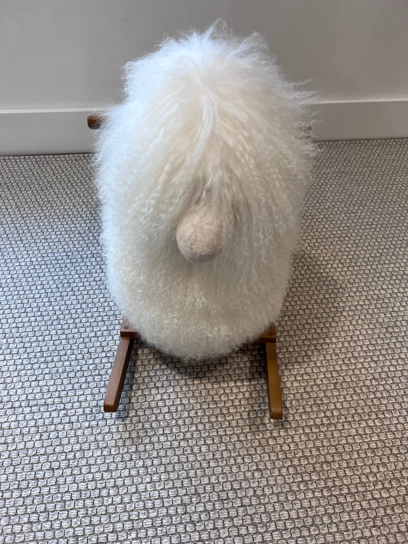 Dressed in silky Mongolian lamb's wool from top to tail, our shaggy sheep is the plushest playmate around. The curly, layered locks are unique to each toy, lending whimsical, one-of-a-kind character. A padded seat and sturdy, solid wood base add creature comforts and a smooth ride.