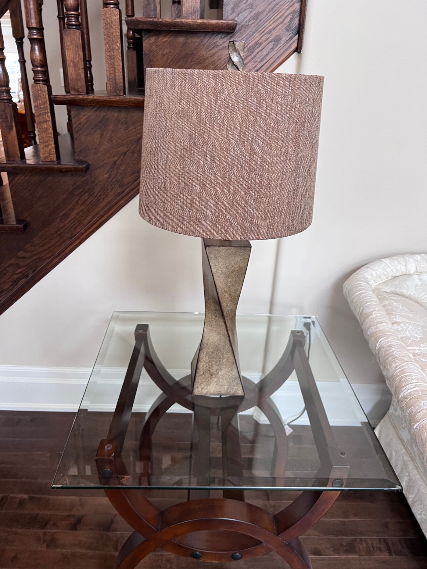 Pair of Cream Twist Table Lamps.