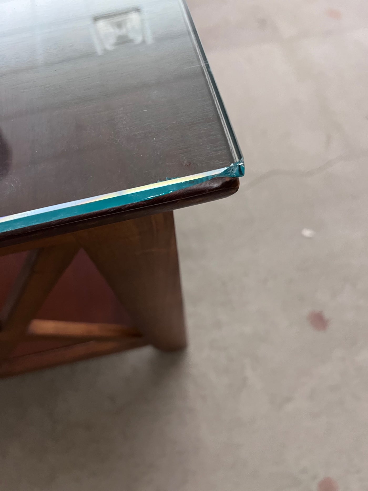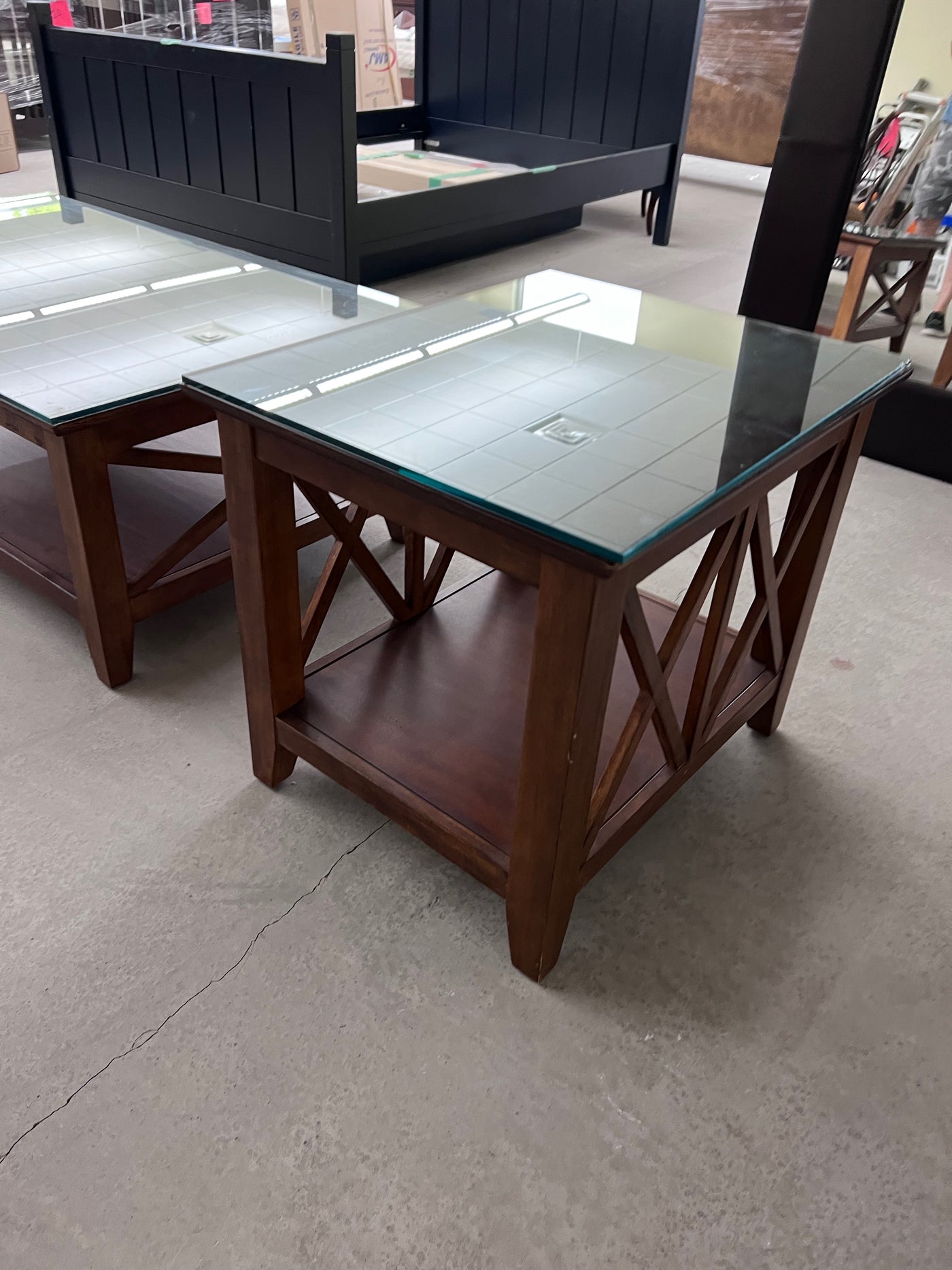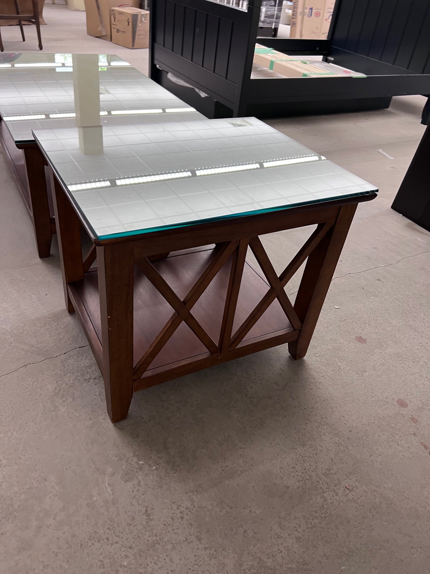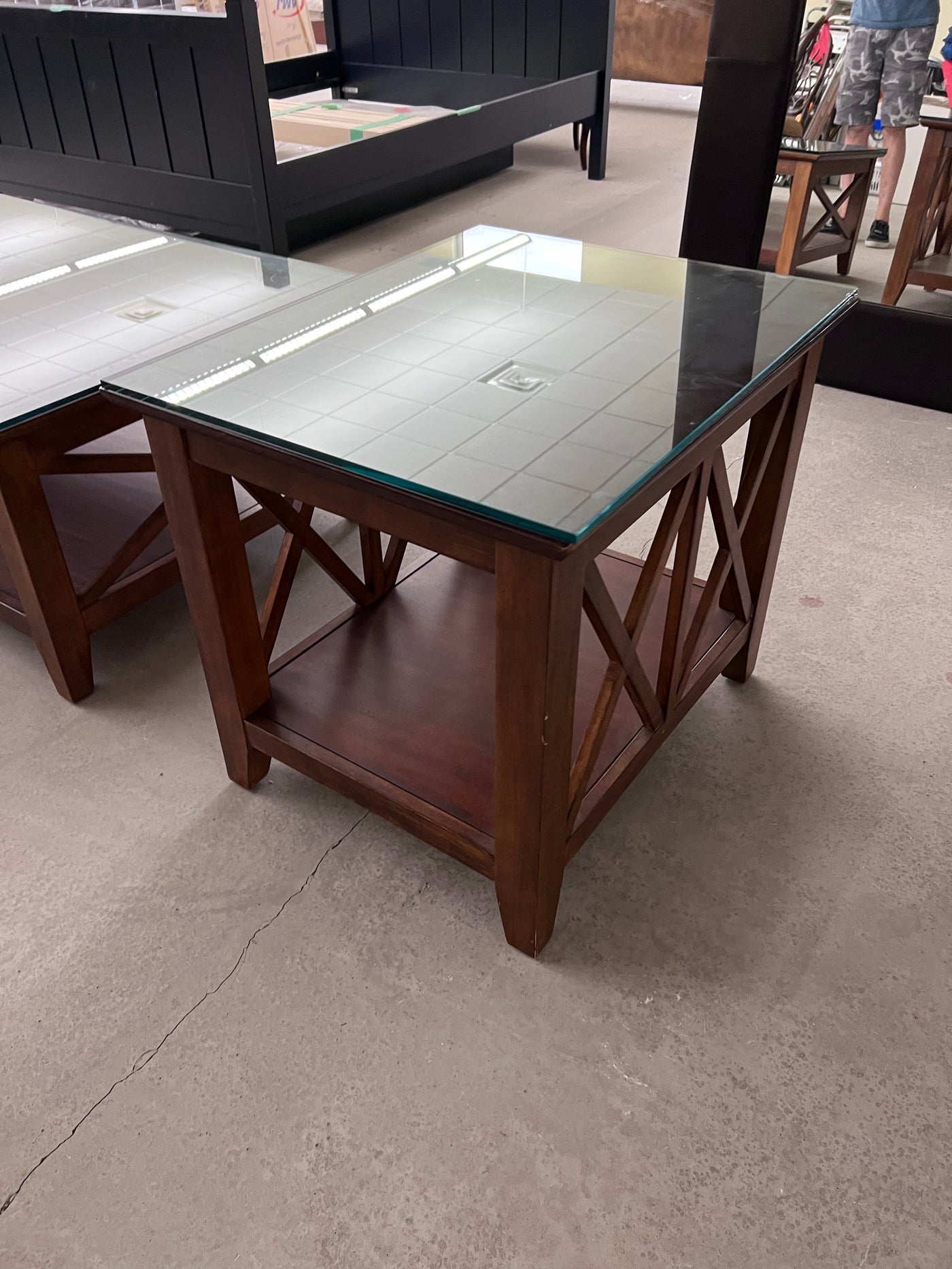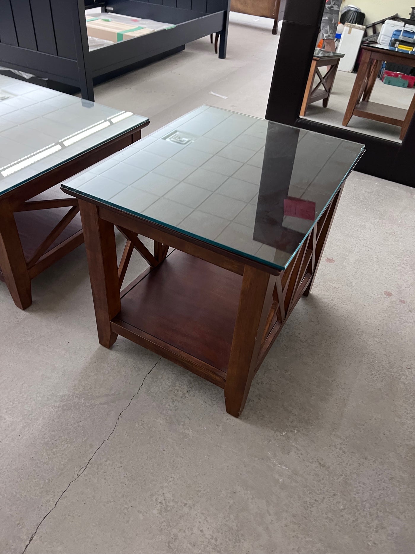 Wood Side Table, Glass Top.