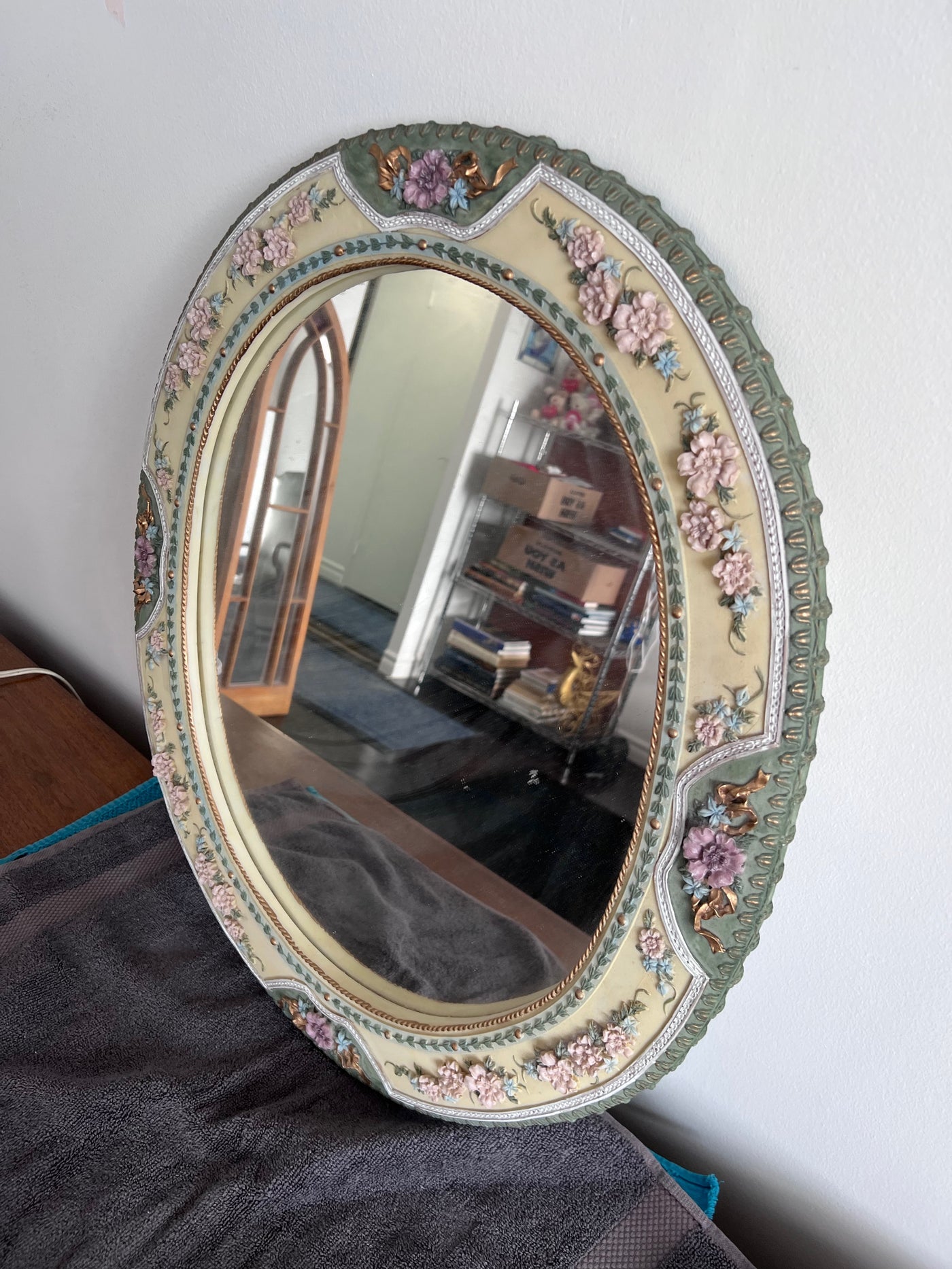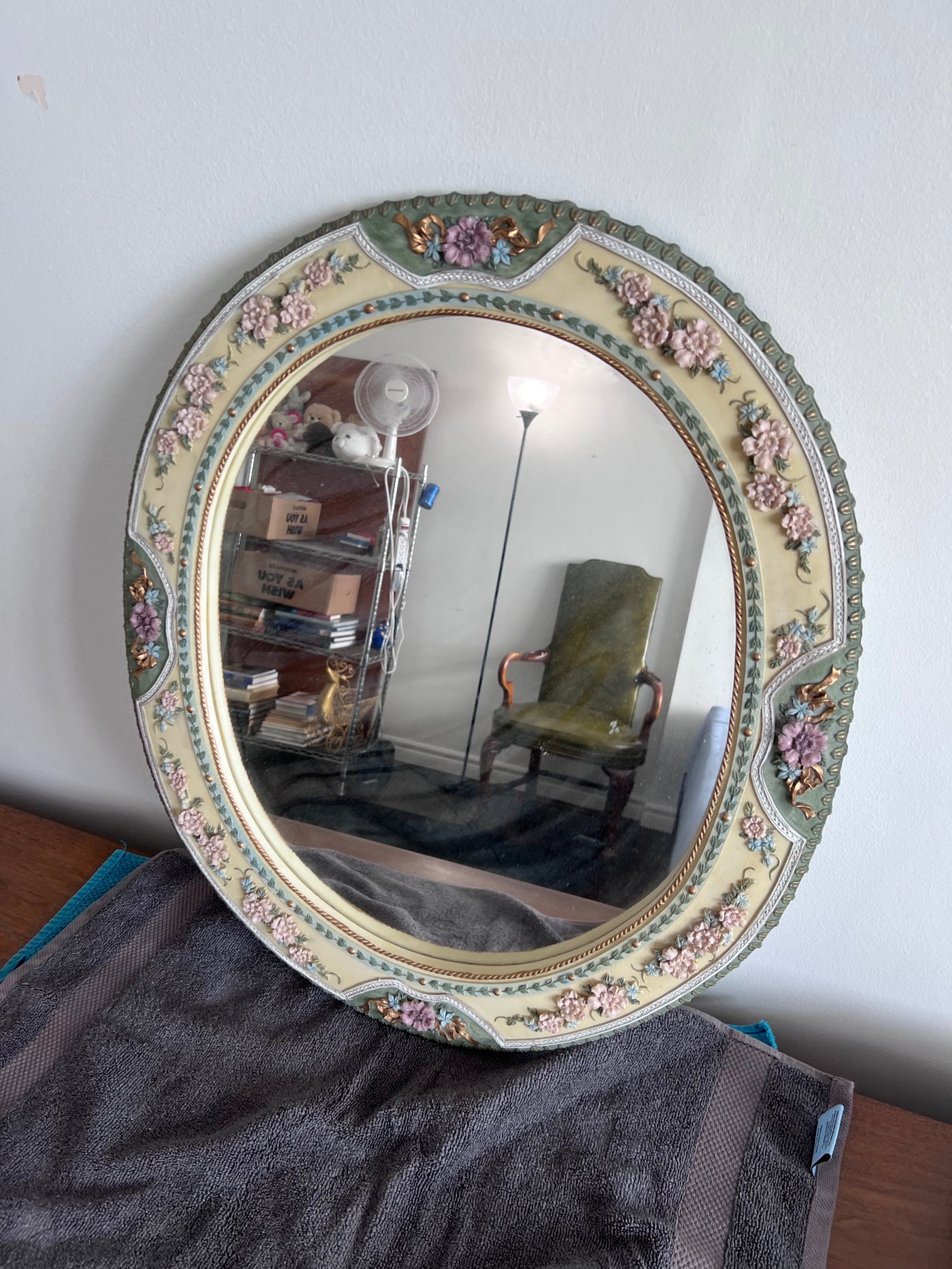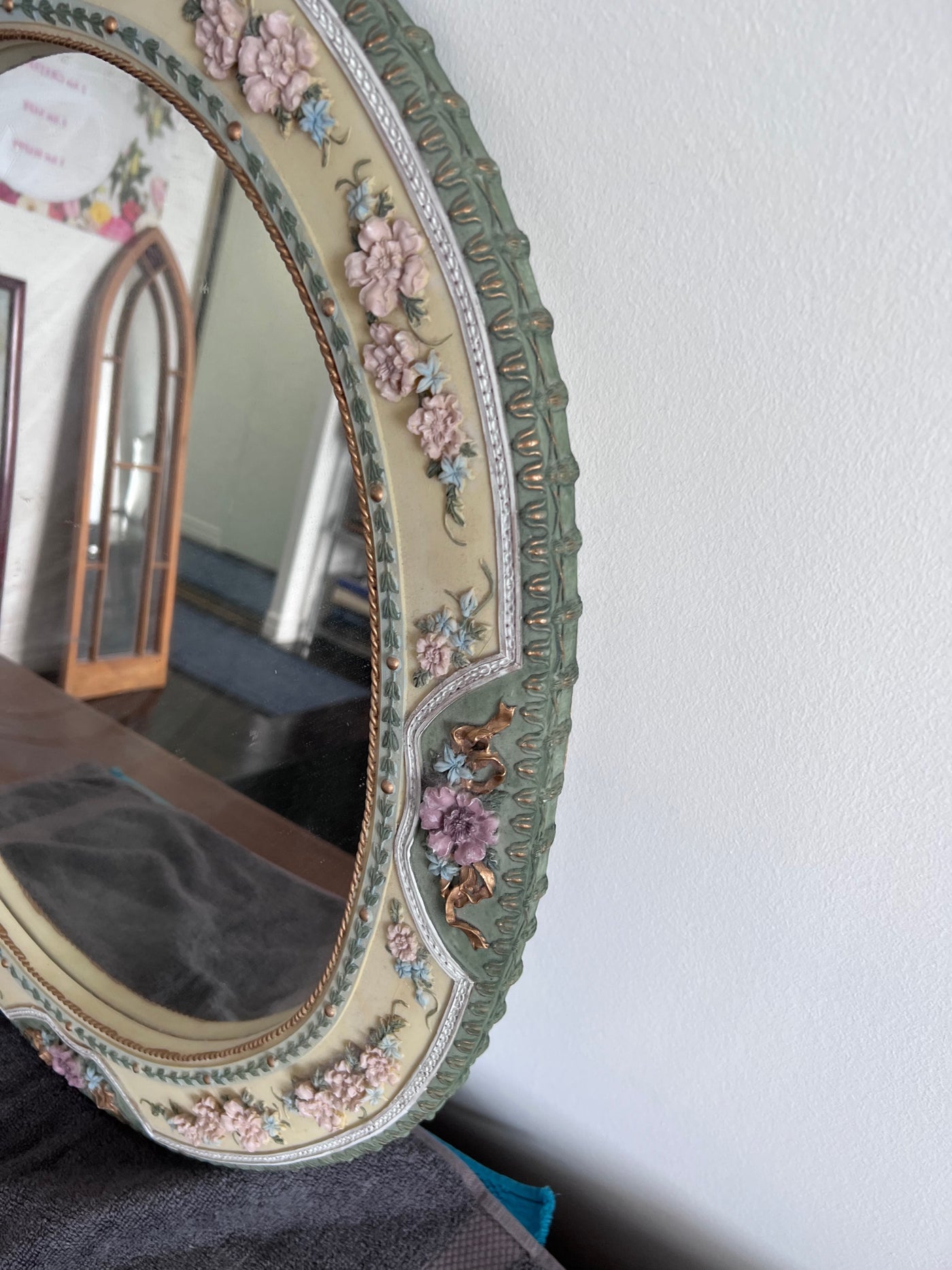 Ornate Round Mirror, with Floral Details