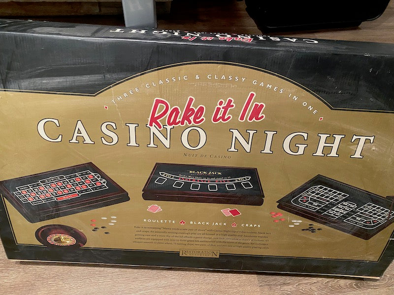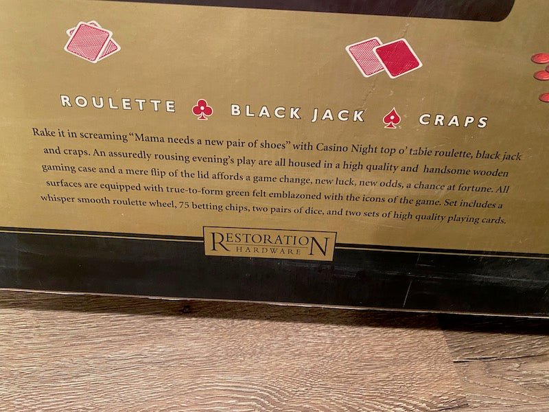 Restoration Hardware "Rake It In Casino Night Party" Roulette/Blackjack/Craps Box.