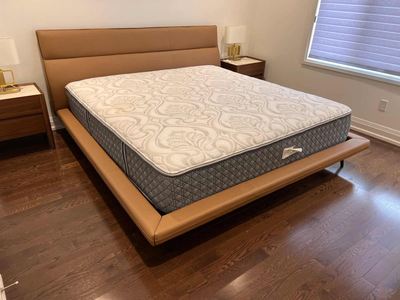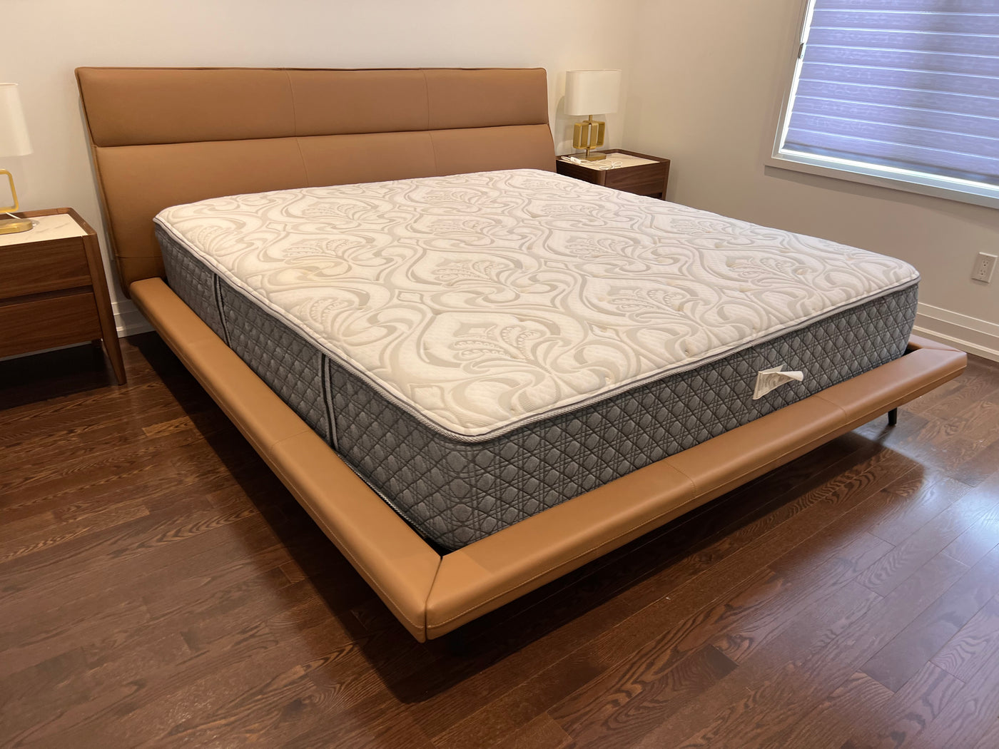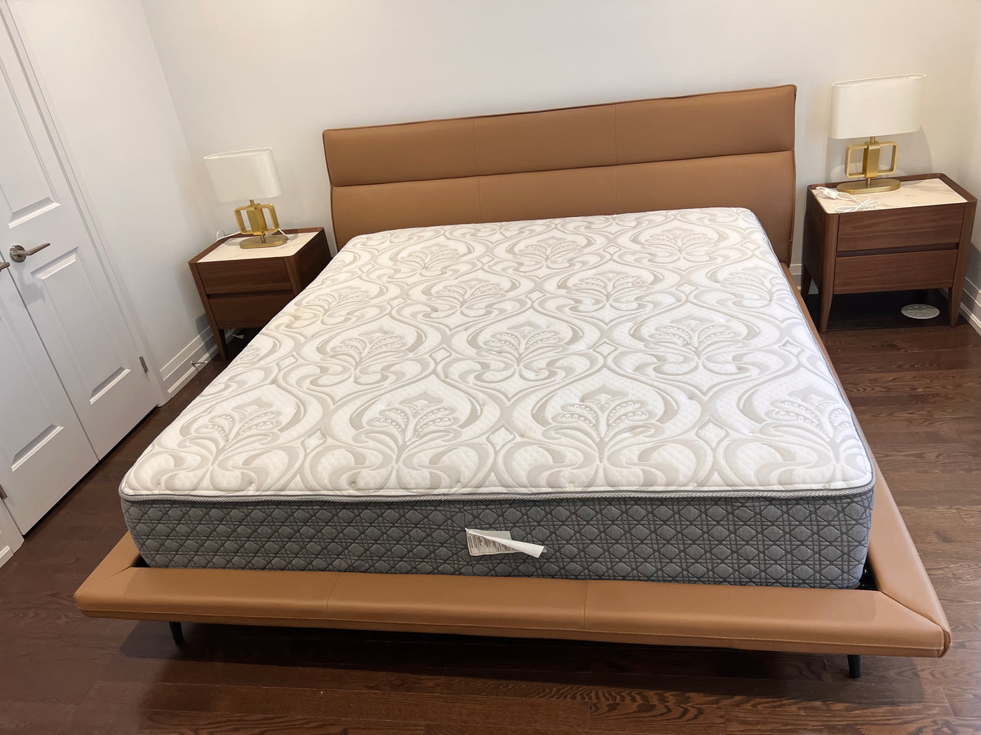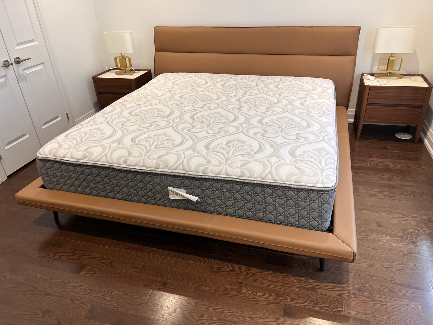 Mobilia King Leather Bed Frame with *like new Beautyrest Imperial Lux Mattress (*retail $4,500)
