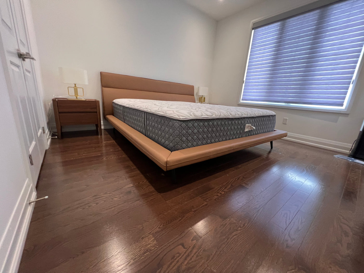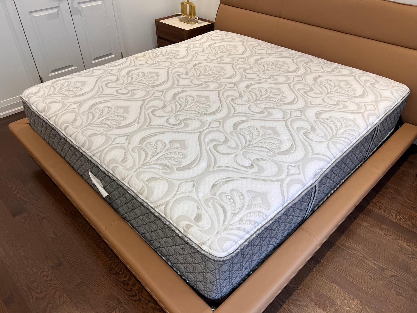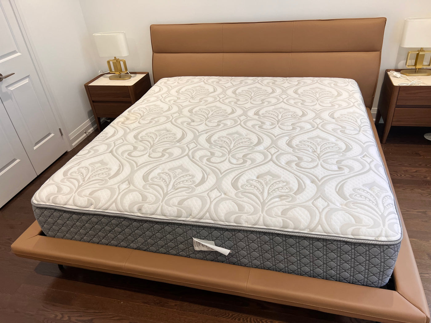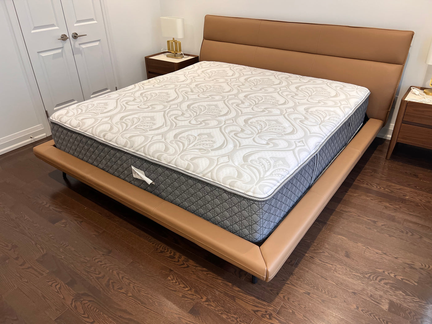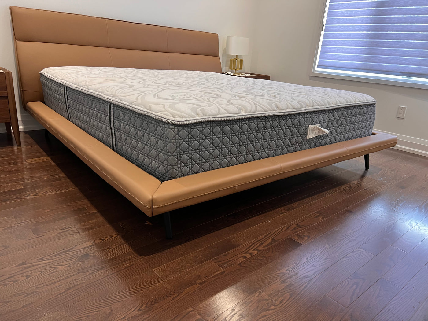 Mobilia King Leather Bed Frame with *like new Beautyrest Imperial Lux Mattress (*retail $4,500)