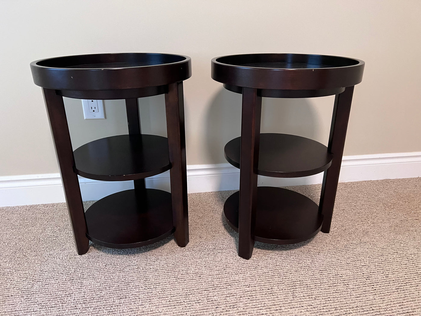 Pair of Samson International Round Tray Style Side Tables (from Costco).