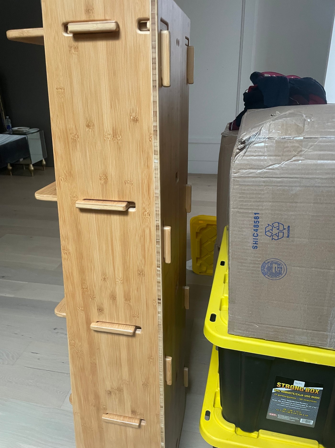 Costco Bamboo Style Shelving Unit.