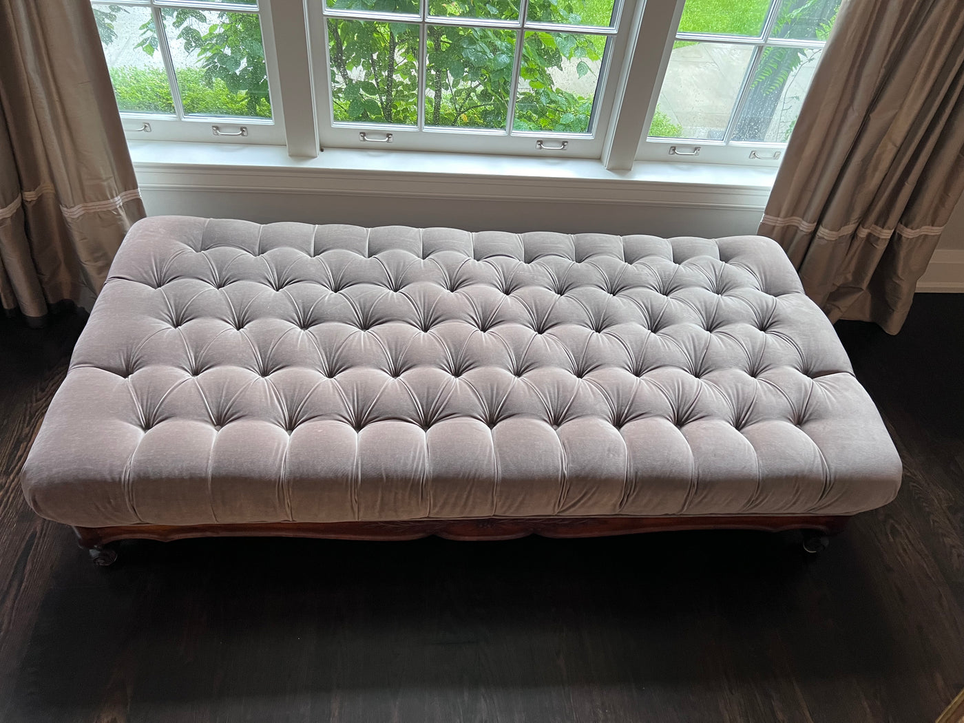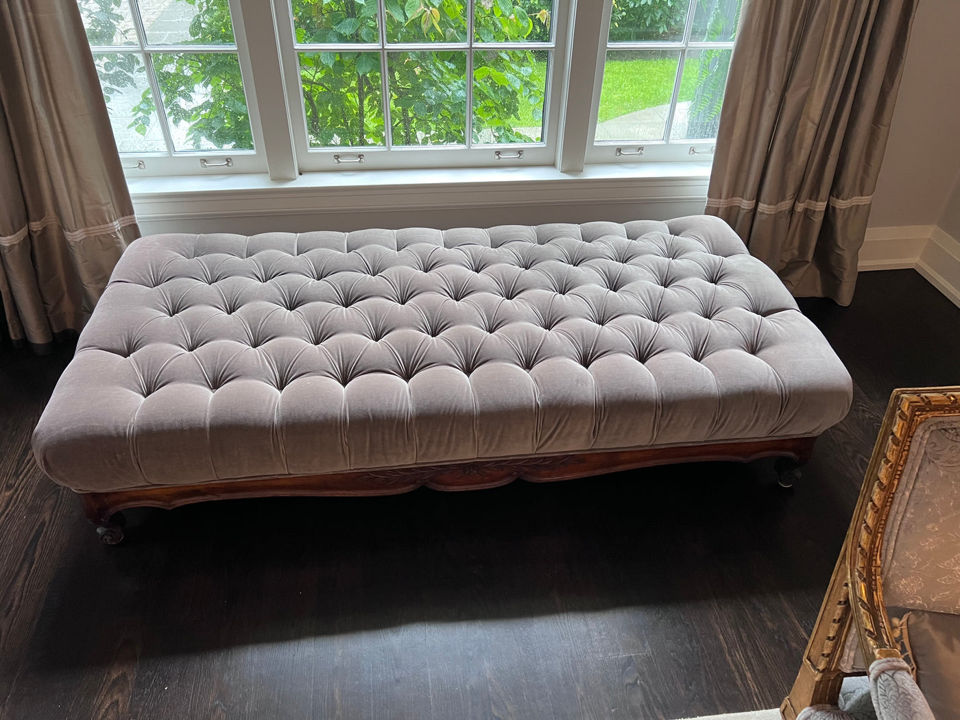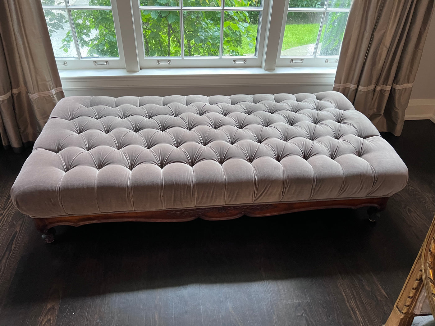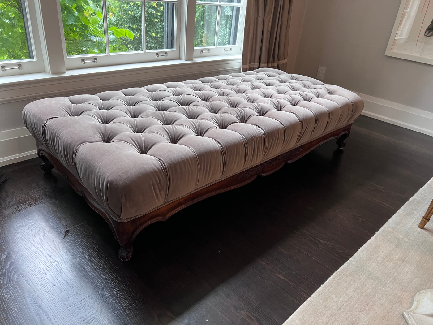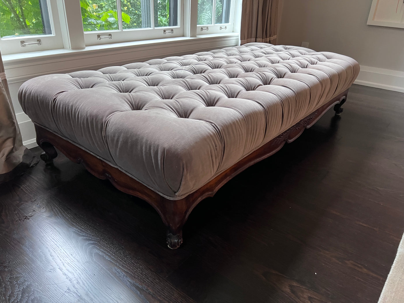 Large Antique Ottoman, Re-Upholstered Tufted Fabric