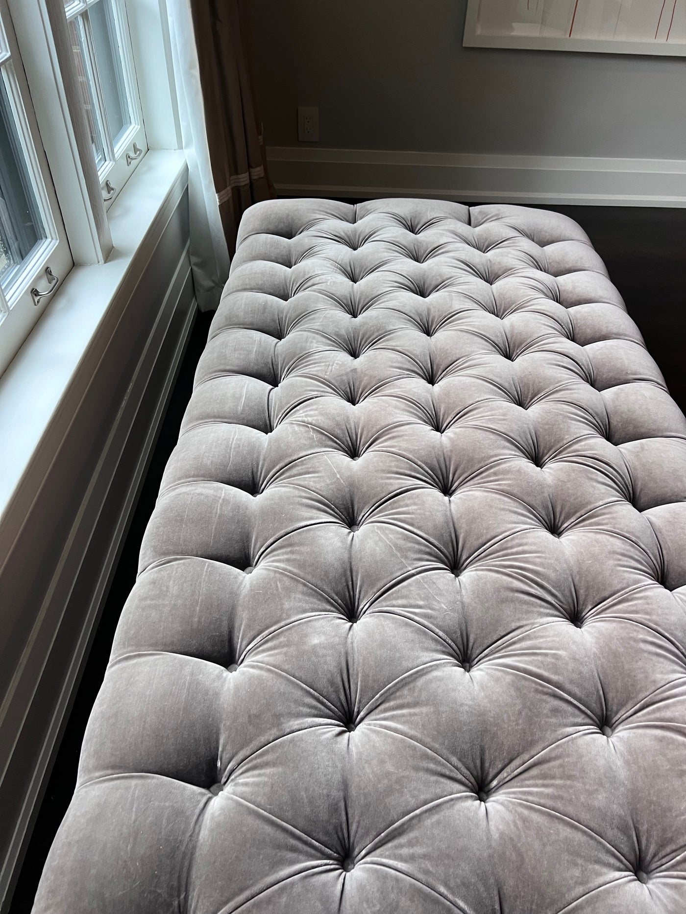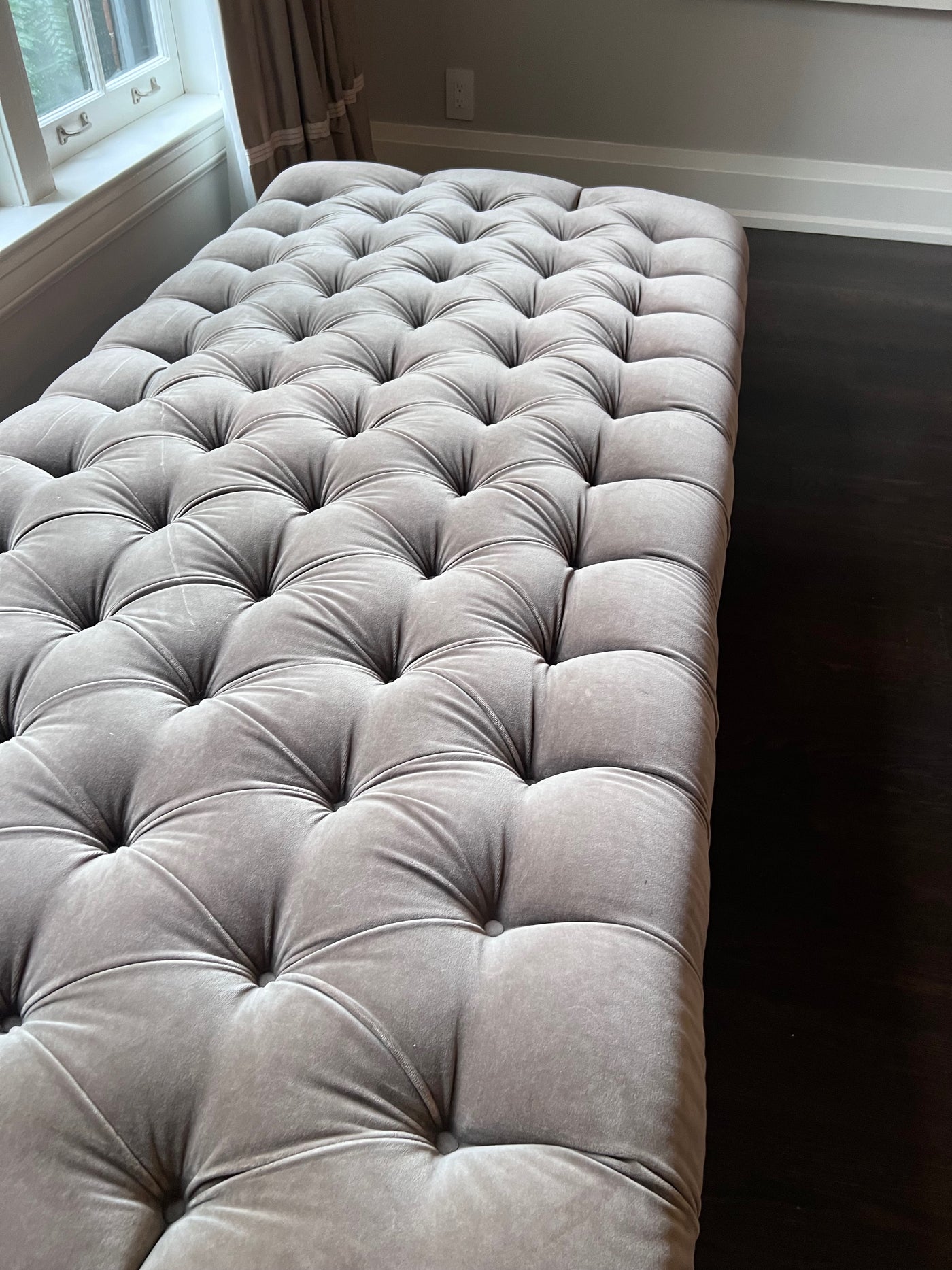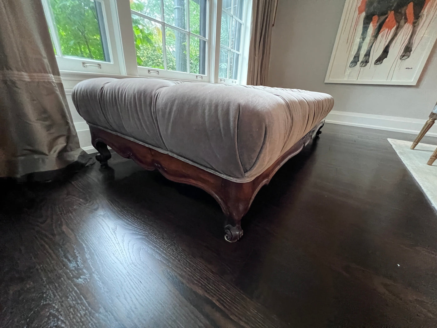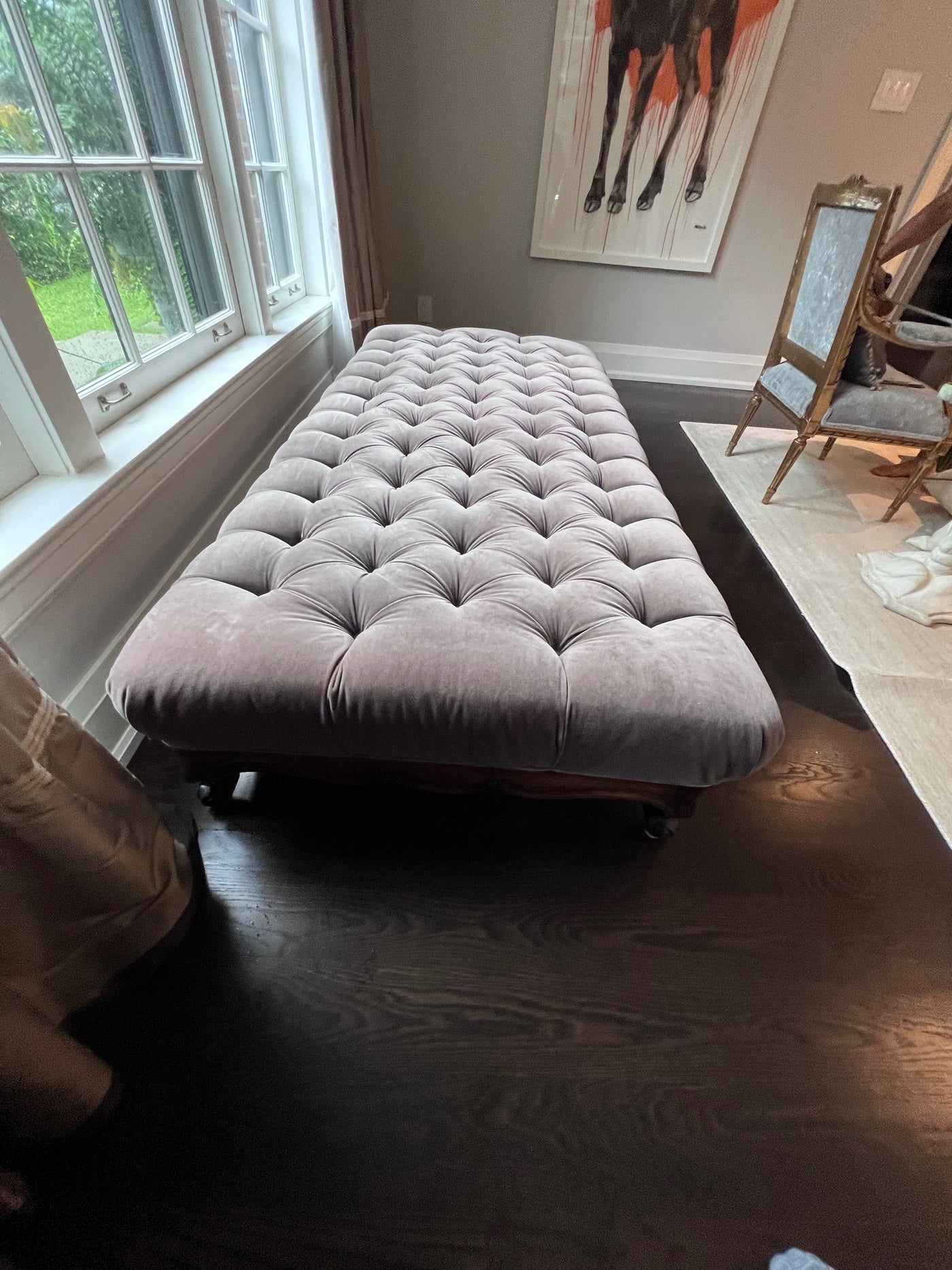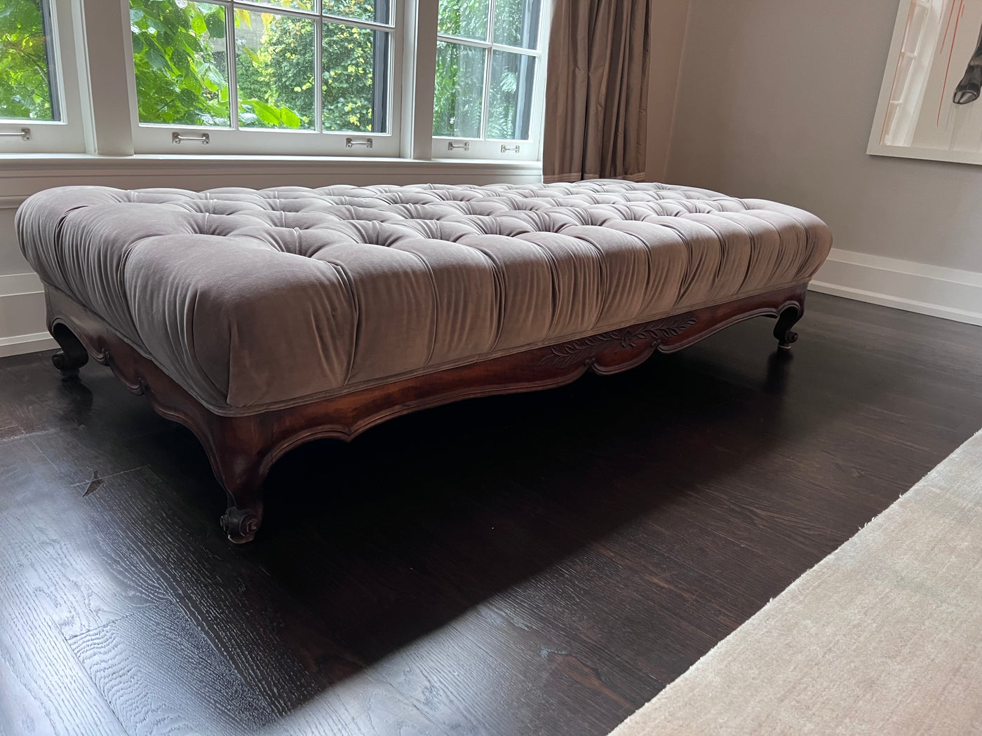 Large Antique Ottoman, Re-Upholstered Tufted Fabric