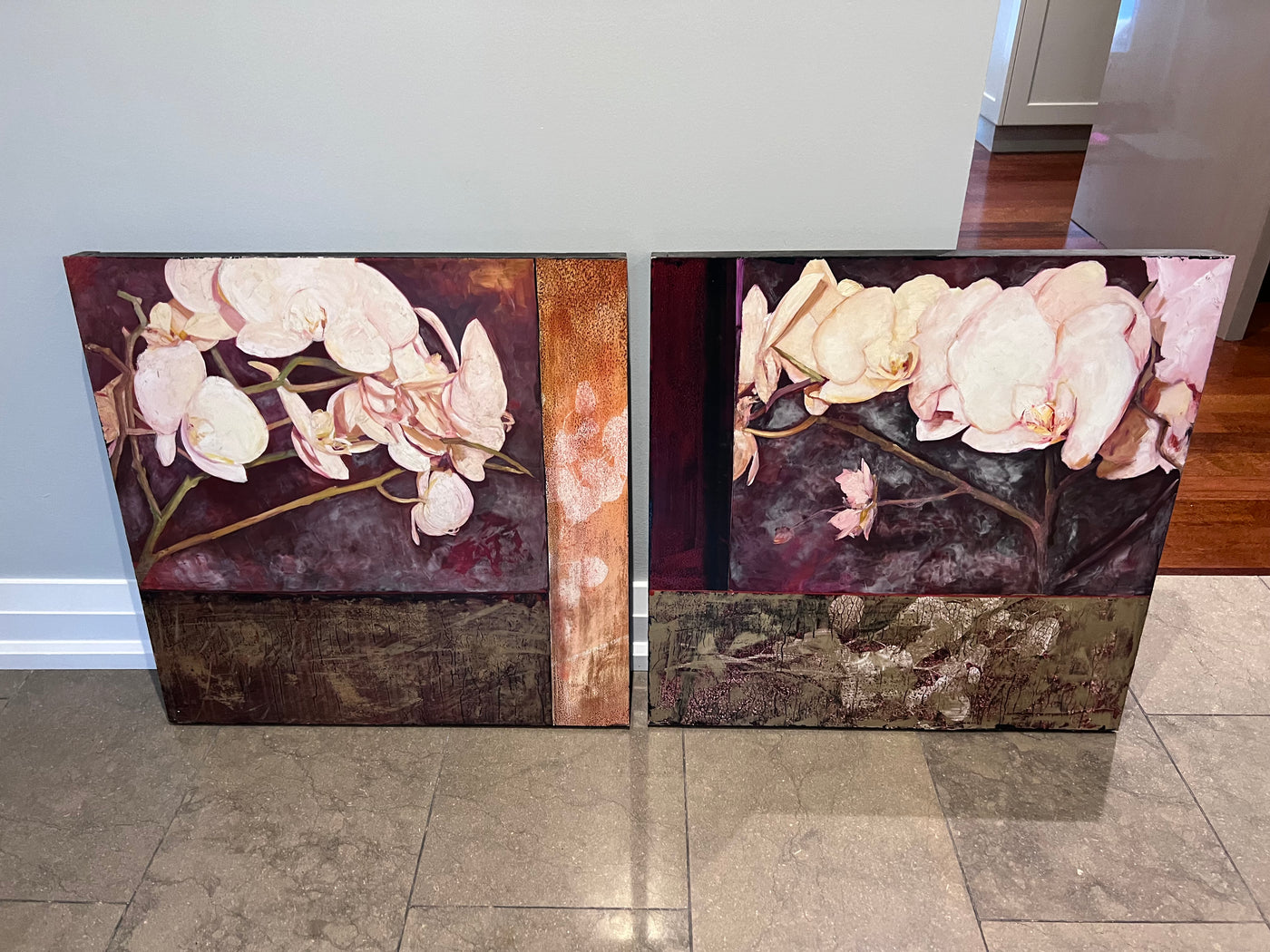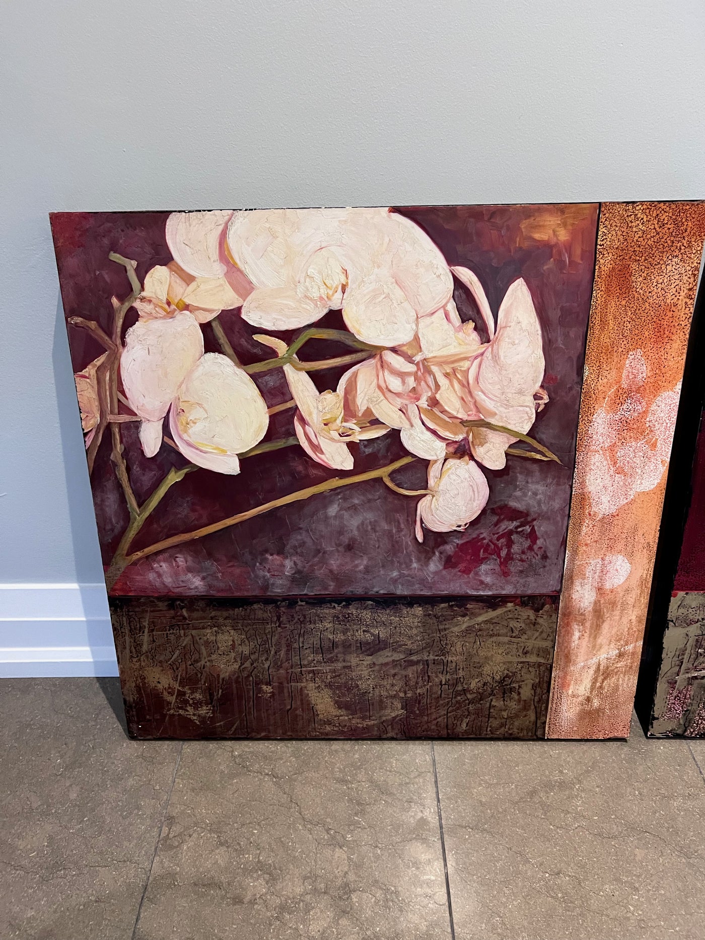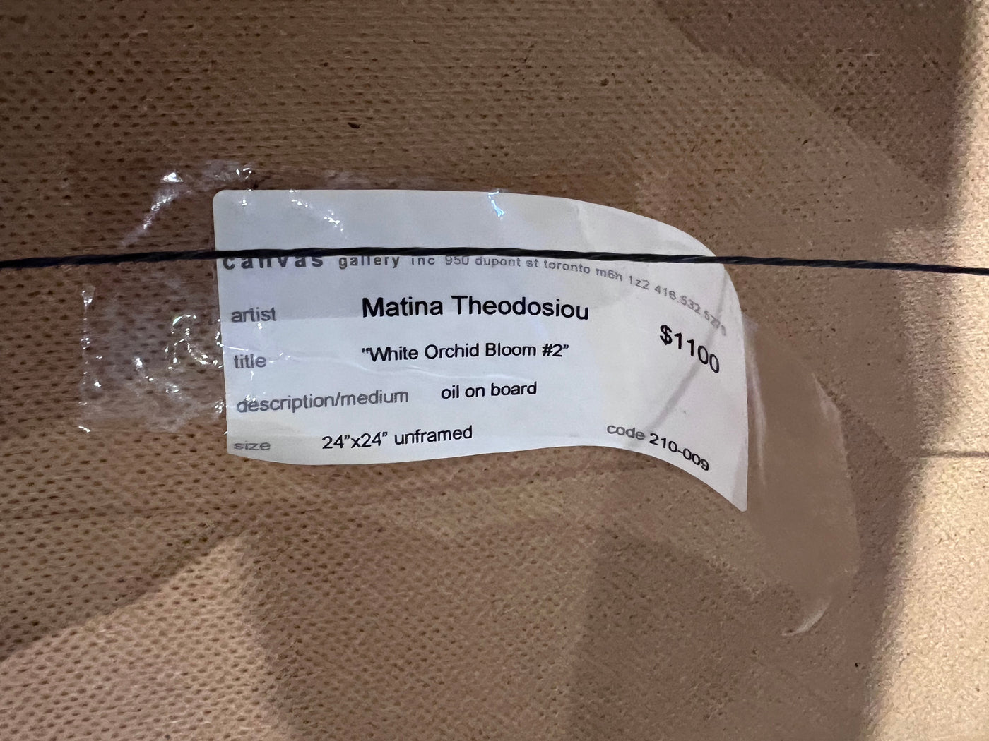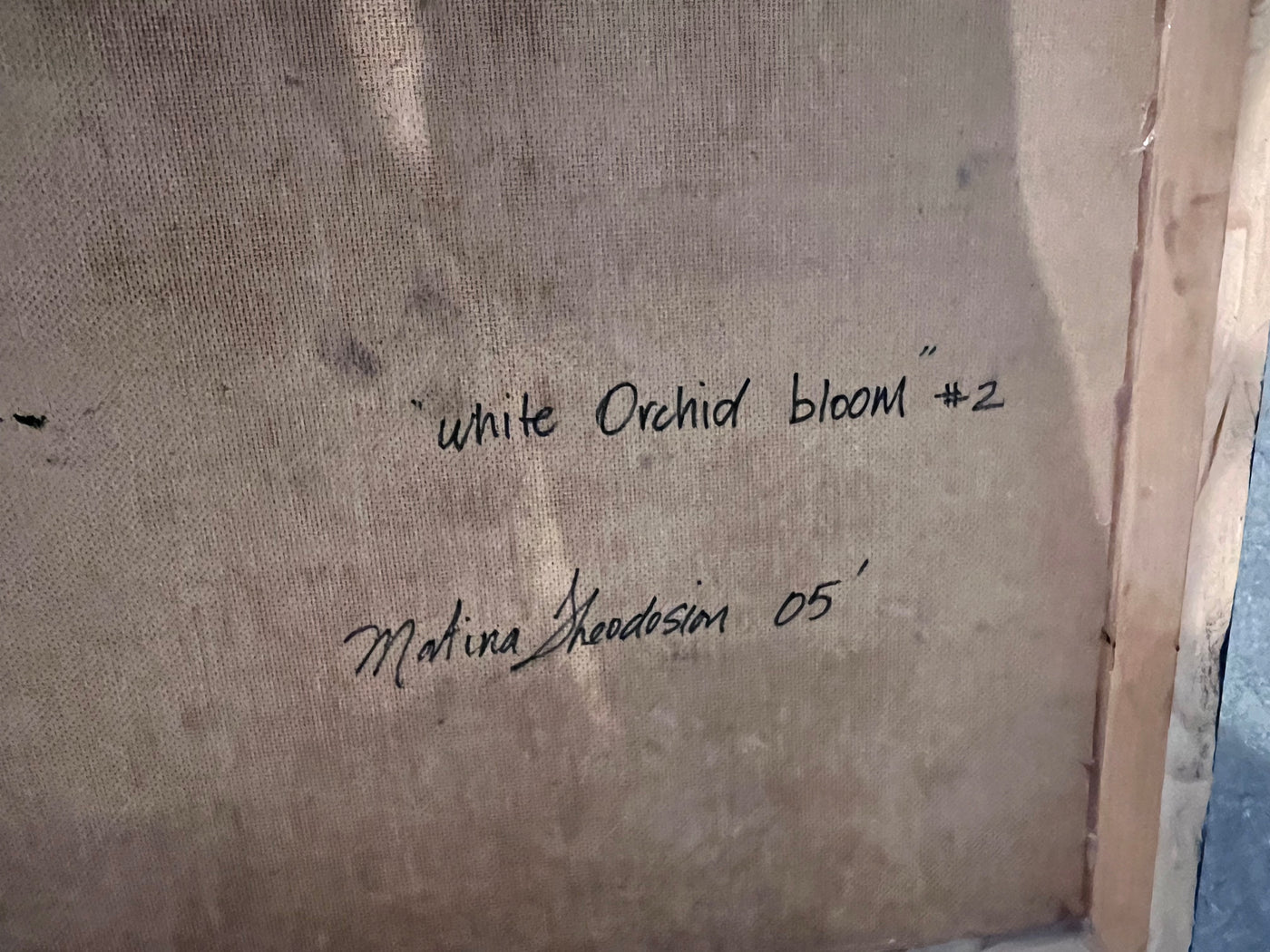 White Orchid Bloom #1 & White Orchid Bloom #2 Oil on Board by Matina Theodosiou-- Gallery Tag Included (*retail $2,200).