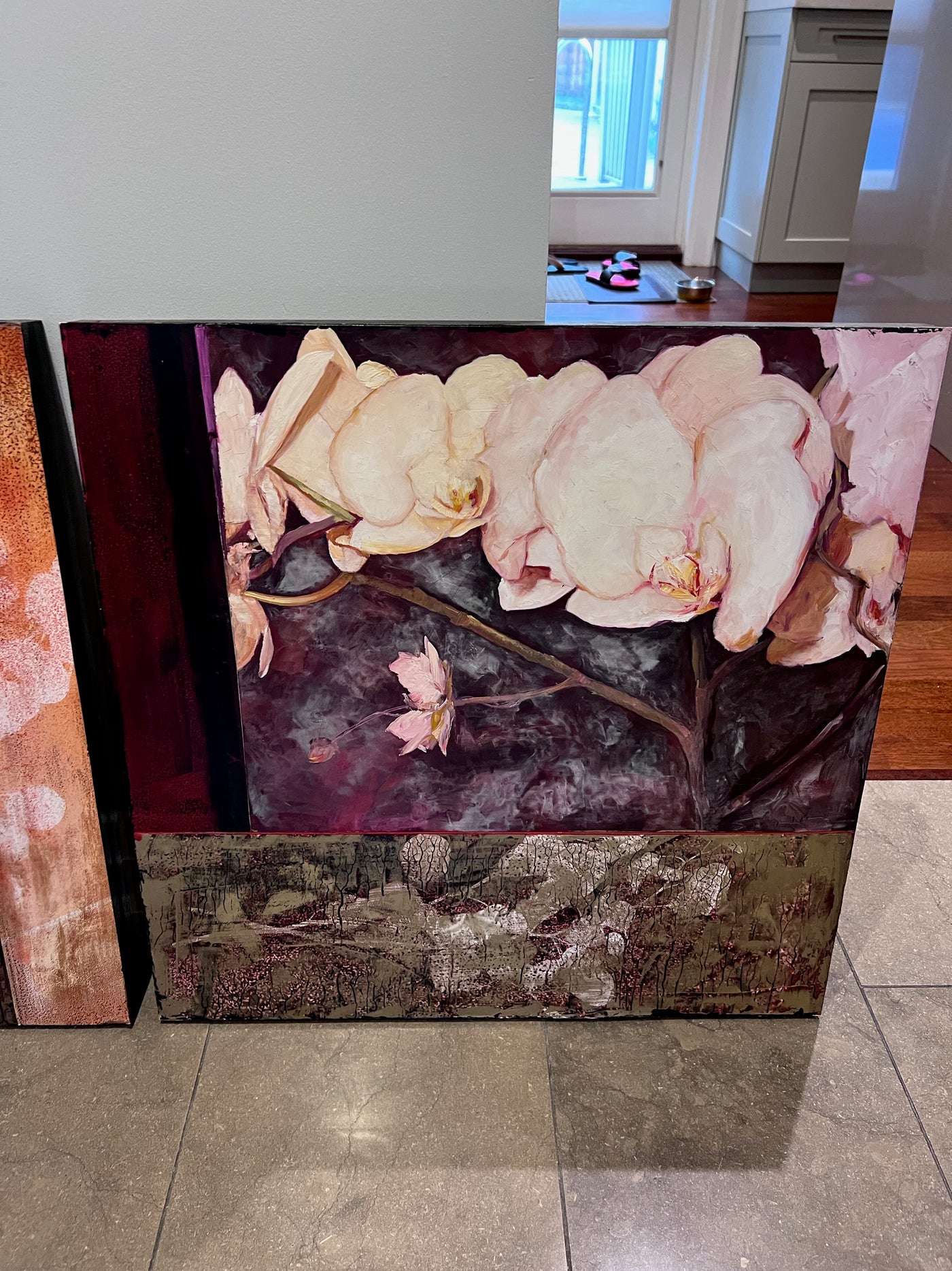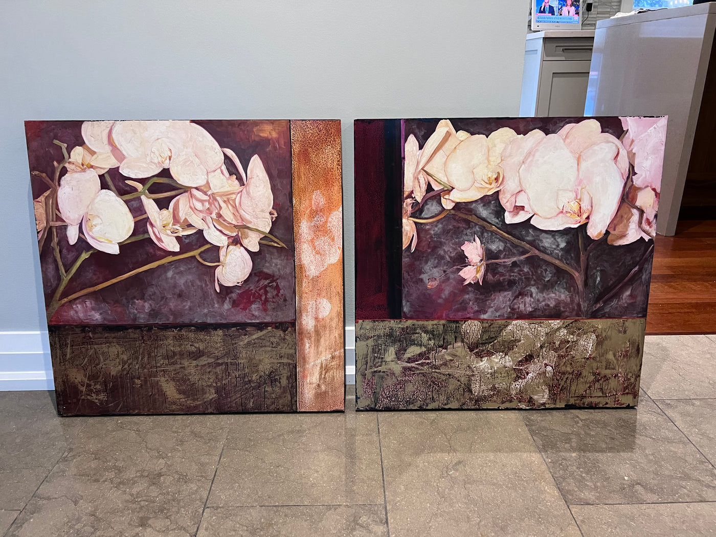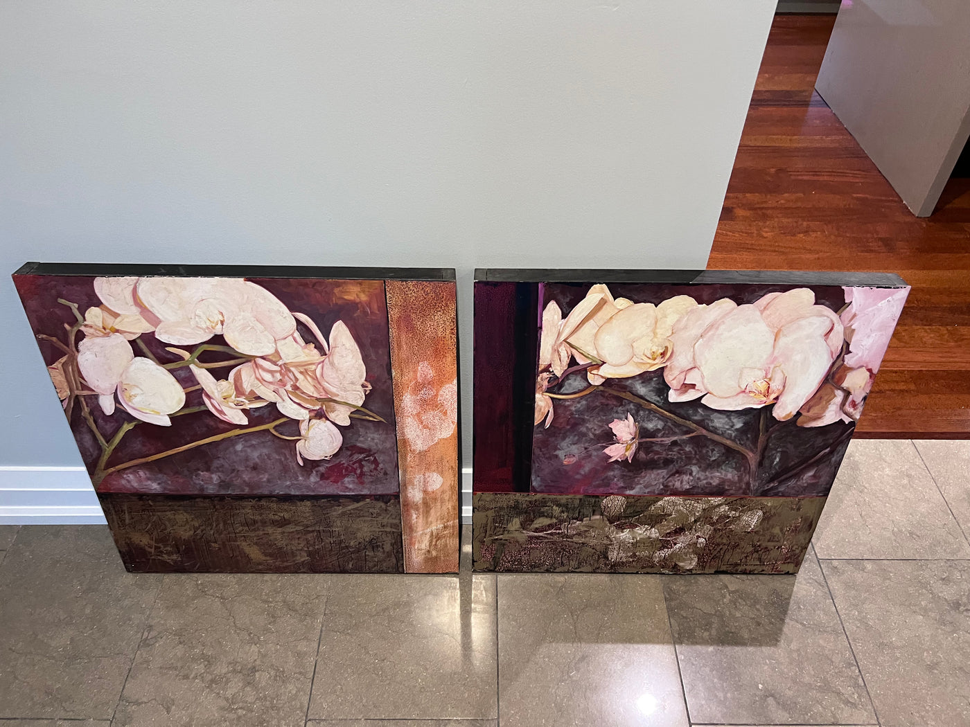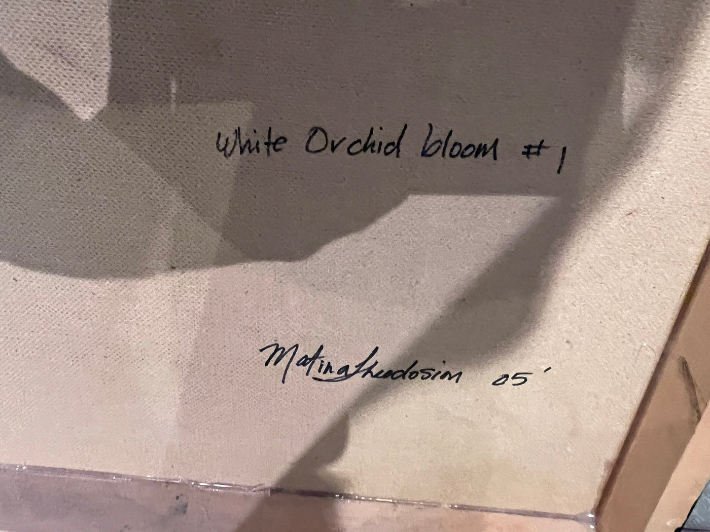 White Orchid Bloom #1 & White Orchid Bloom #2 Oil on Board by Matina Theodosiou-- Gallery Tag Included (*retail $2,200).