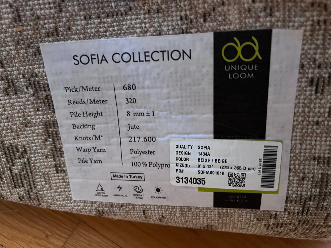 Unique Loom Sofia Collection Beige Area Rug- 9x12 ft