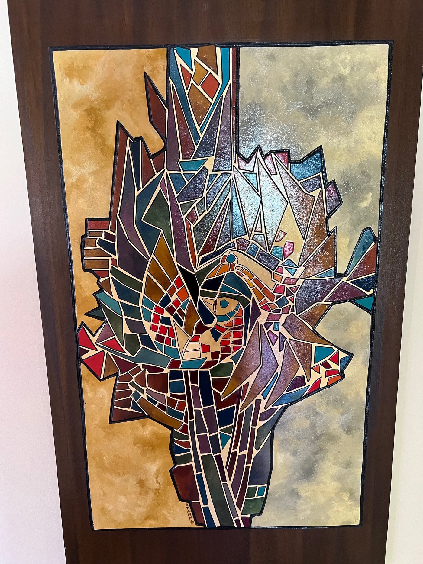 Aksel Tamme (1912-1975) Painted Cut Linoleum Carving.