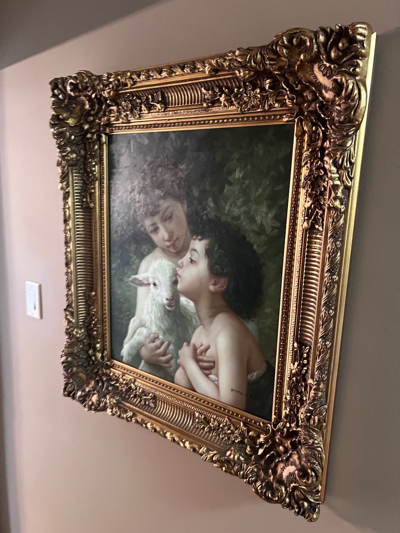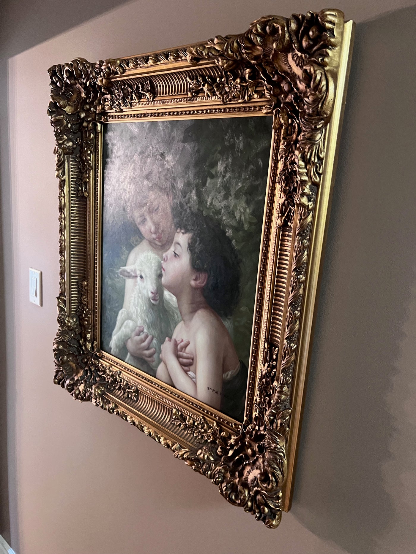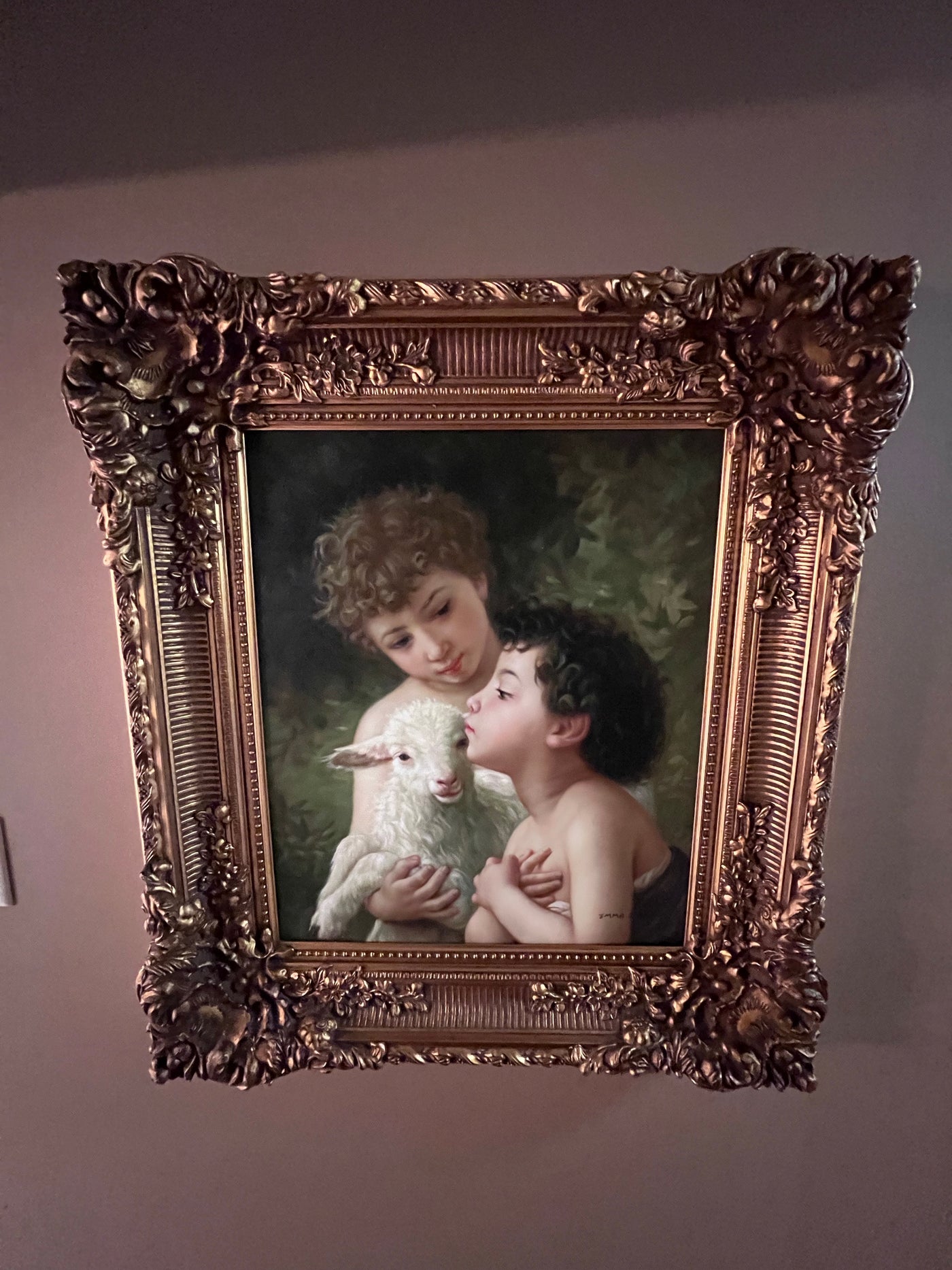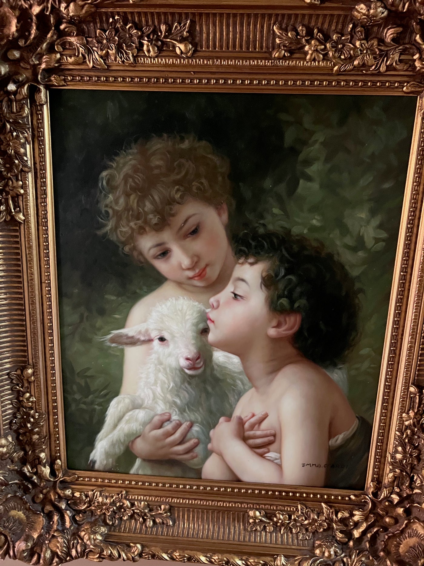 Ornate Framed Painting "Children With the Lamb" After William-Adolphe Bouguereau.