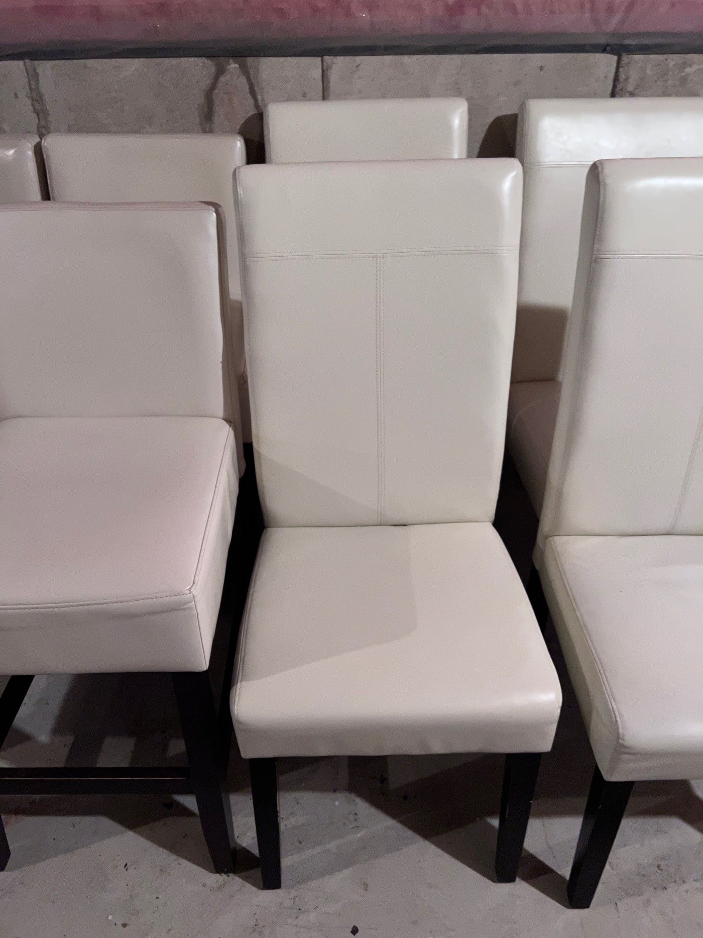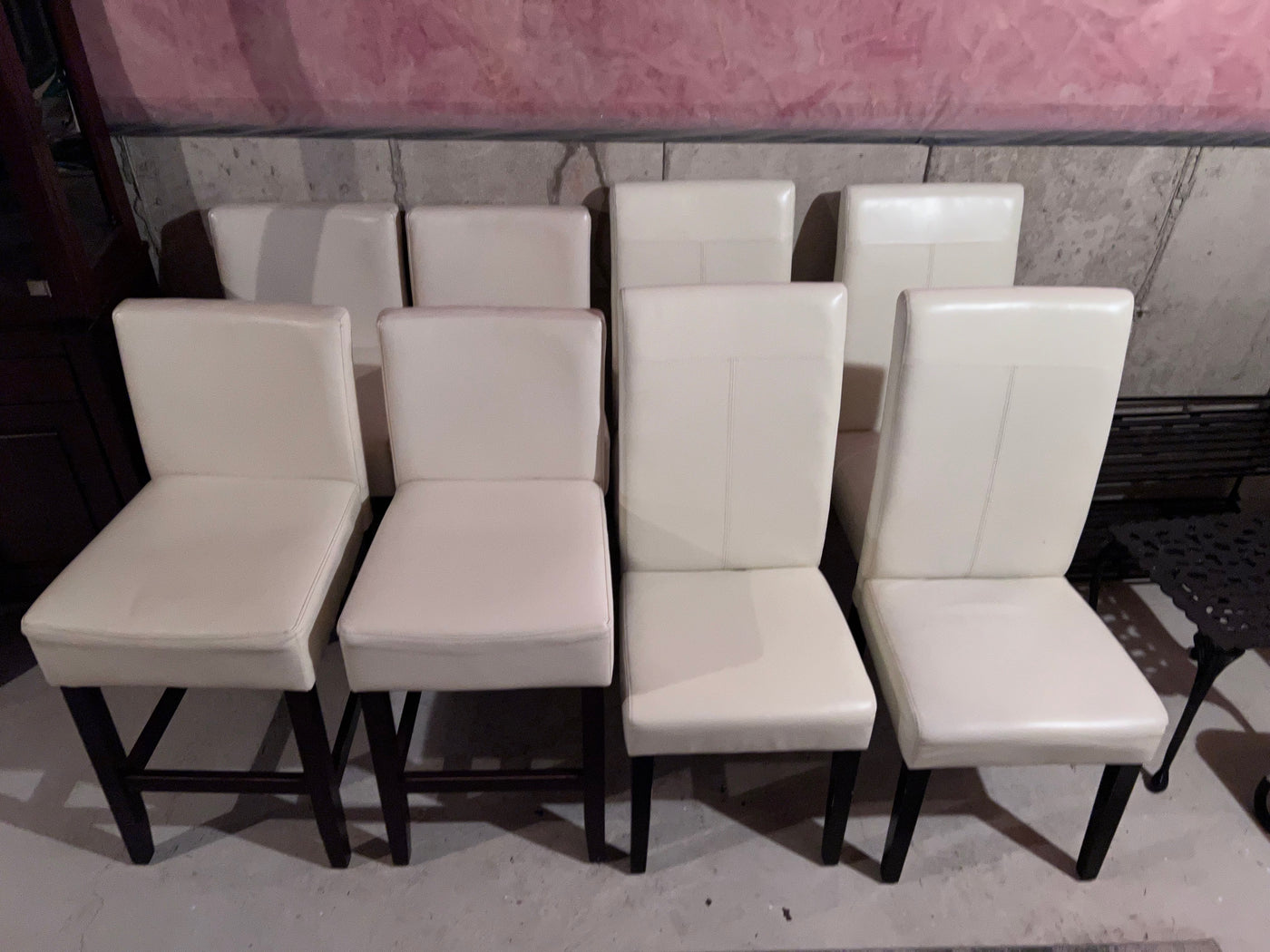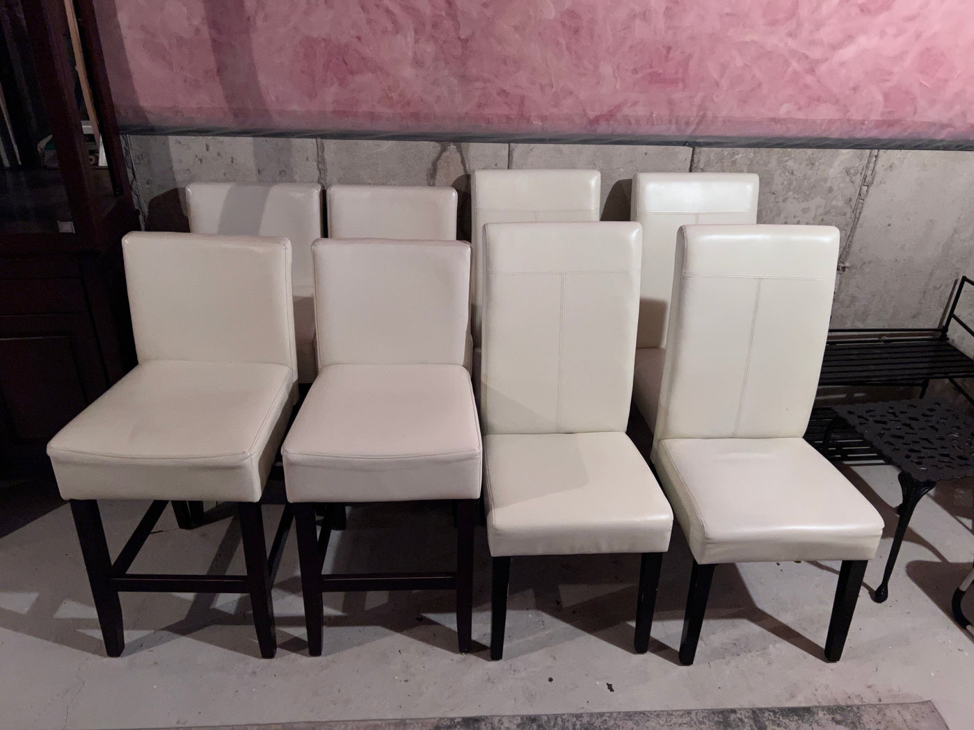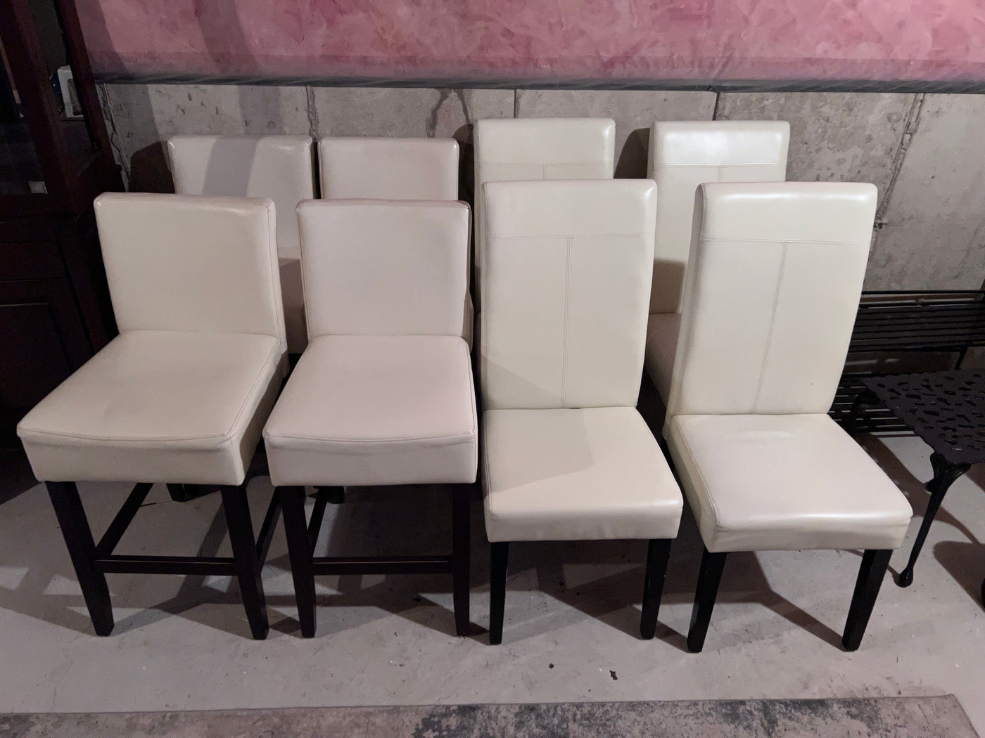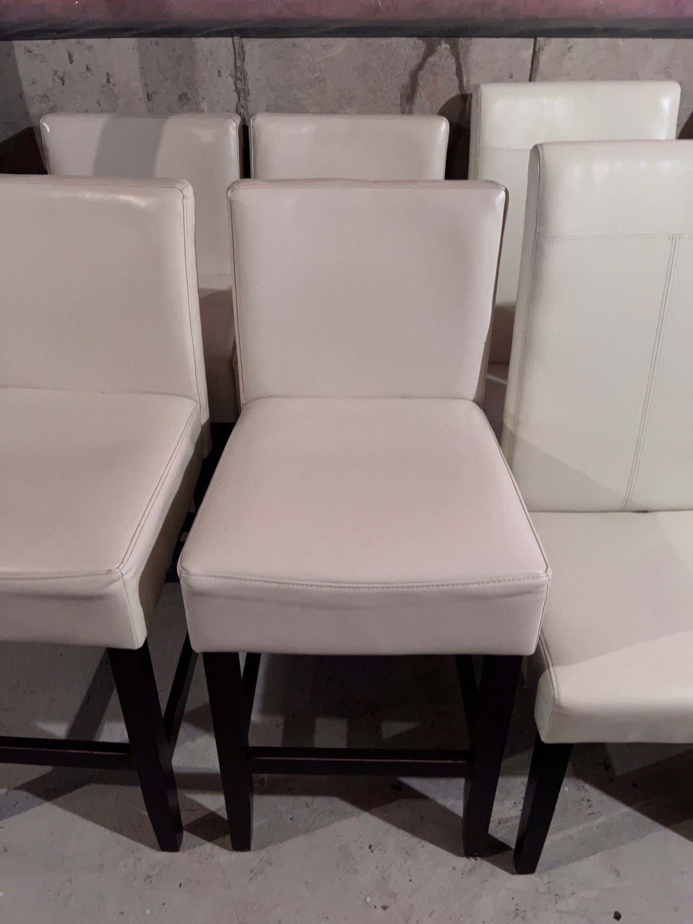 4 White Leather Counter Stools + 4 White Leather Chairs.