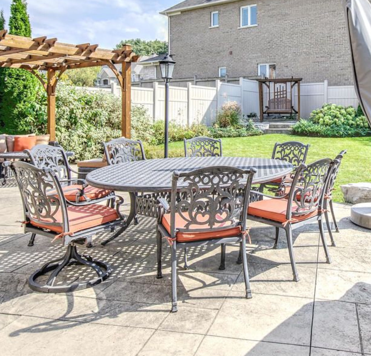 Dot Furniture Cast Aluminum Patio Dining Table + 10 Chairs.