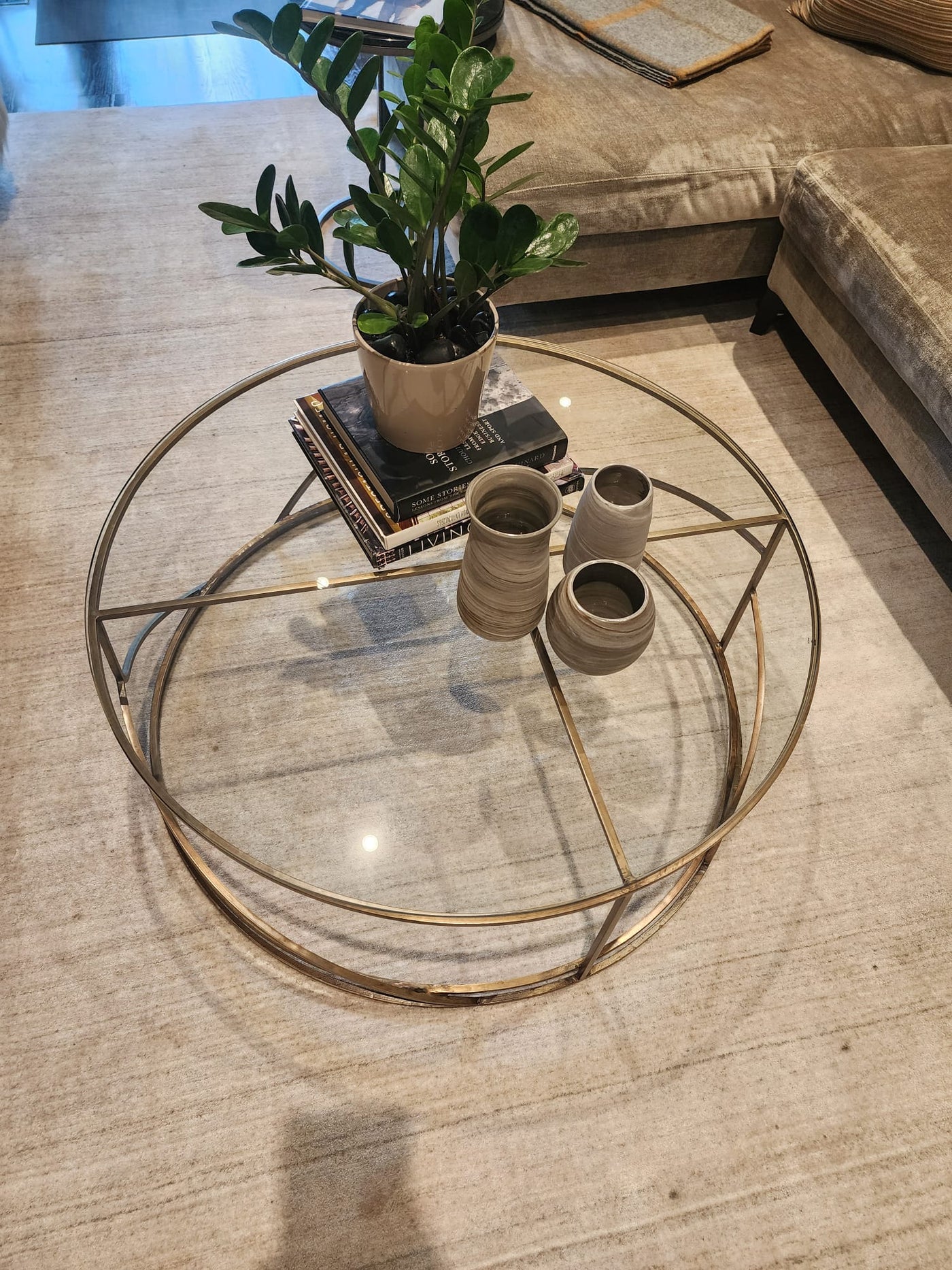 Designer Round Glass Gold Coffee Table (*retail $2000).