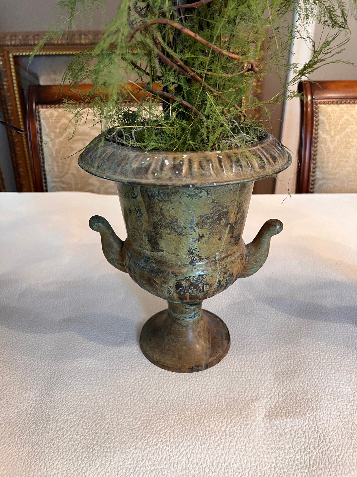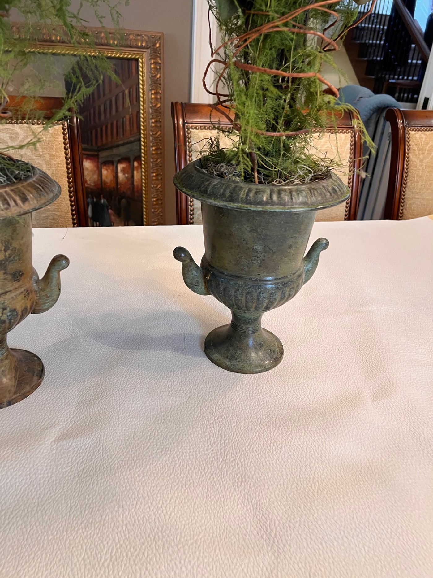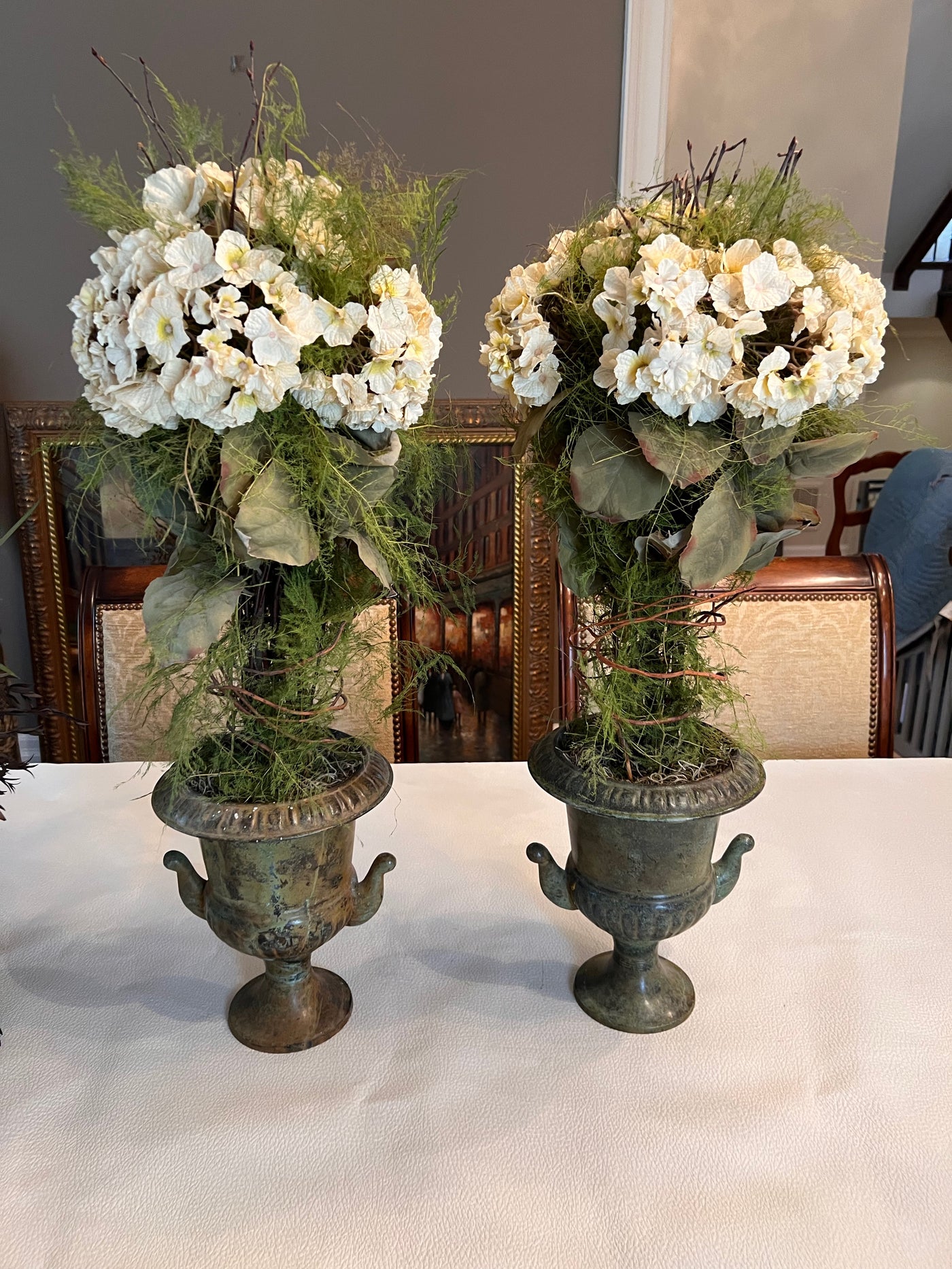 Pair of Small Decorative Urns with Faux Floral Arrangements.