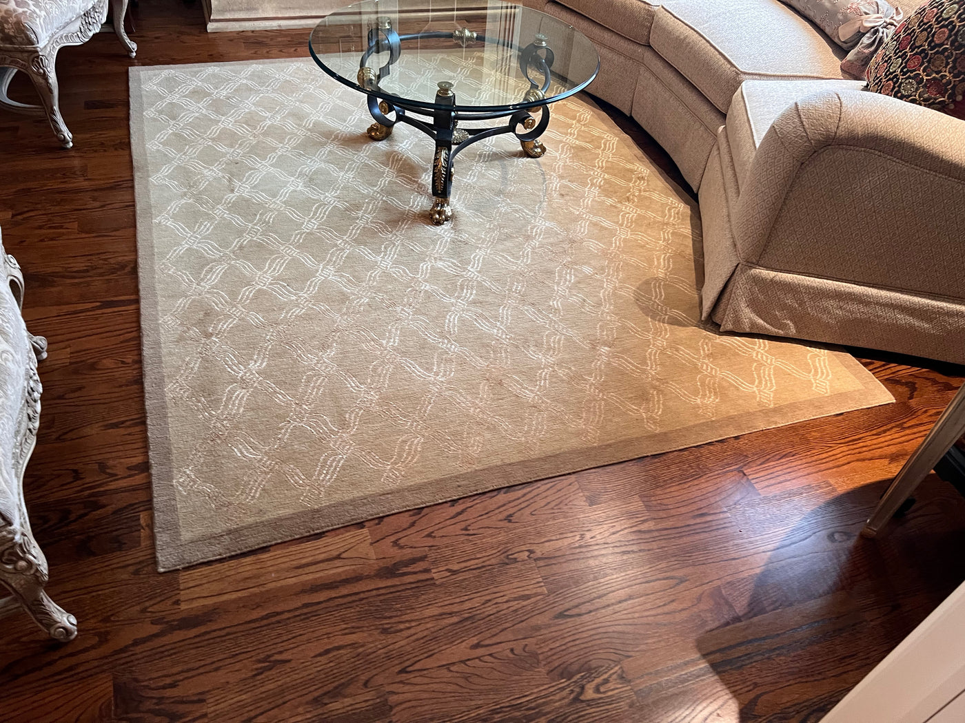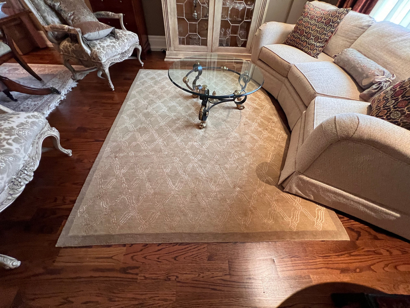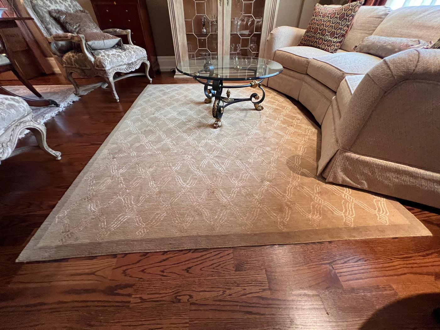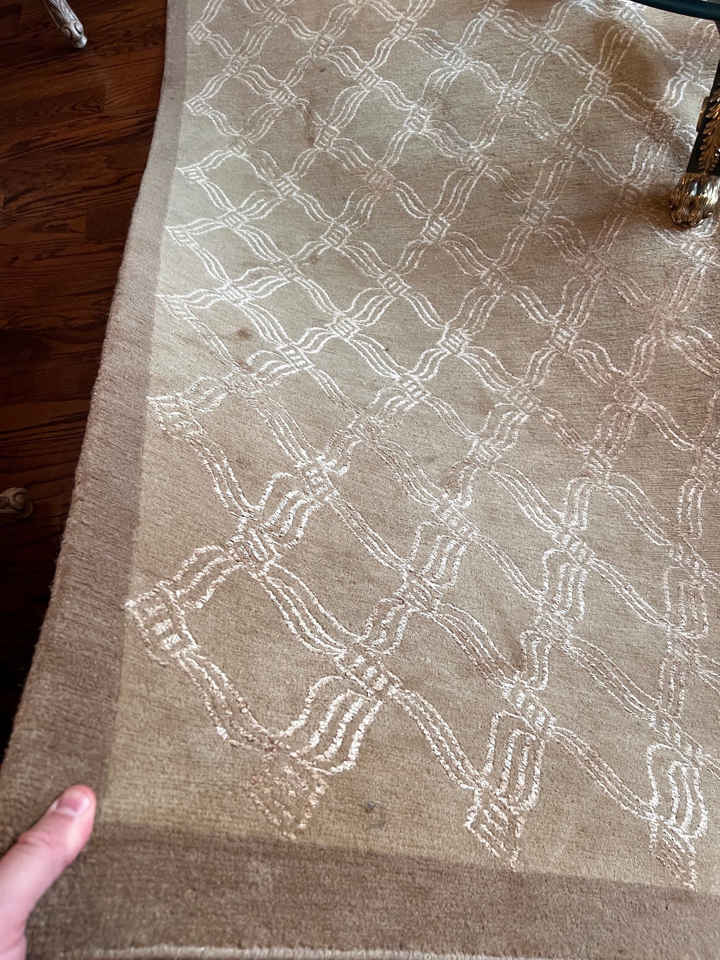 Condition: while this was a living room rug and not frequently walked on, there may be some wear and discolouration from the sun and normal use over time. We do not locate any major stains or tears.