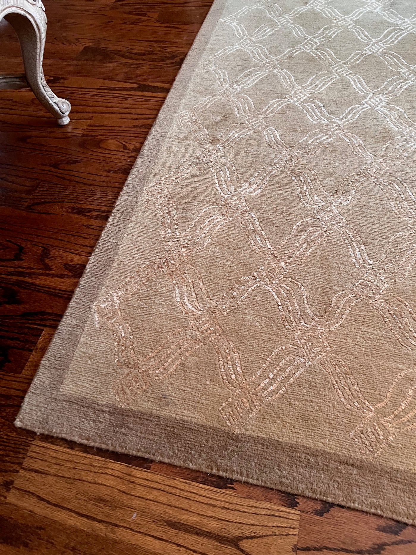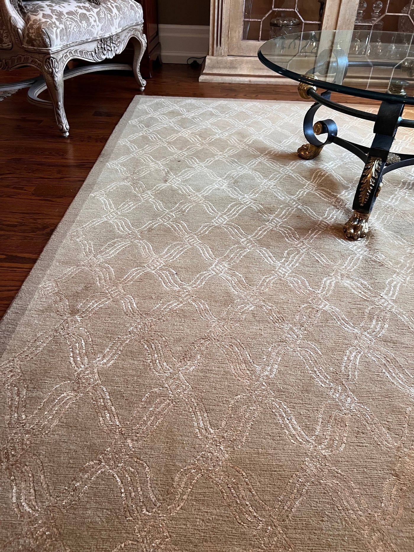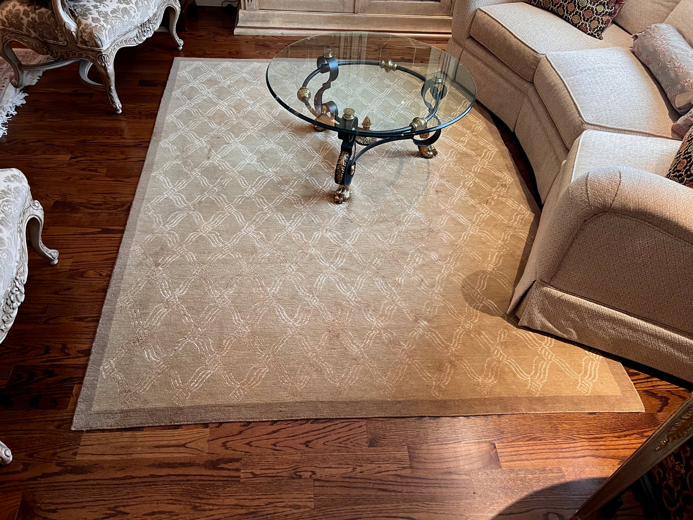 Condition: while this was a living room rug and not frequently walked on, there may be some wear and discolouration from the sun and normal use over time. We do not locate any major stains or tears.
