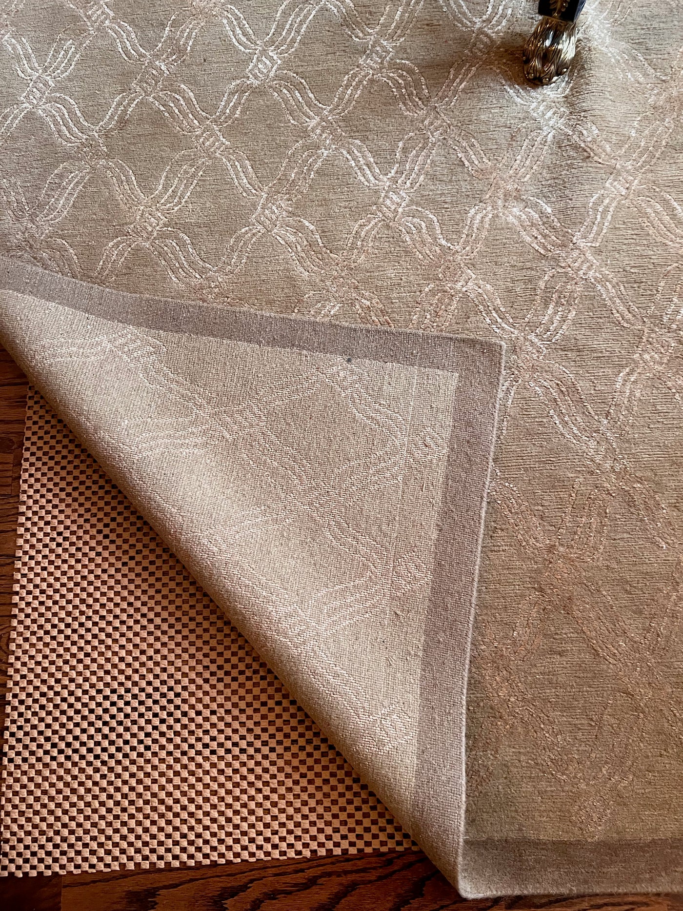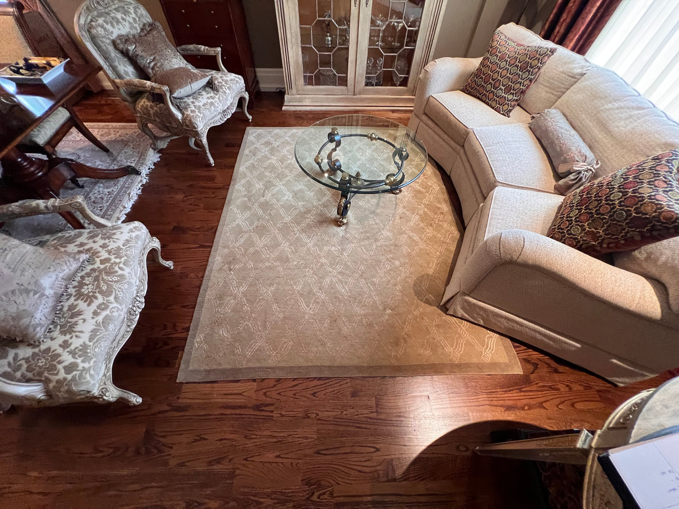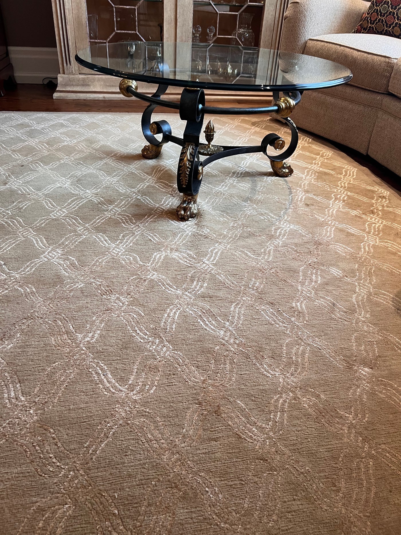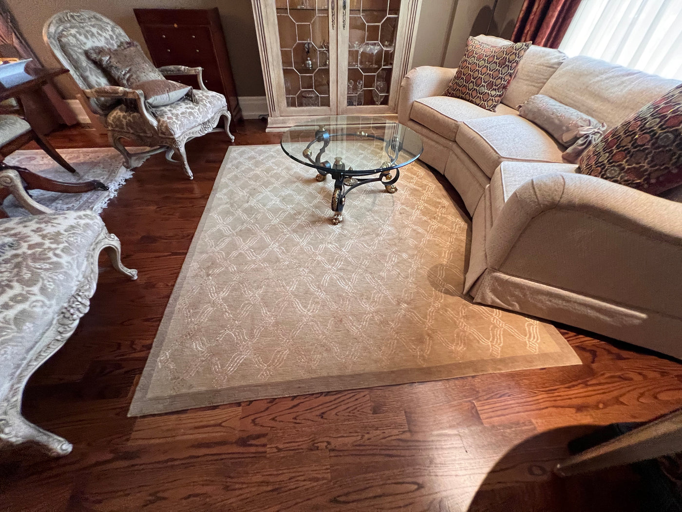 Condition: while this was a living room rug and not frequently walked on, there may be some wear and discolouration from the sun and normal use over time. We do not locate any major stains or tears.