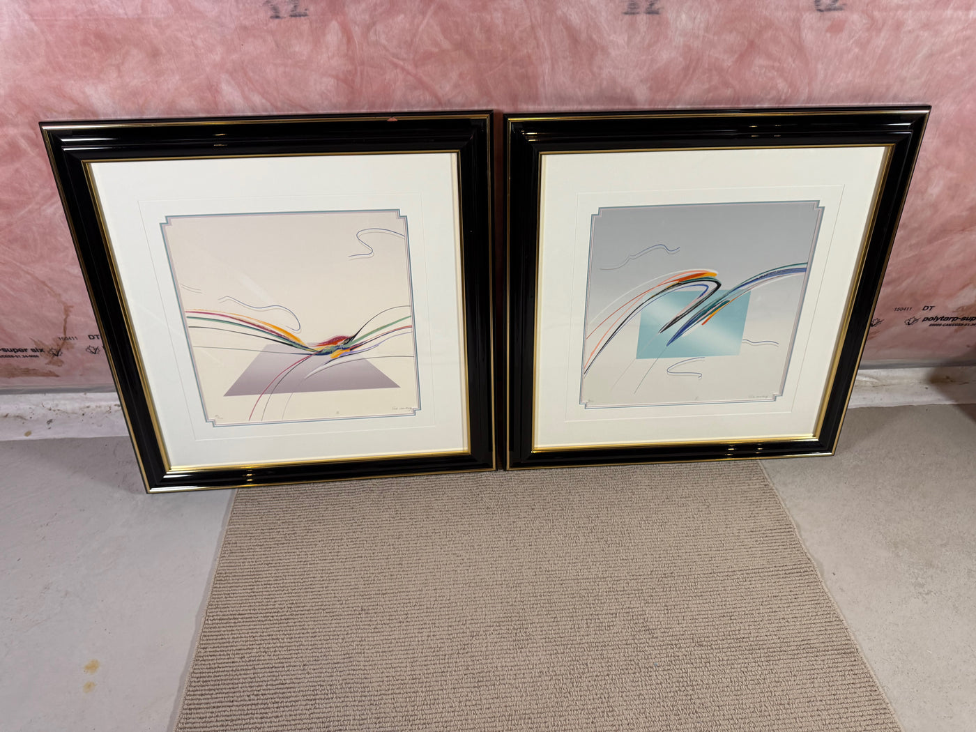 Pair of Elba Alvarez 'B' & 'E' Framed Abstract Lithographs