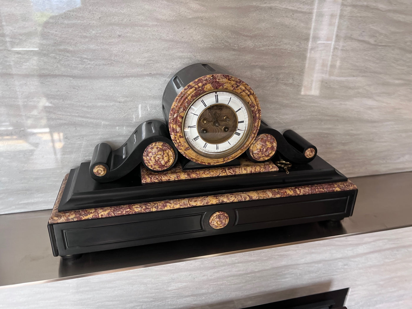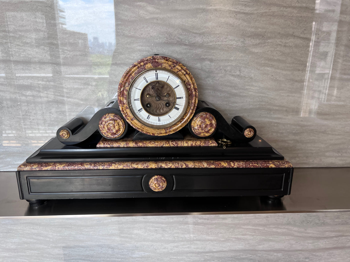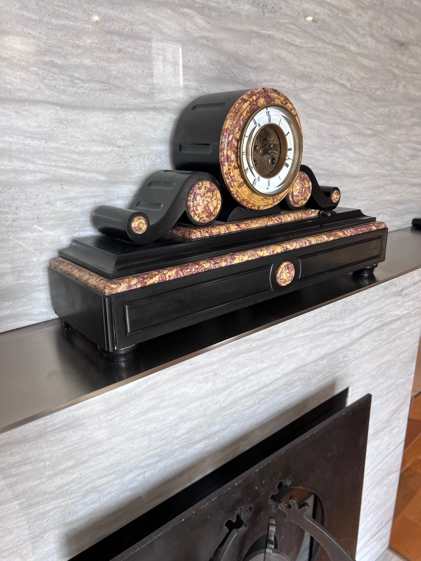 19th Century Antique French Black Slate and Marble Mantle Clock by L’Marti Cie.