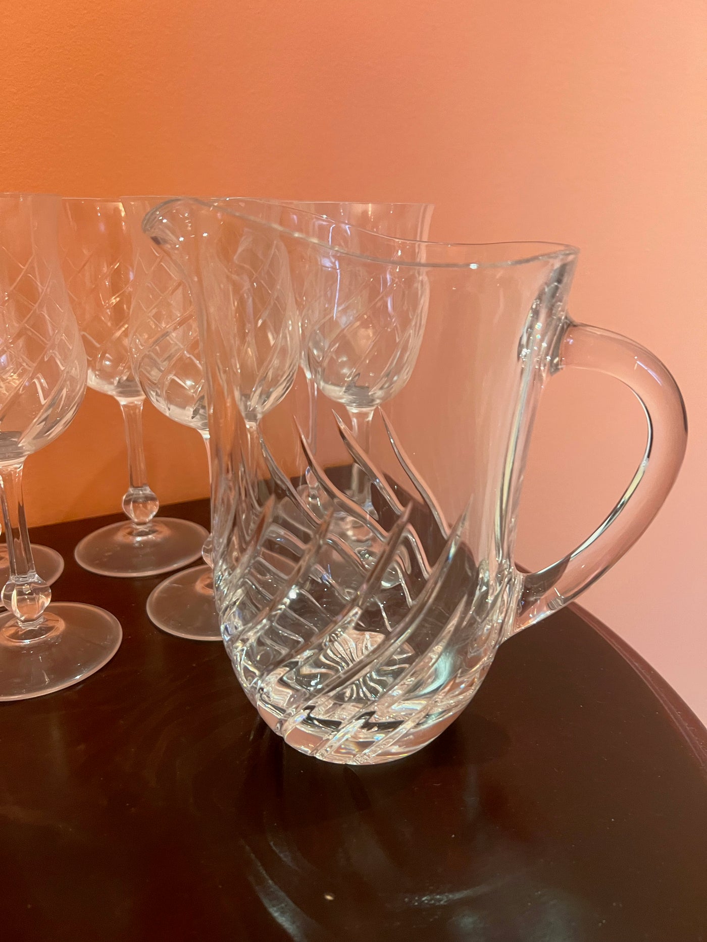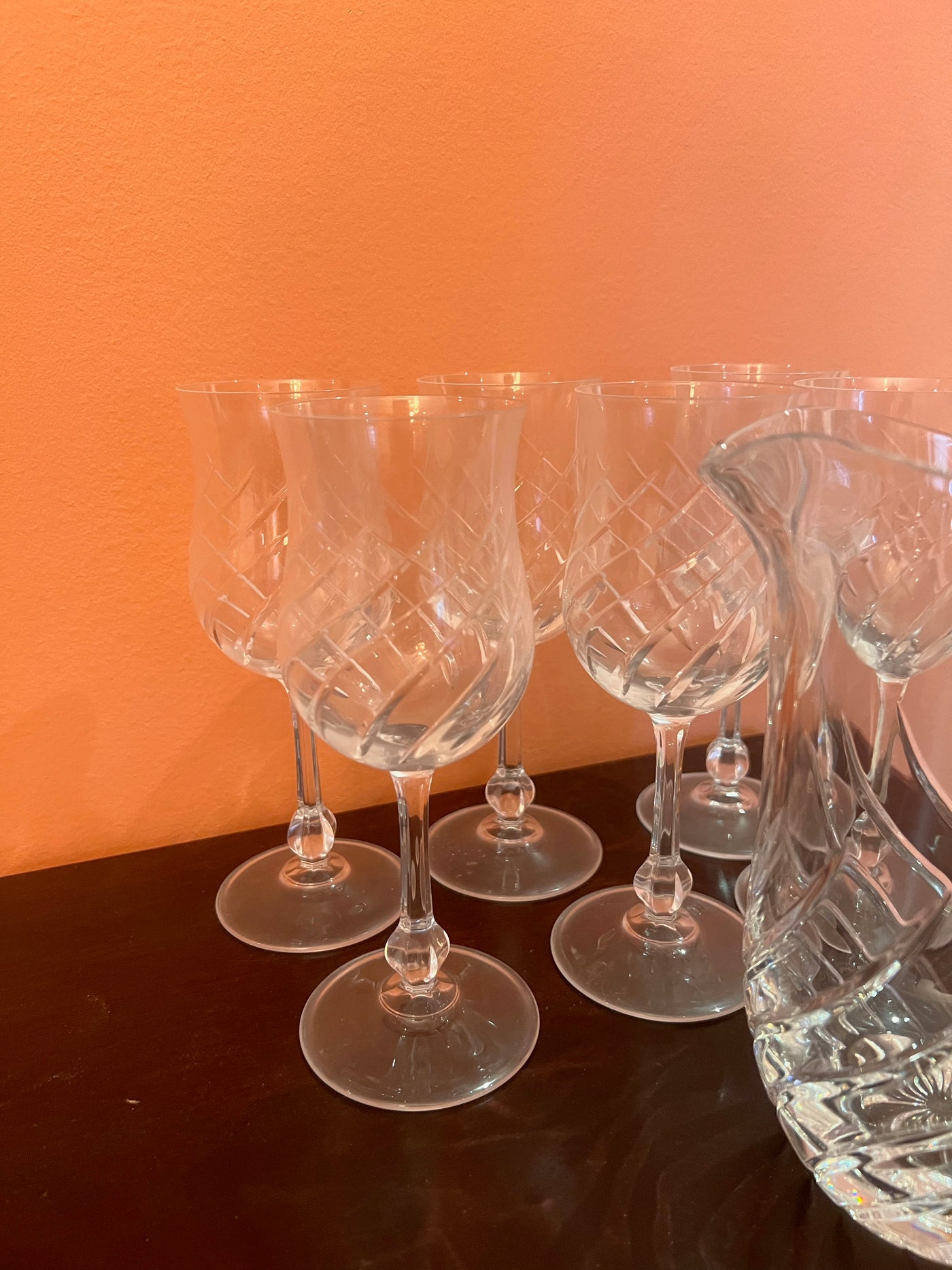 6 Crystal Wine Glasses + Crystal Pitcher.