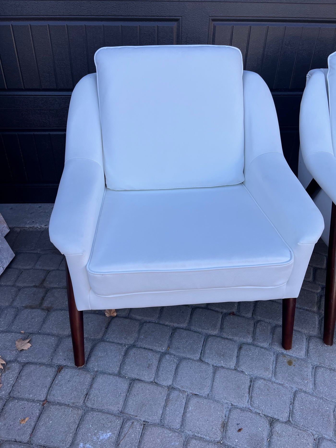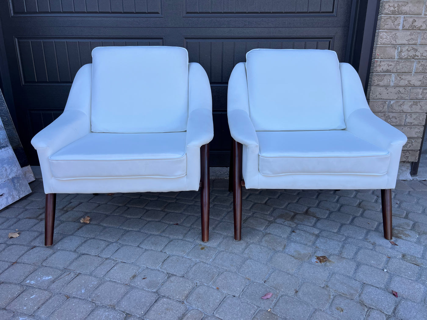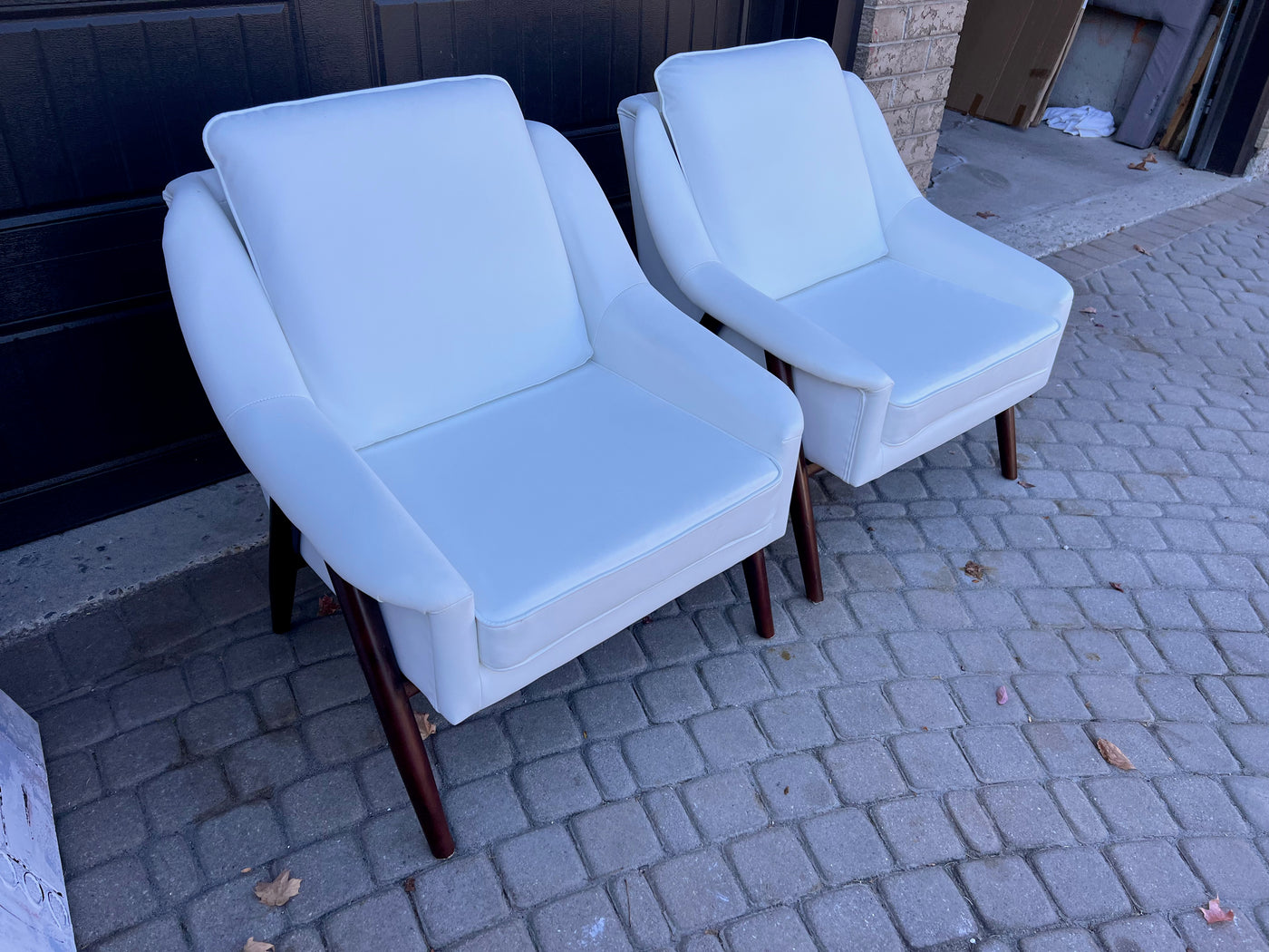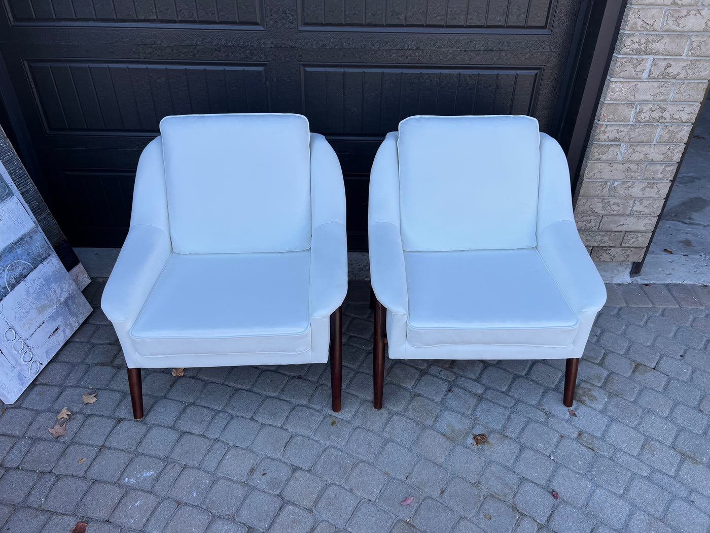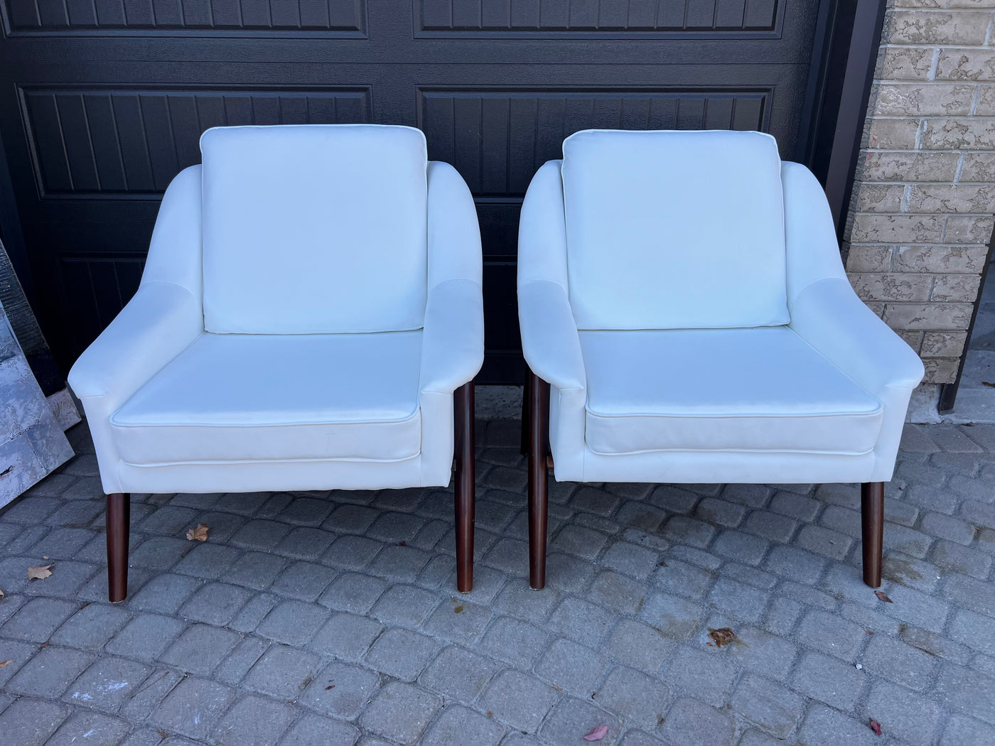 Pair of White Faux Leather Accent Chairs.