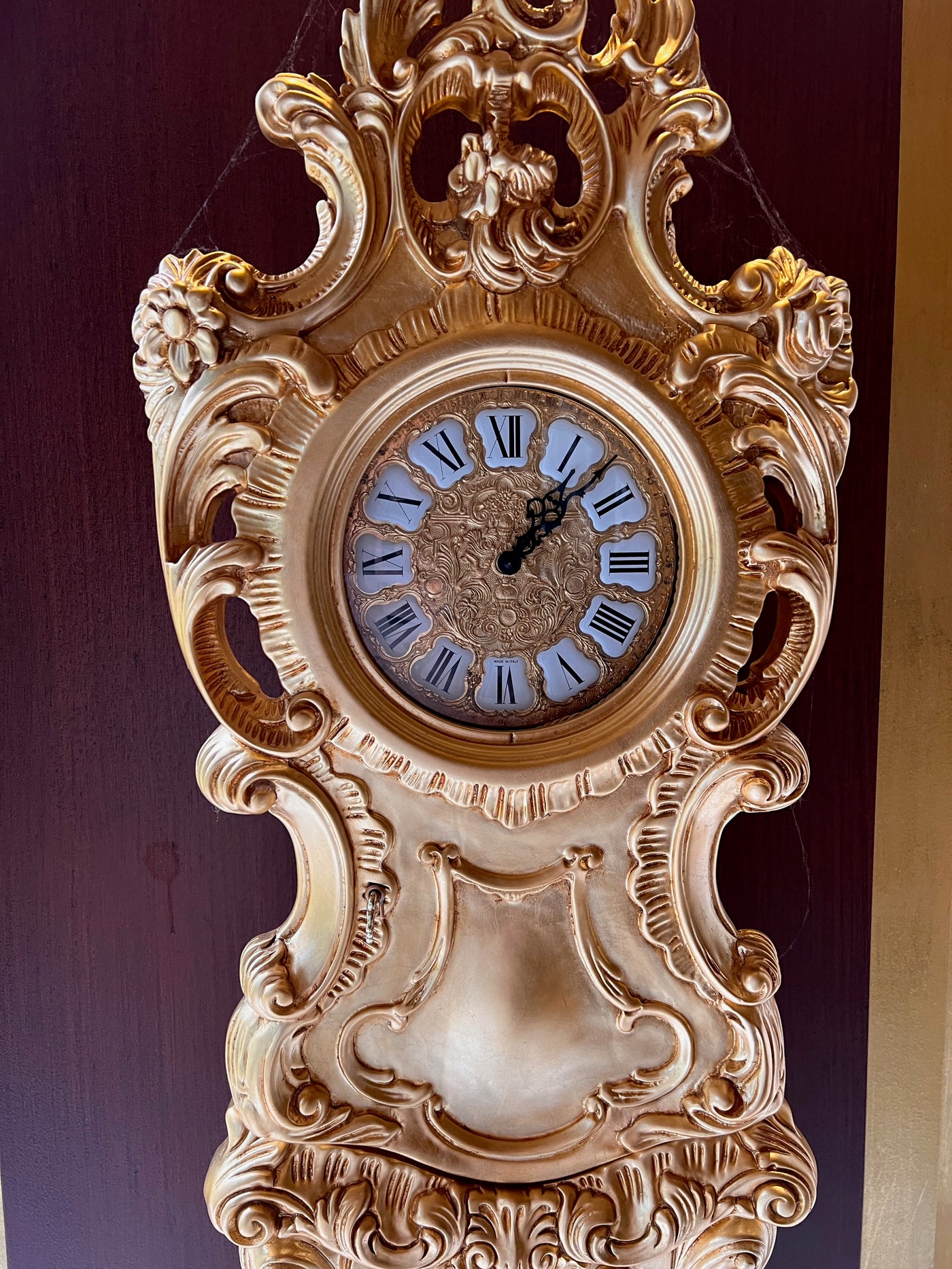An iconic design and one of the label’s most desired grandfather clocks in gold finishing is transformed into a sumptuous home décor item by Modenese Furniture.