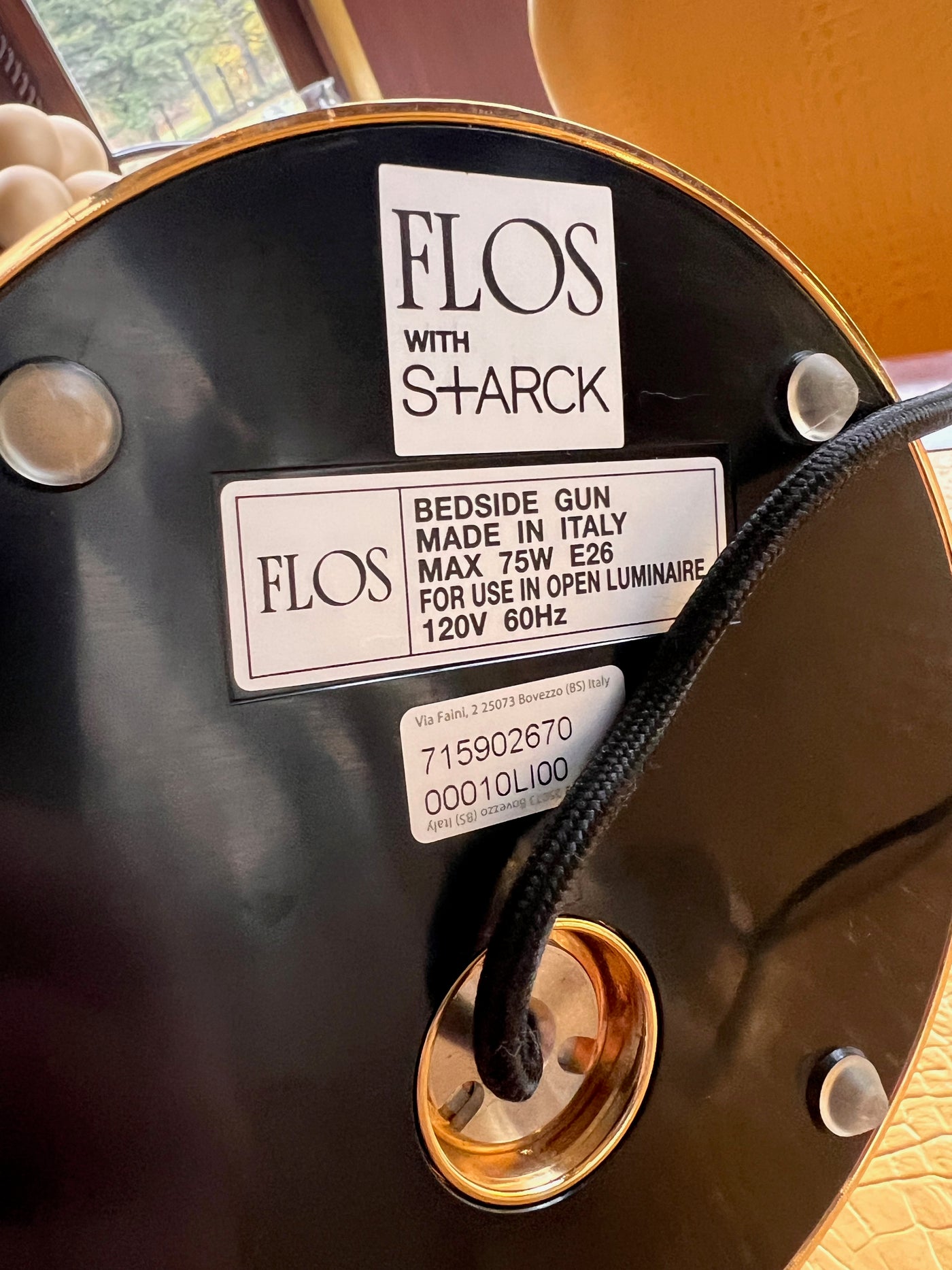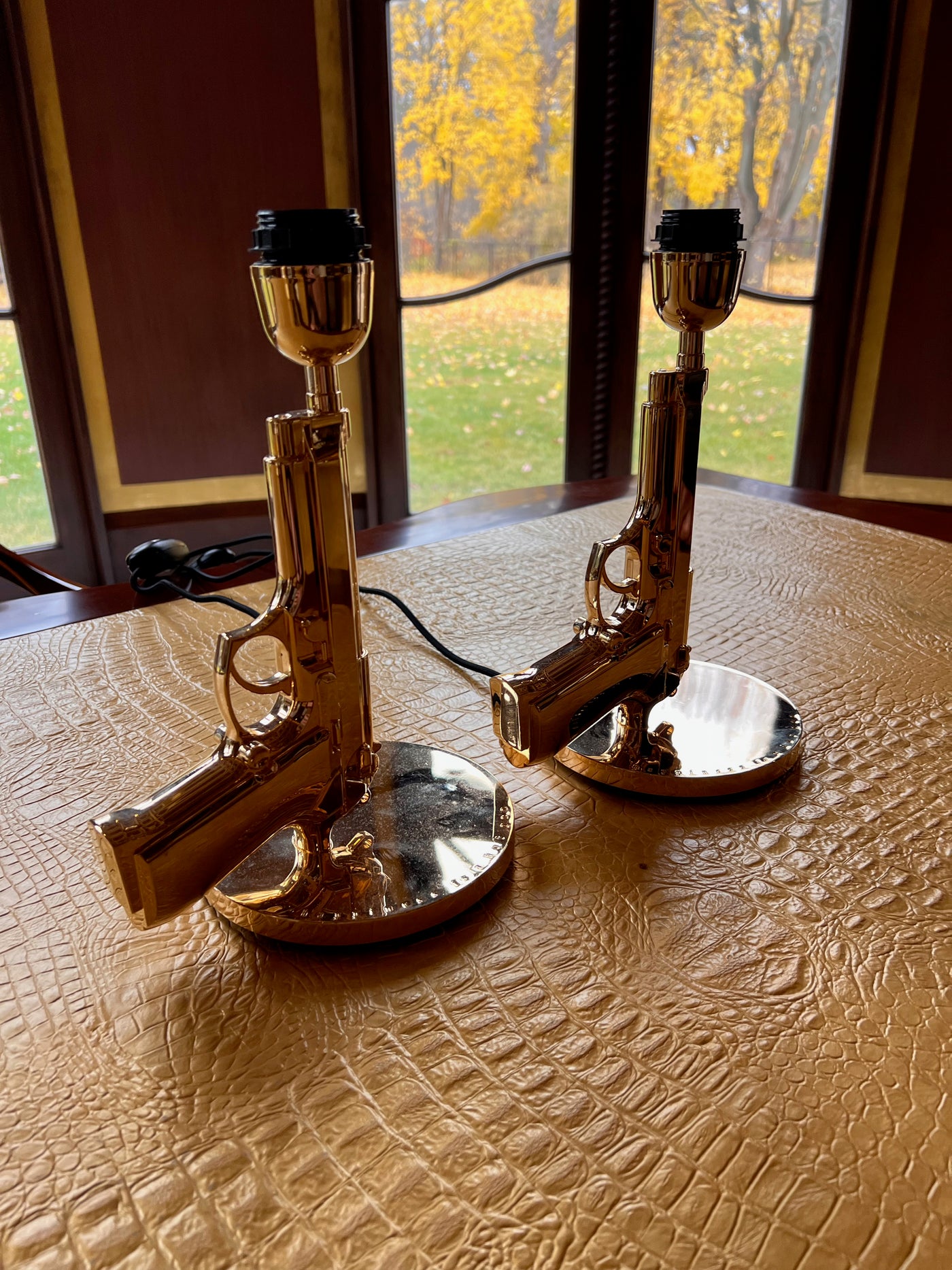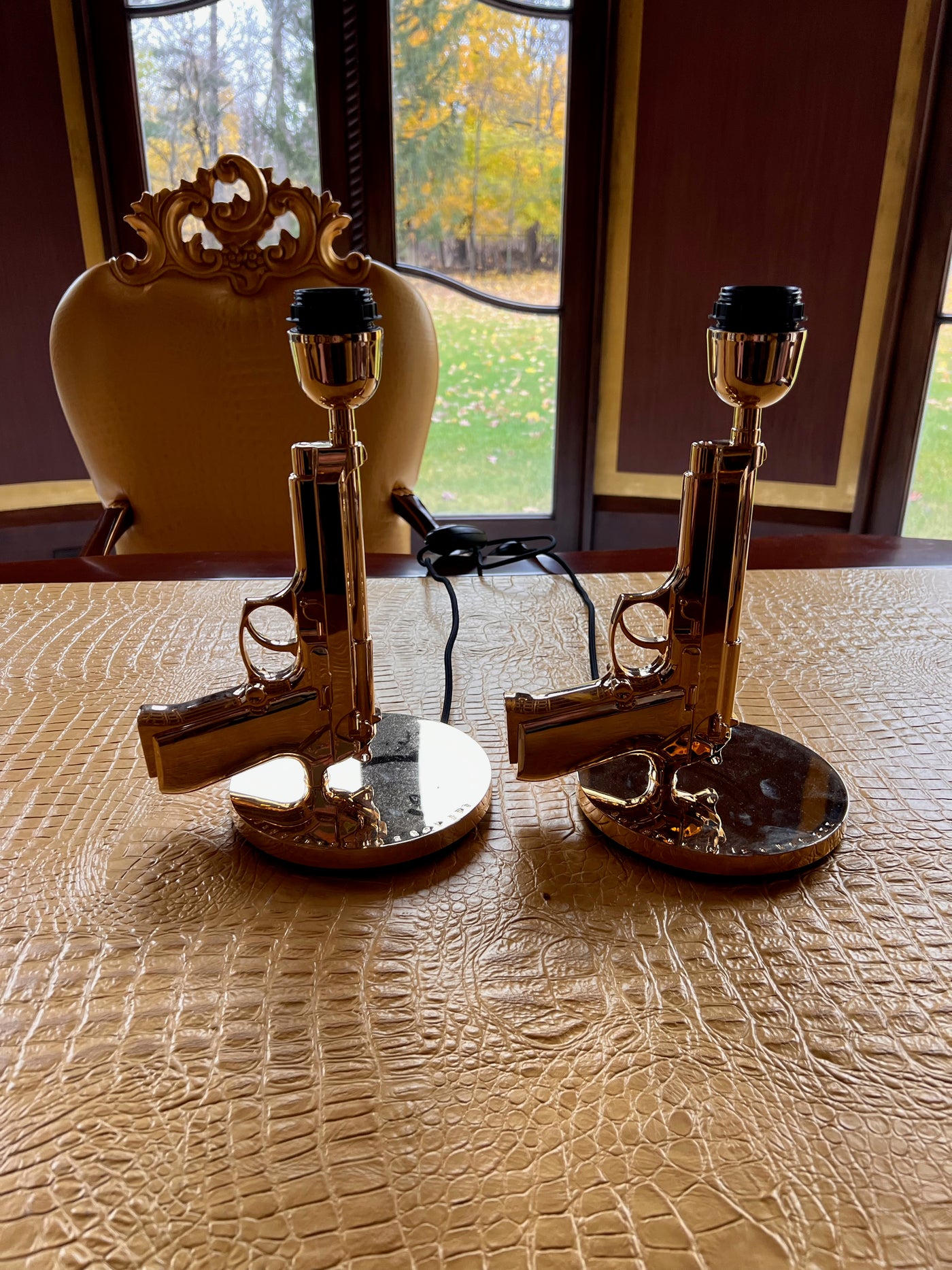 2 Flos 'Bedside Gun' Table Lamps in Gold by Philippe Starck, Made in Italy (*does not come with shades).