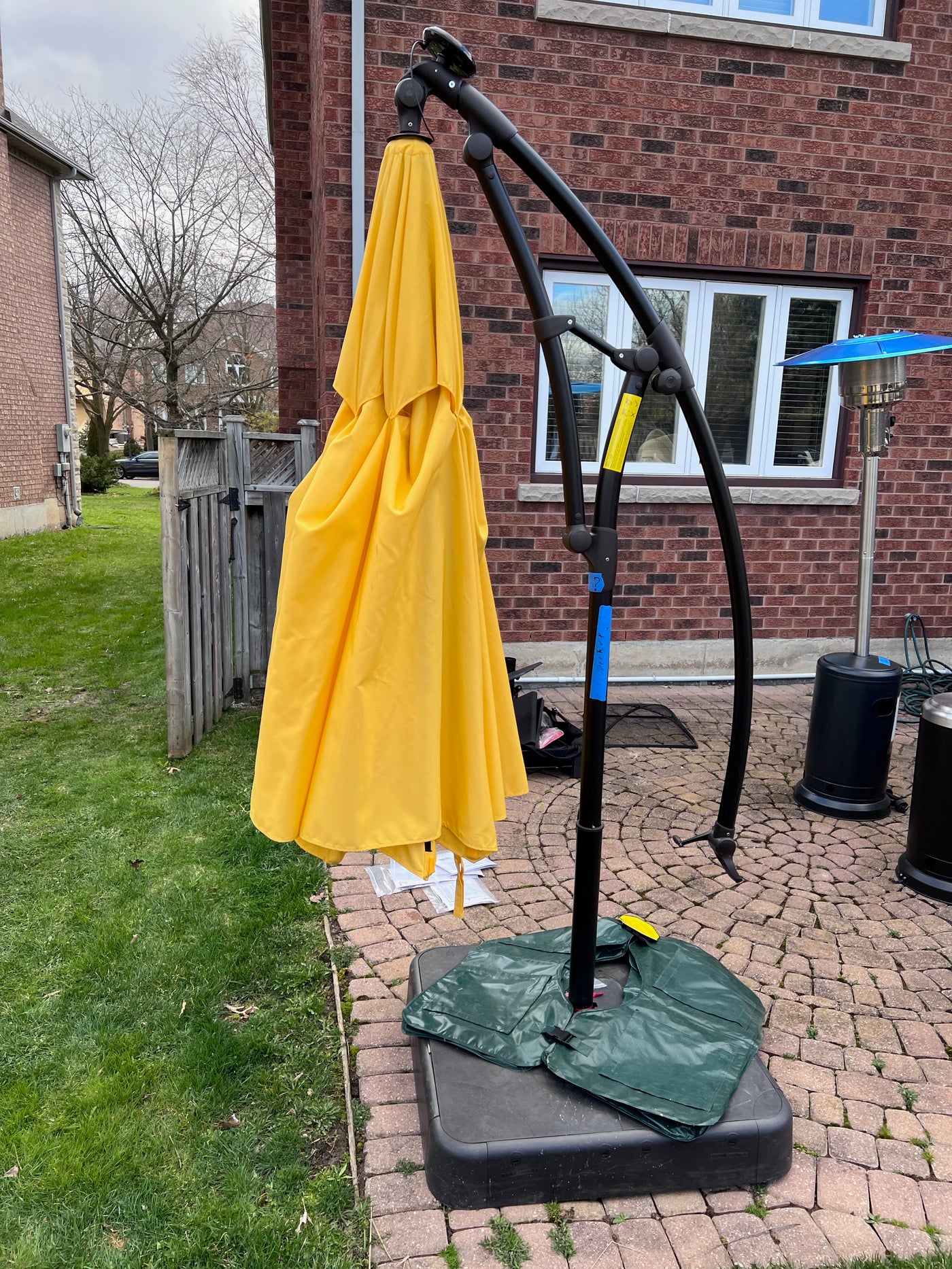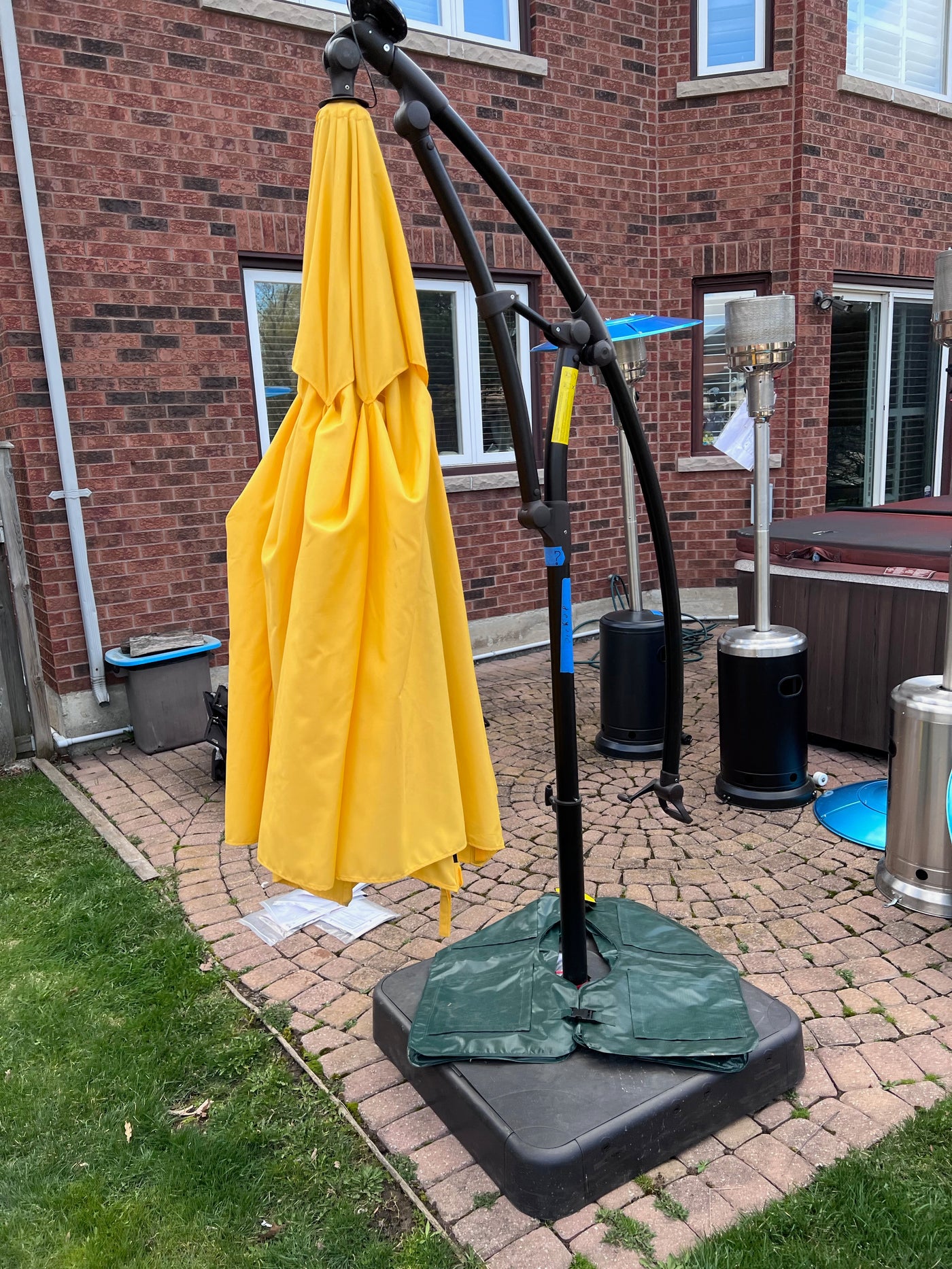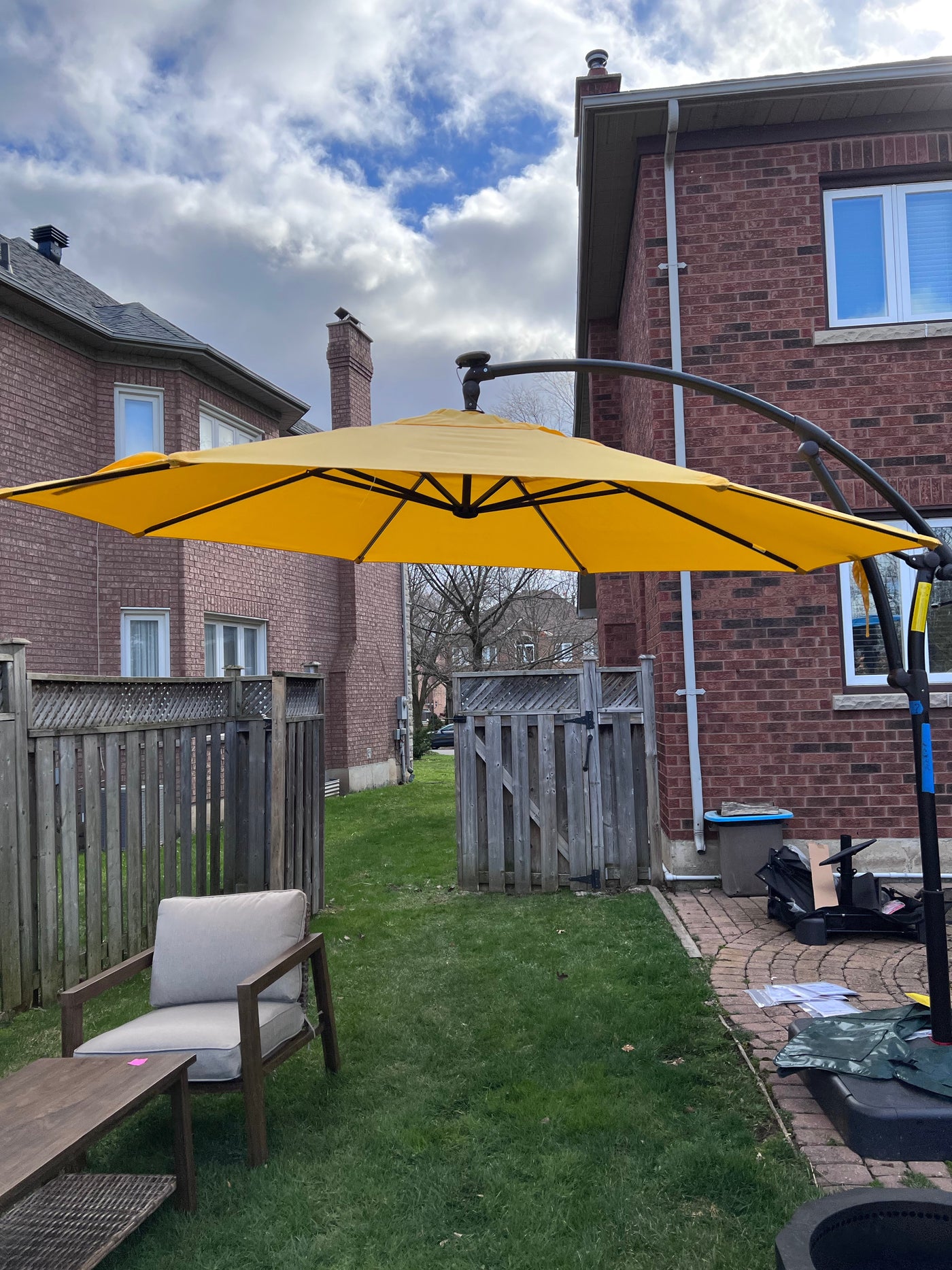 11 ft. Solar Light Bar Offset Patio Umbrella in Yellow.