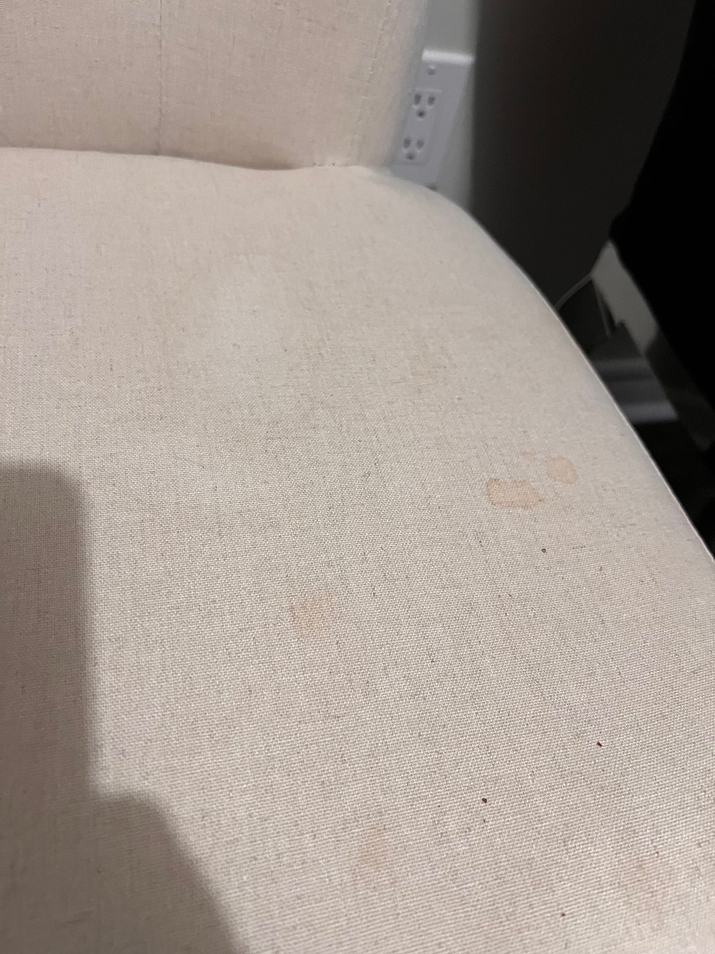 CONDITION: THERE ARE SOME STAINS ON 2/4 CHAIRS AS SHOWN IN THE PICTURES. SOLD AS IS.