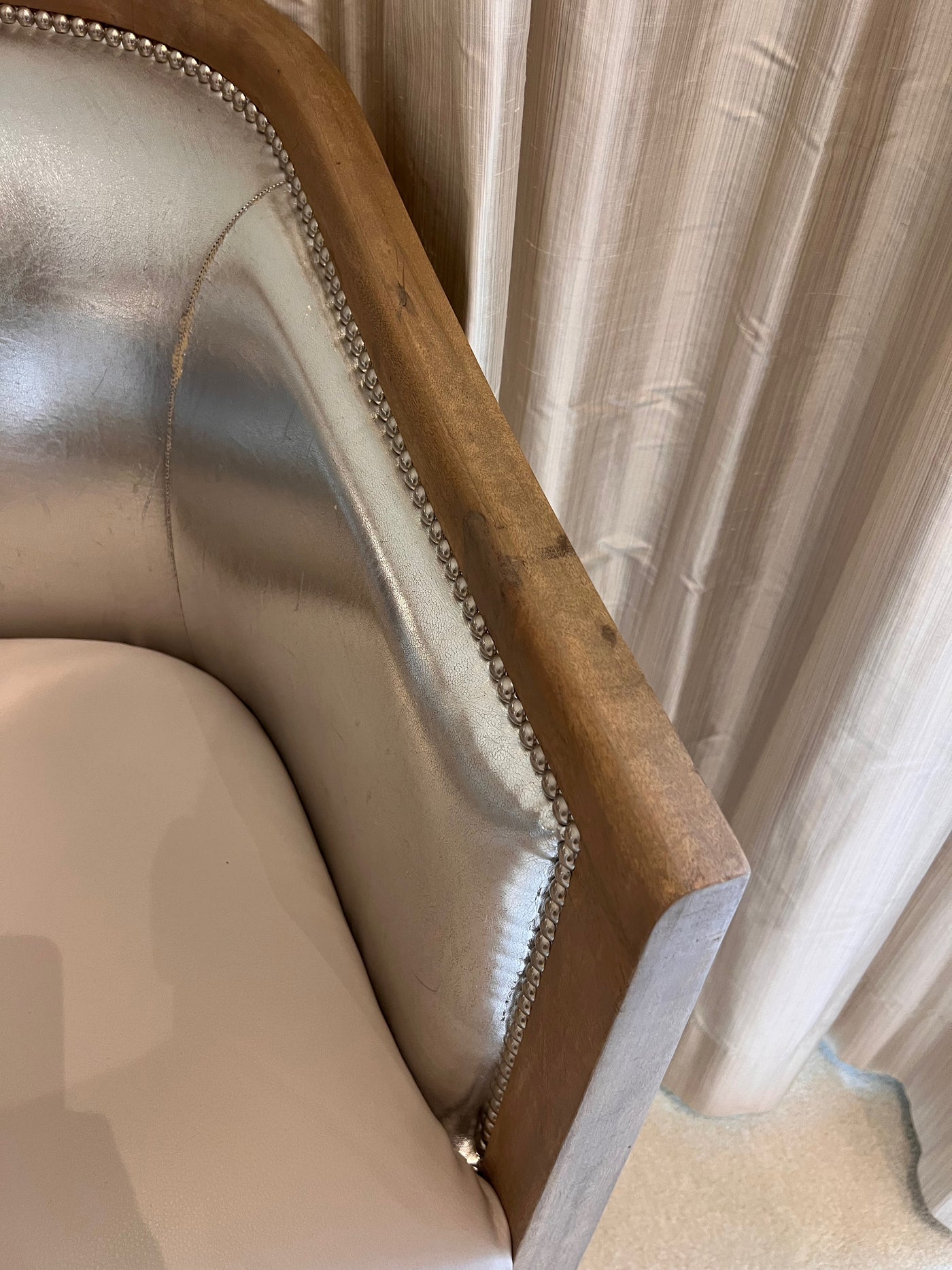 Condition: the back silver part of the chair has a few scratches that are not deep or major. PLEASE VIEW ALL PICTURES.