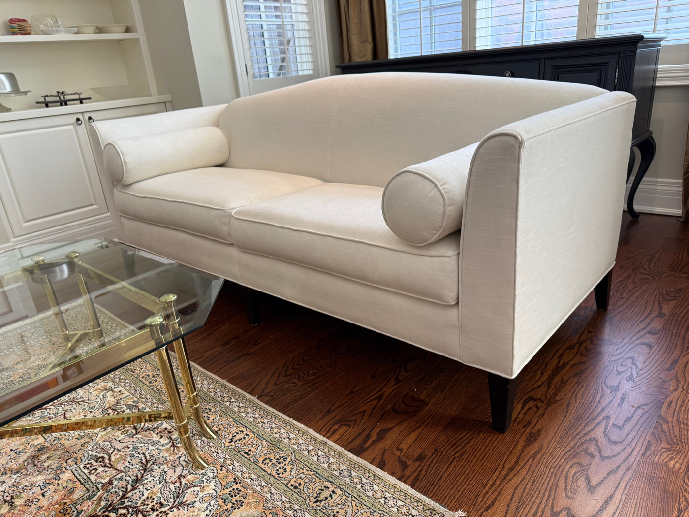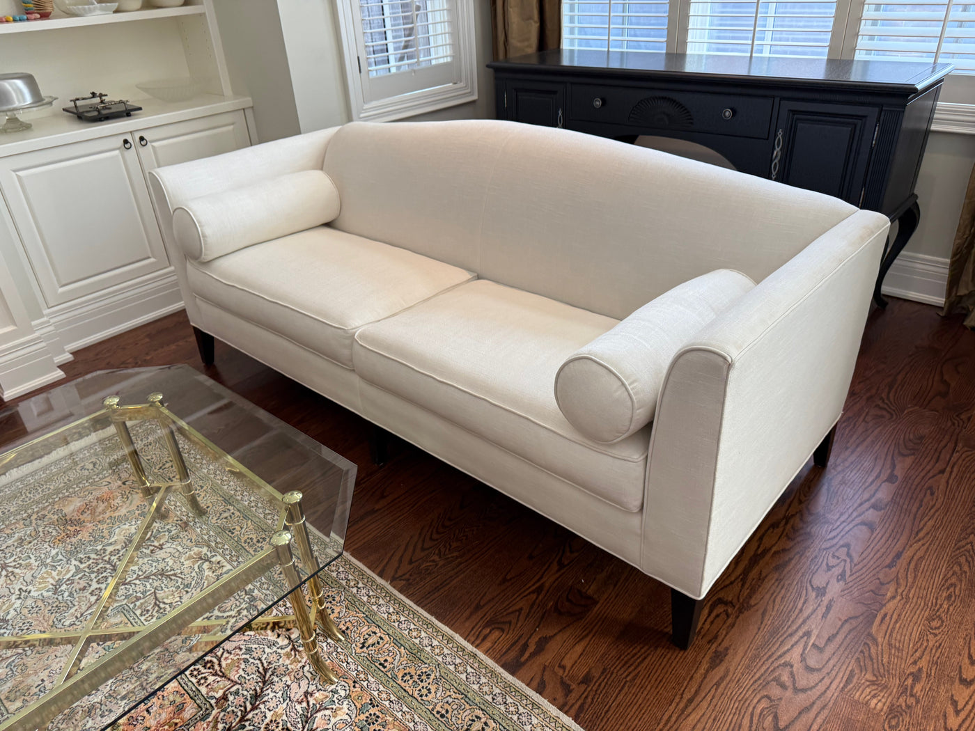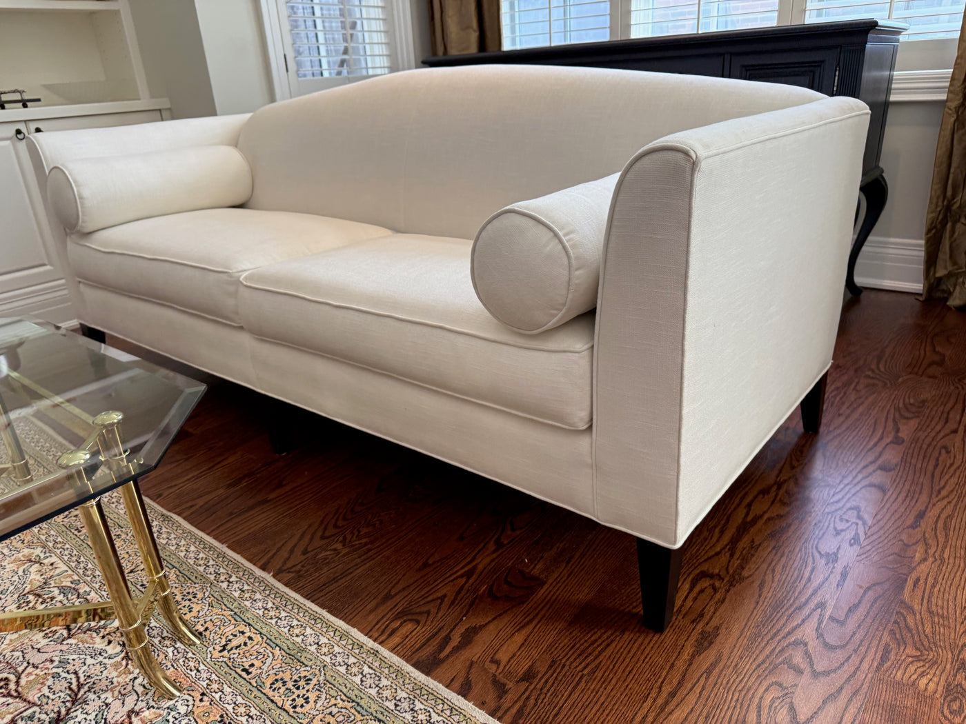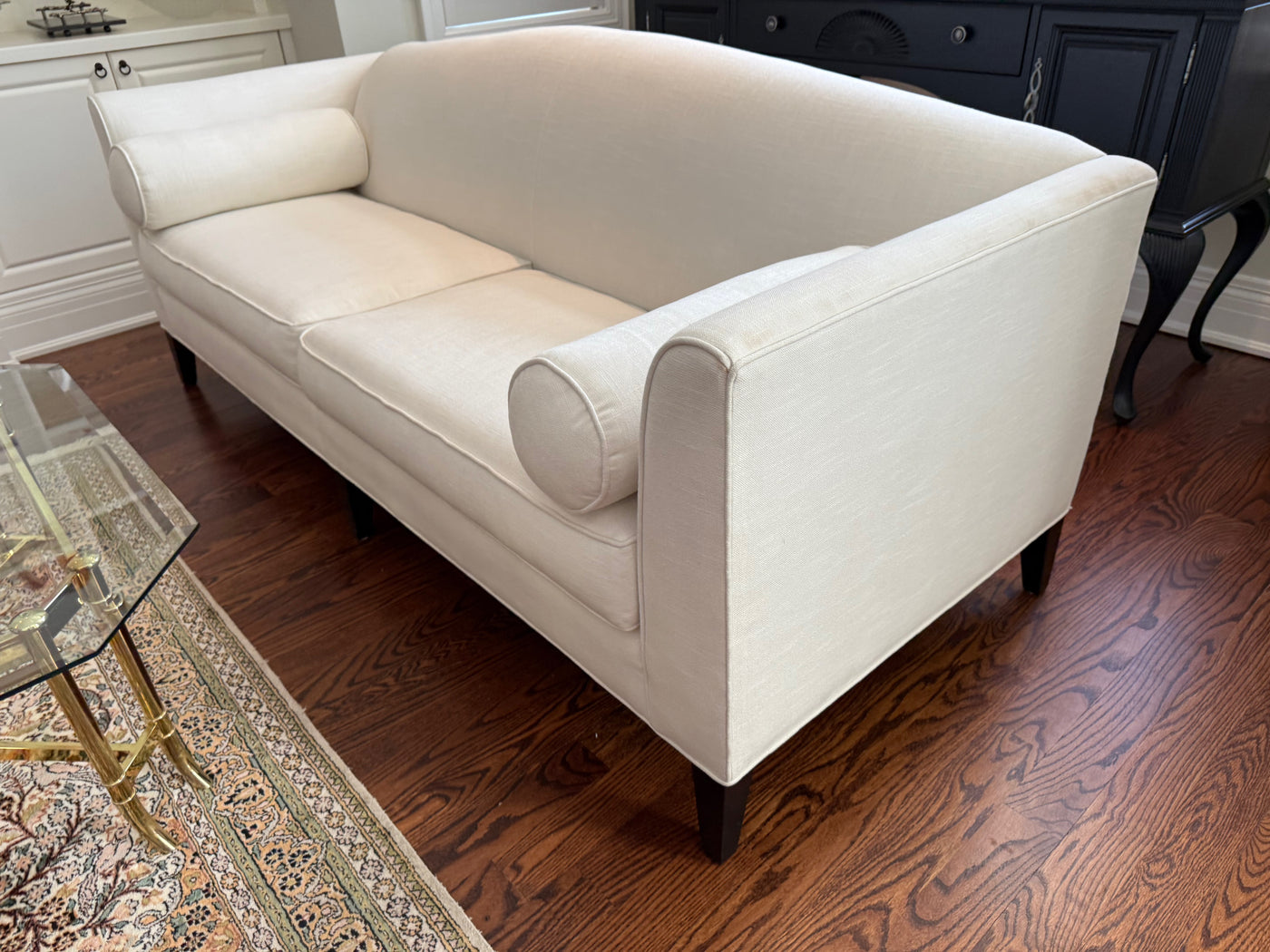 condition: there is a small stain on the back corner of the sofa as shown in the pictures. we believe it can be steam cleaned out.
