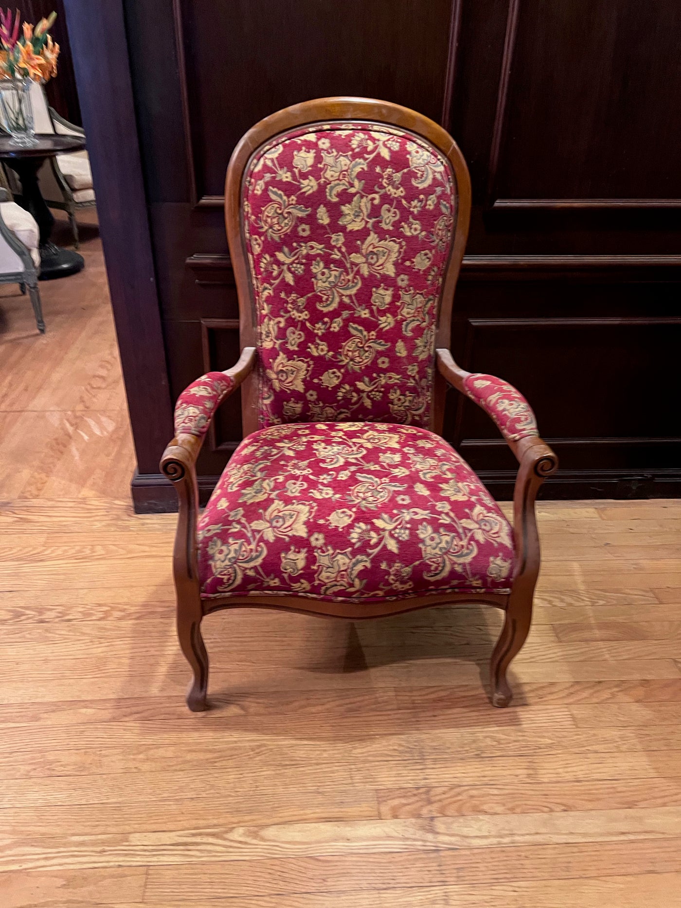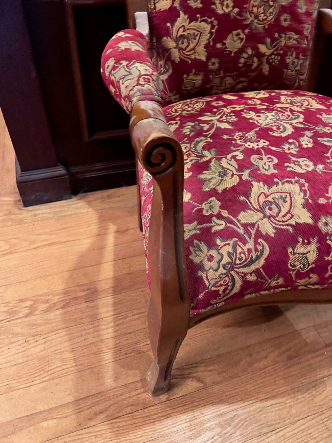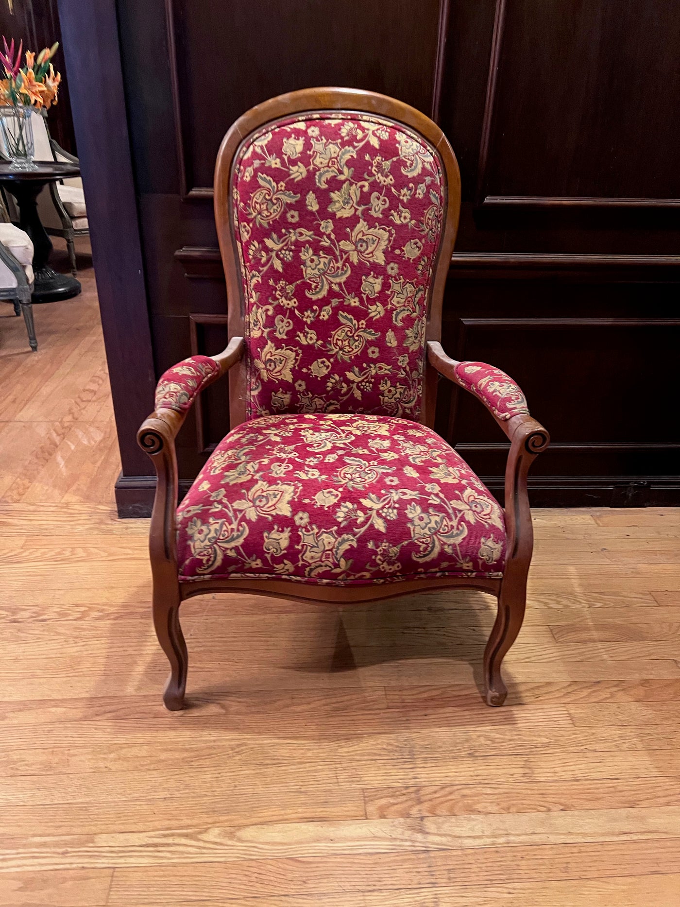 Antique Red Upholstered Armchair.