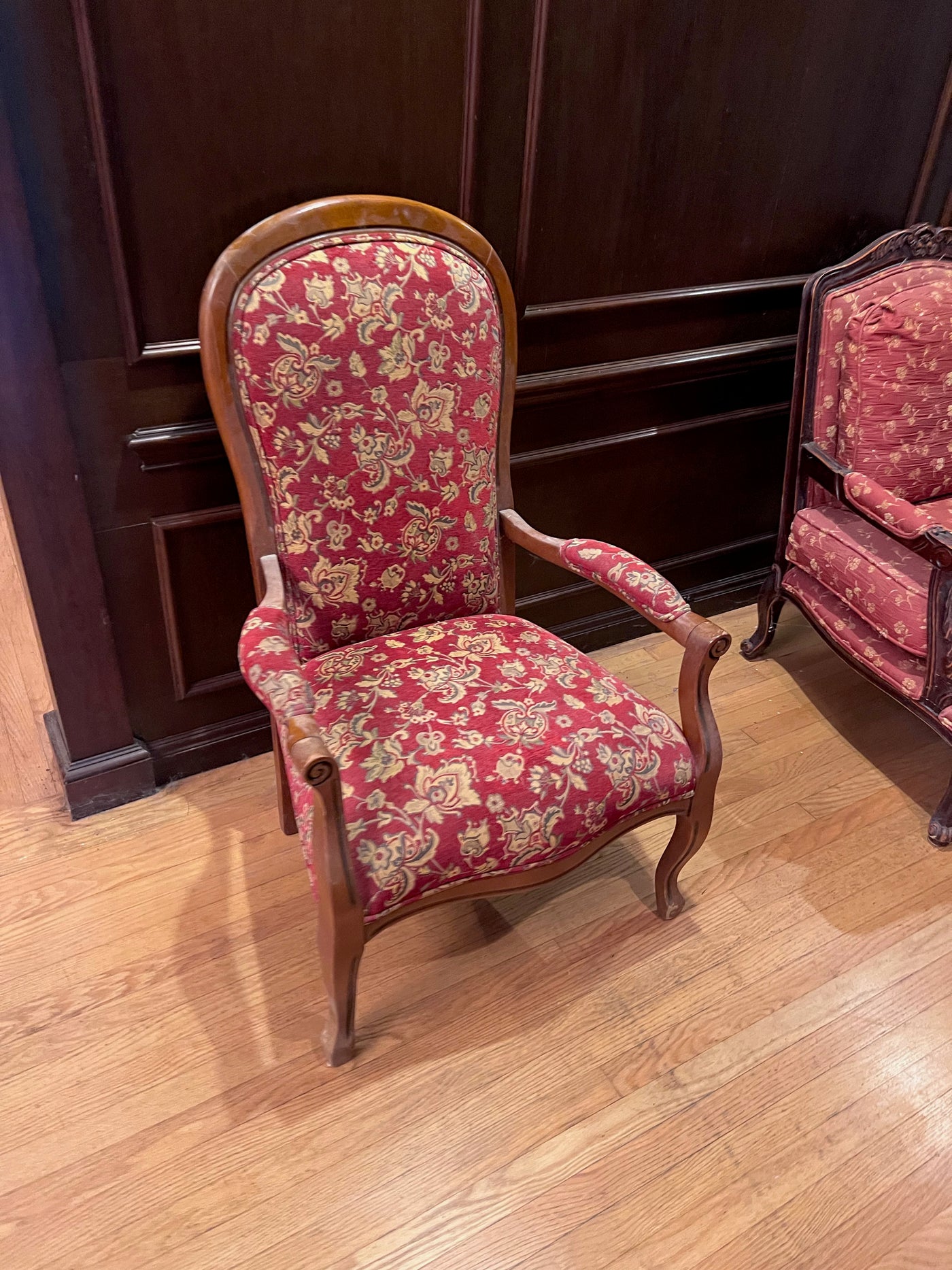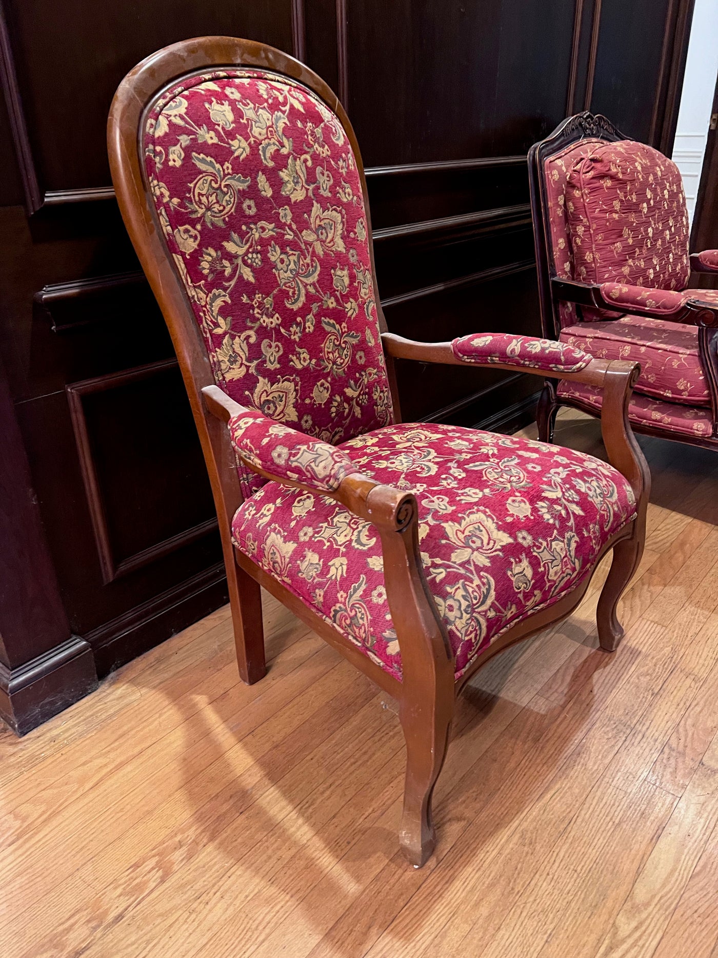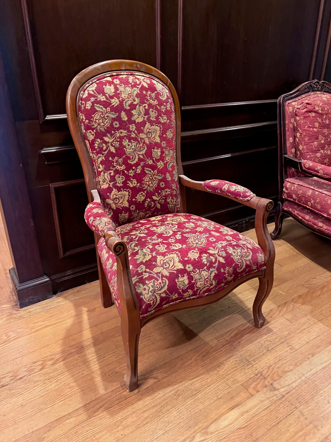 Antique Red Upholstered Armchair.