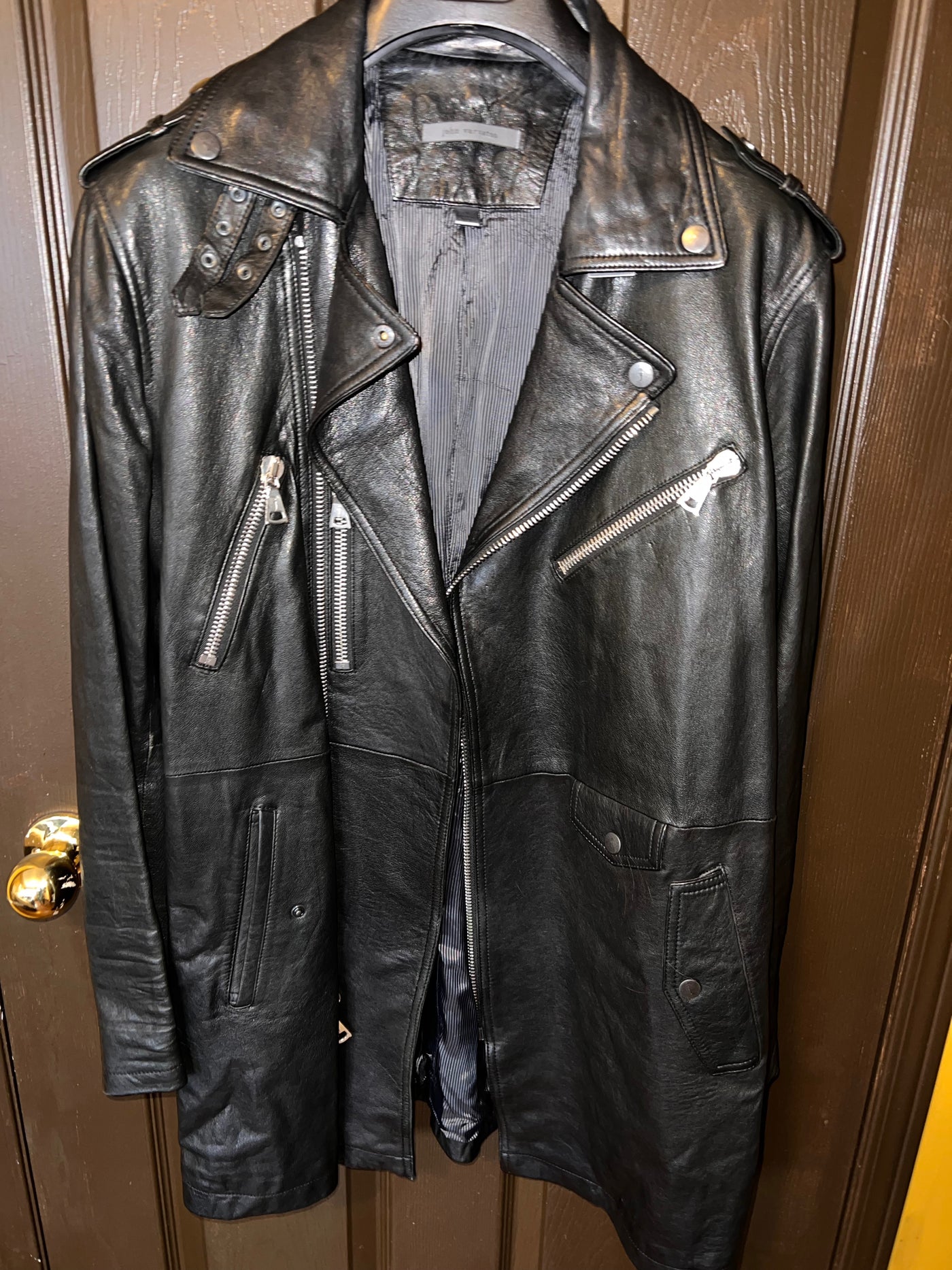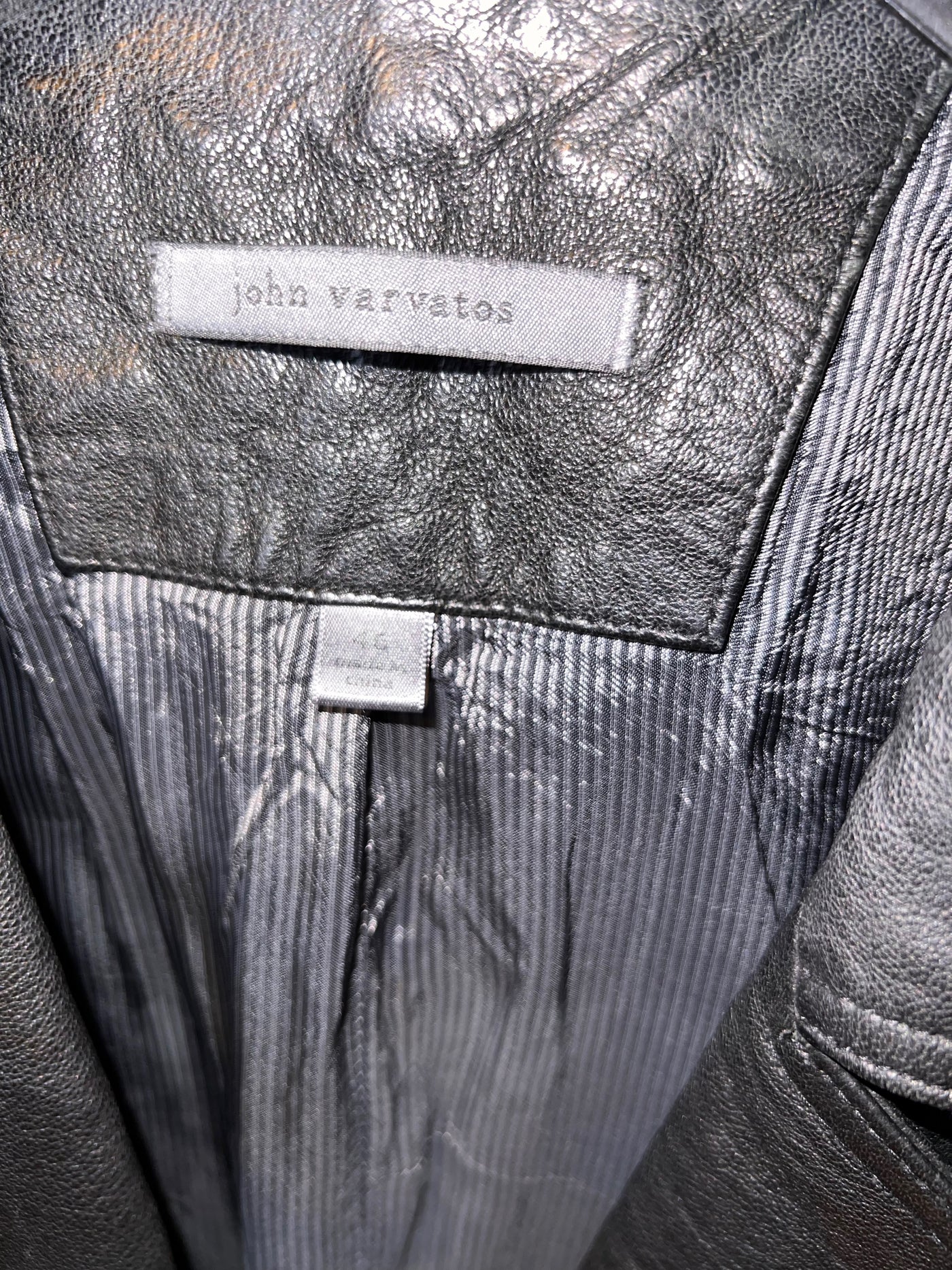 John Varvatos Black Leather Biker Jacket, Size 46.