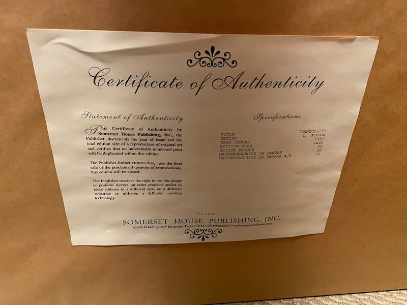 LE Signed & Numbered Print- "Tranquility" by L. Gordon. 715/1200
