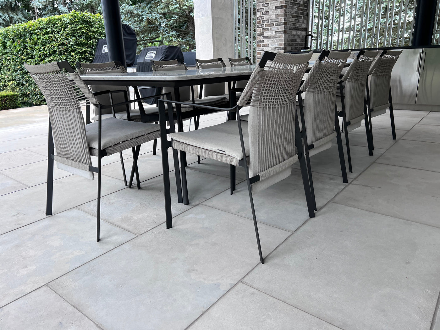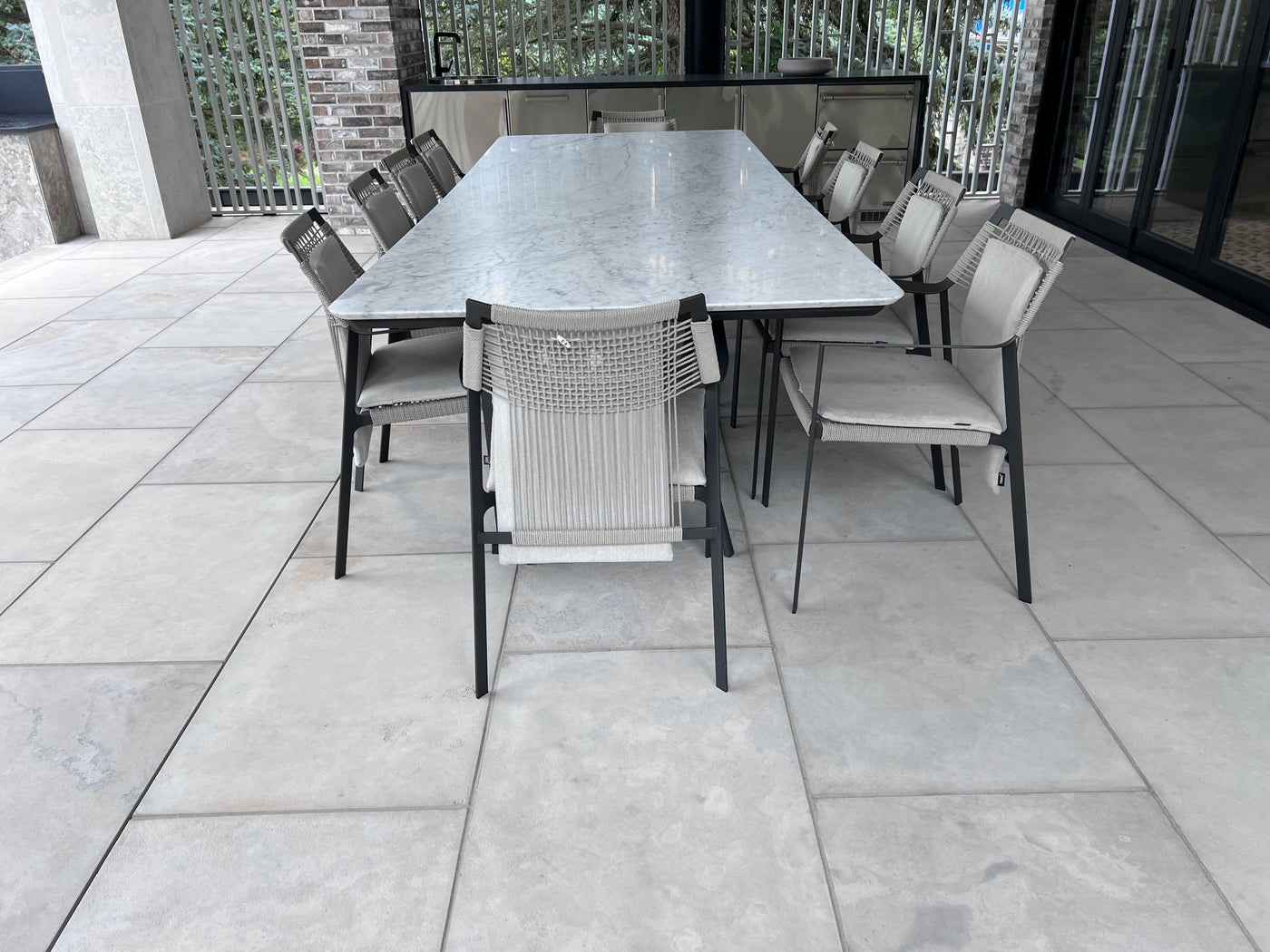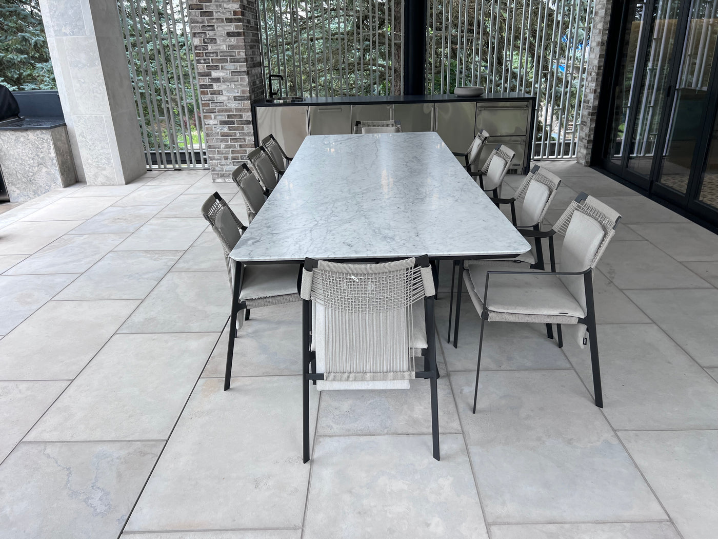 Tribù Branch Patio Table with Custom White Marble Top (*chairs NOT included).