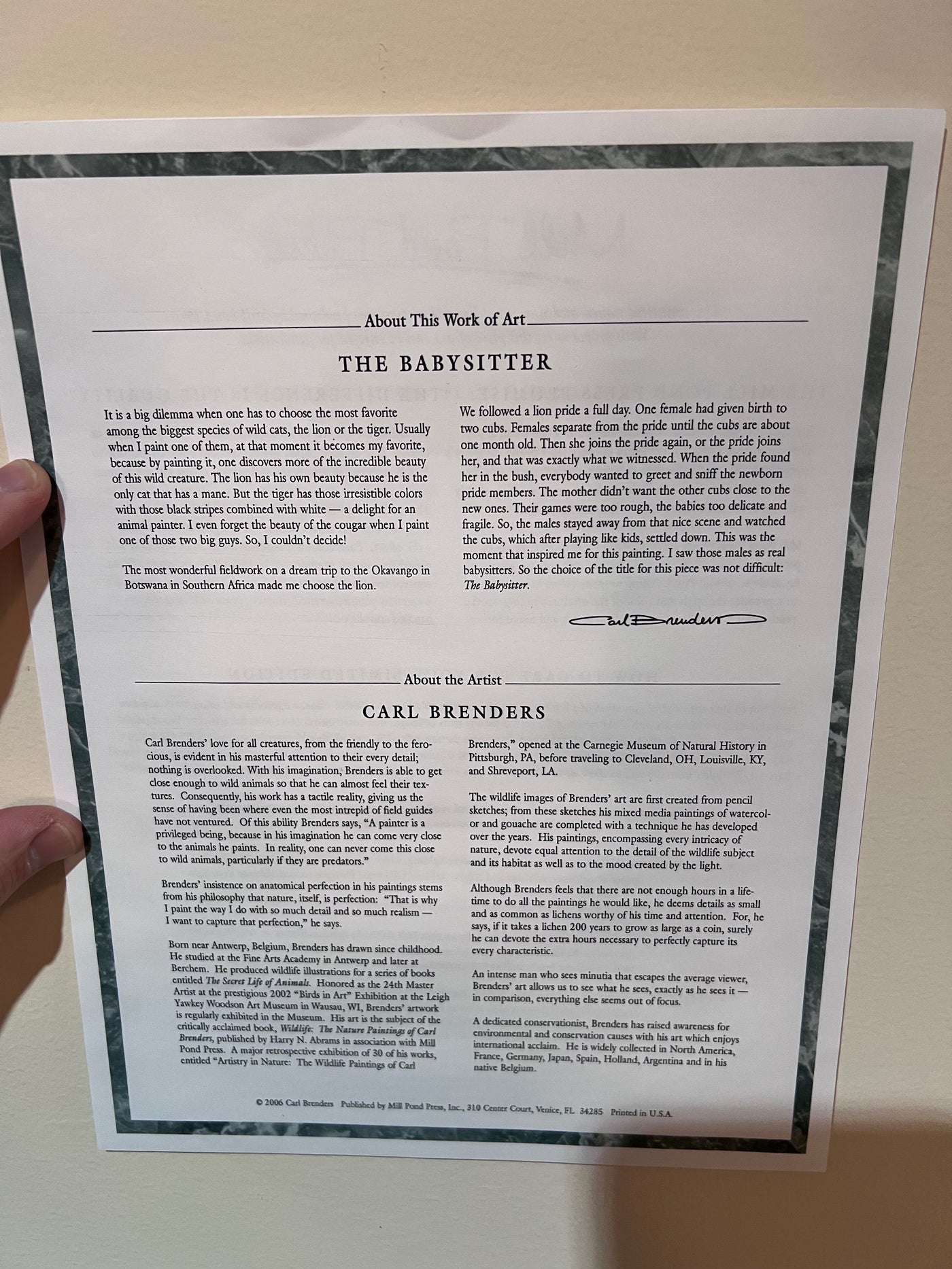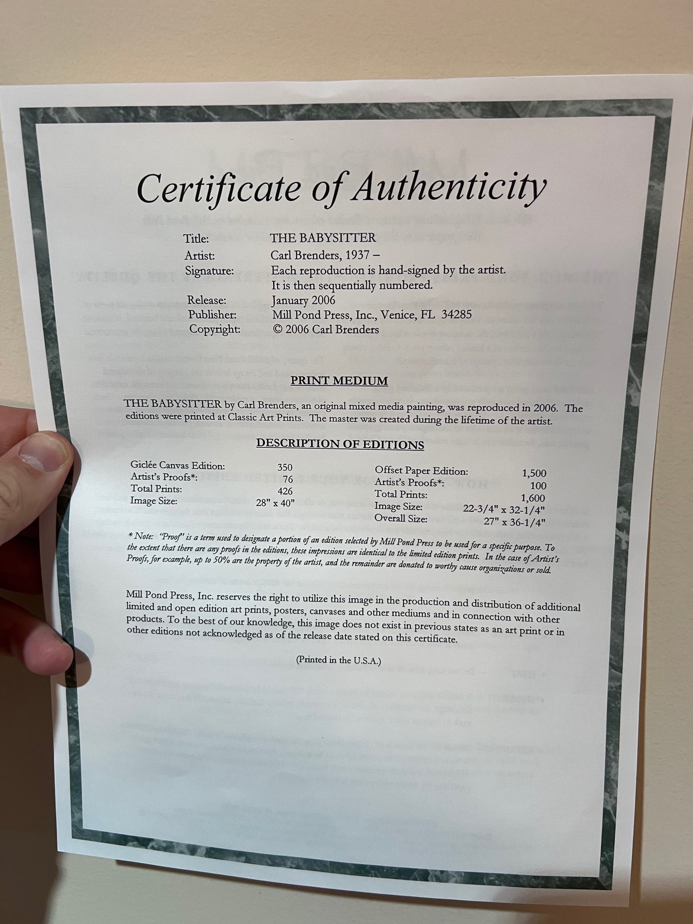 Limited Edition Signed Print "The Babysitter" by Carl Brenders.
