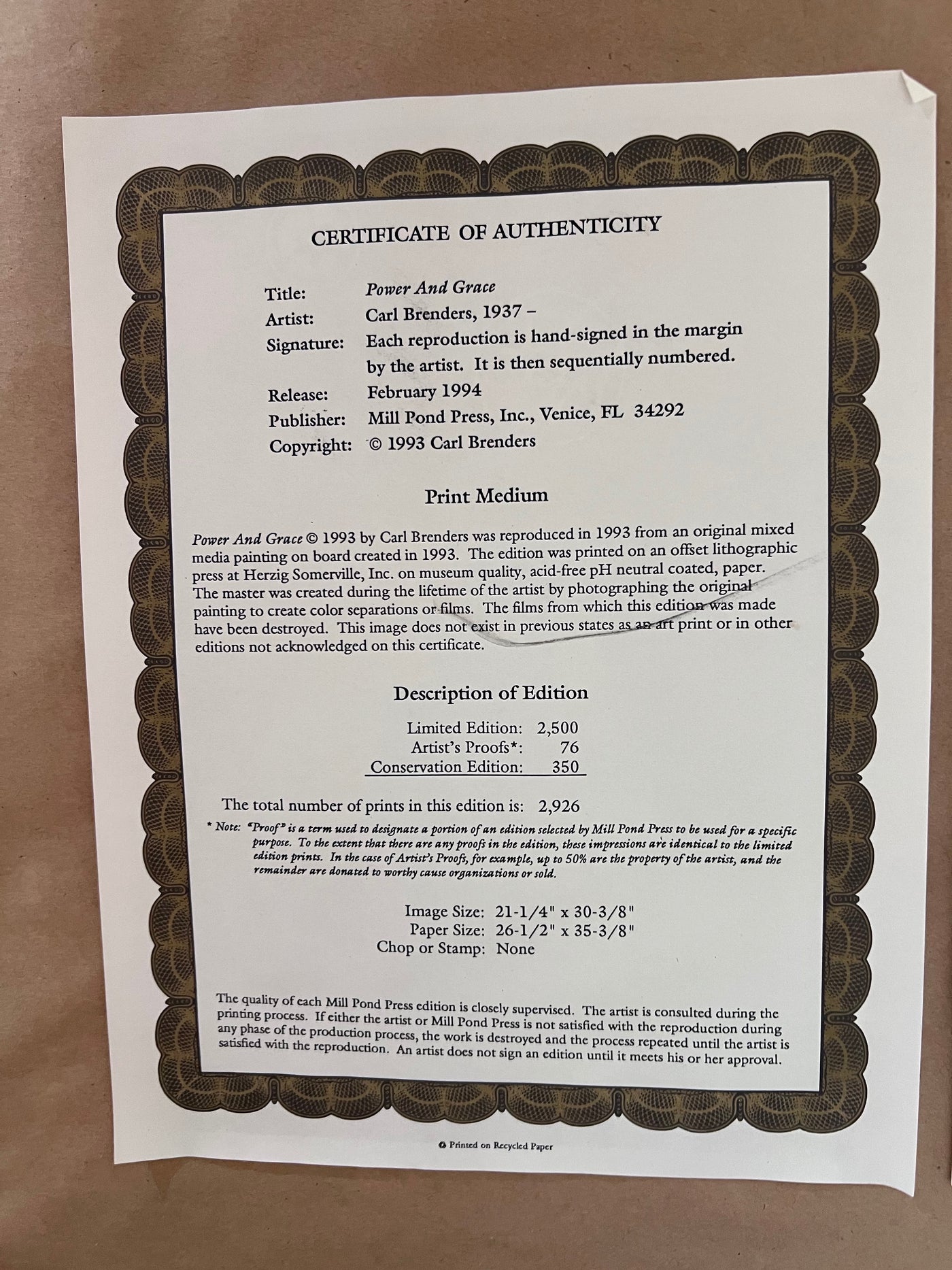Limited Edition Signed Print "Power and Grace" by Carl Benders.