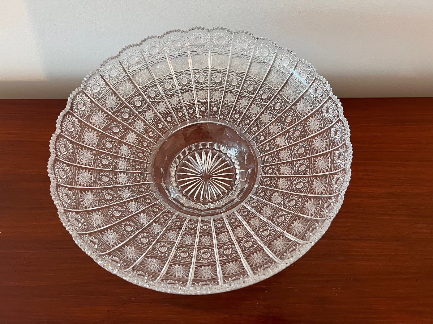 Large Bohemian Czech Crystal Bowl. In mint condition, no chips or cracks.