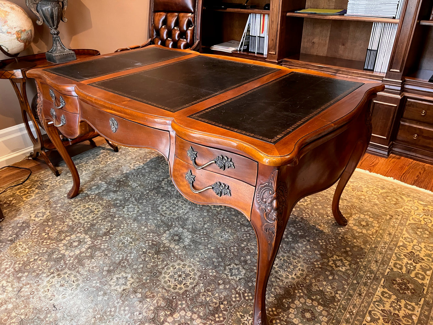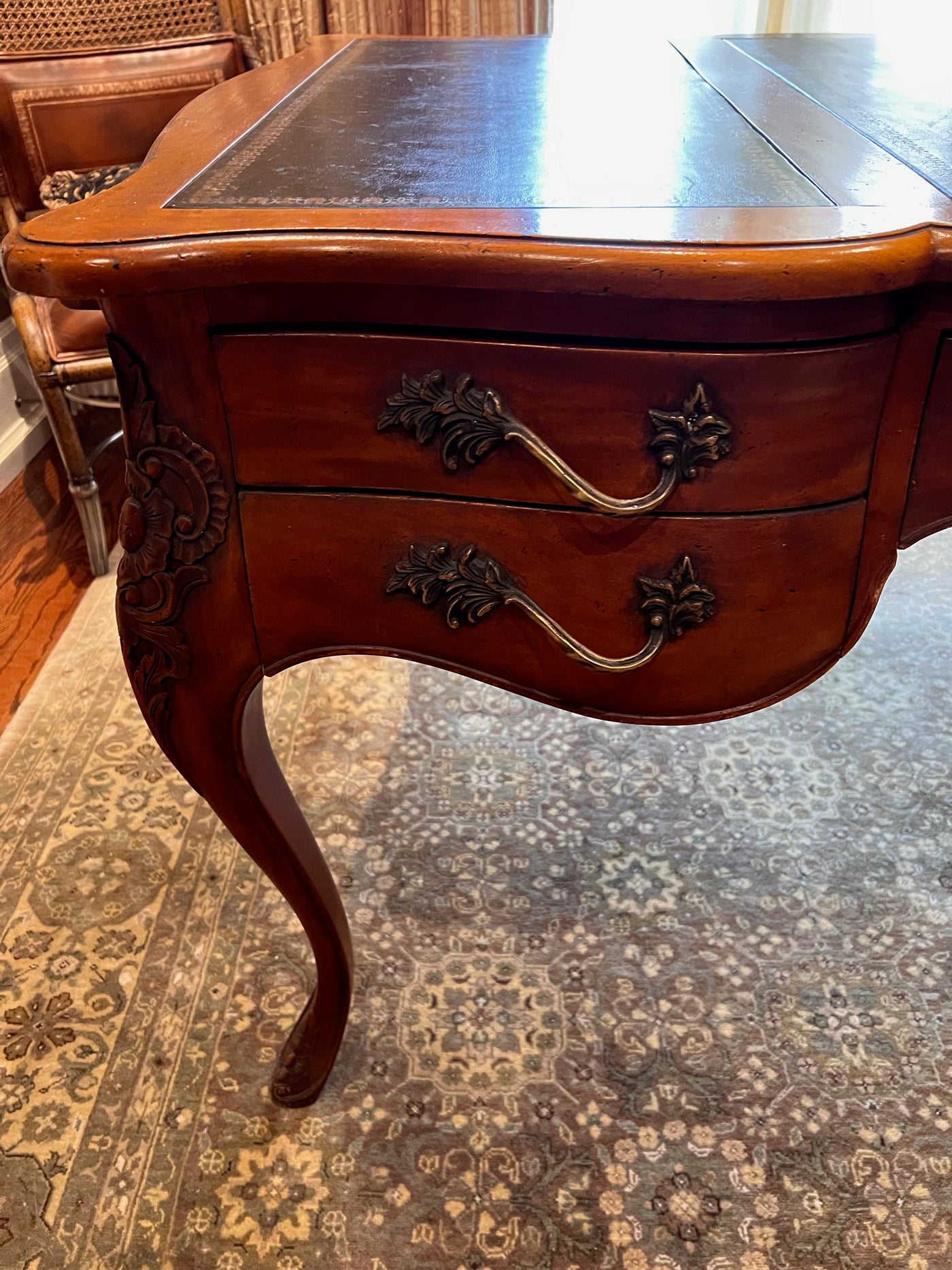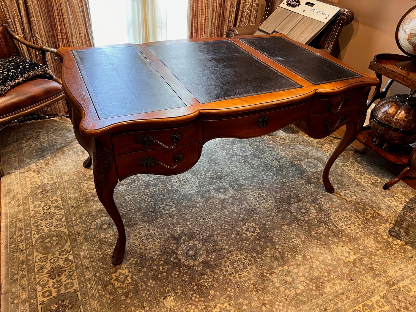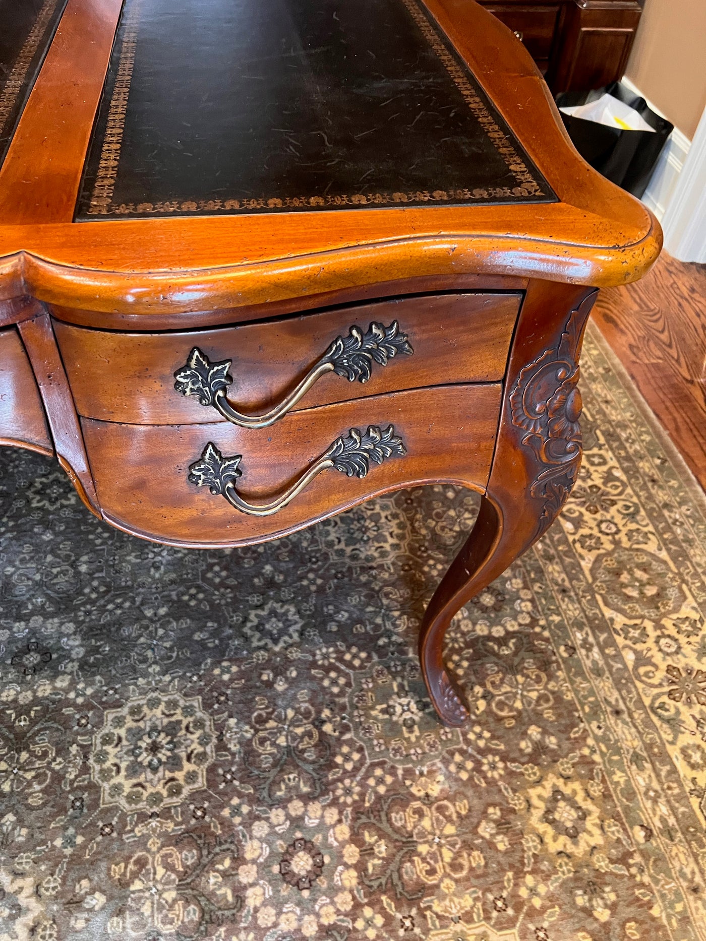 Louis XV Executive Leather Top Desk, Made in Indonesia. There are 5 drawers on BOTH sides of the desk. 56" x 34" 30"h